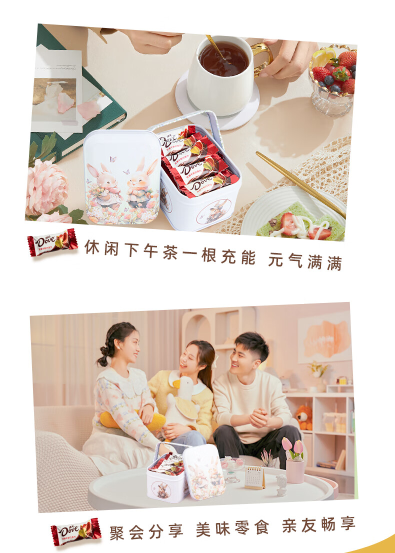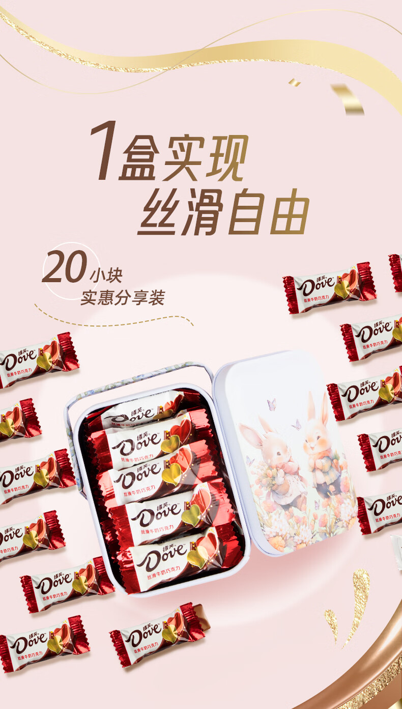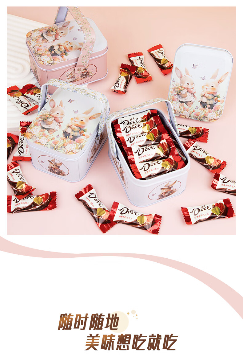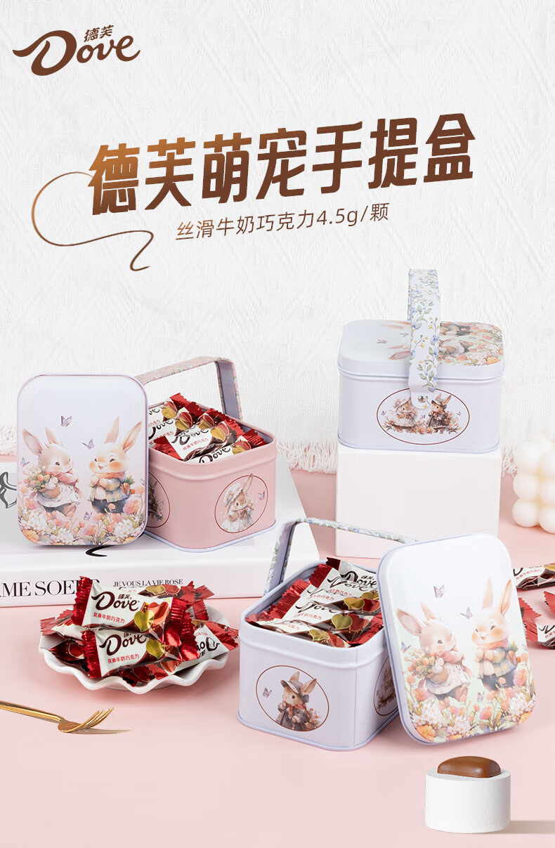 德芙巧克力 圣诞生日礼物卡通礼盒儿童孩子零食Q版白兔铁盒 90g 20颗