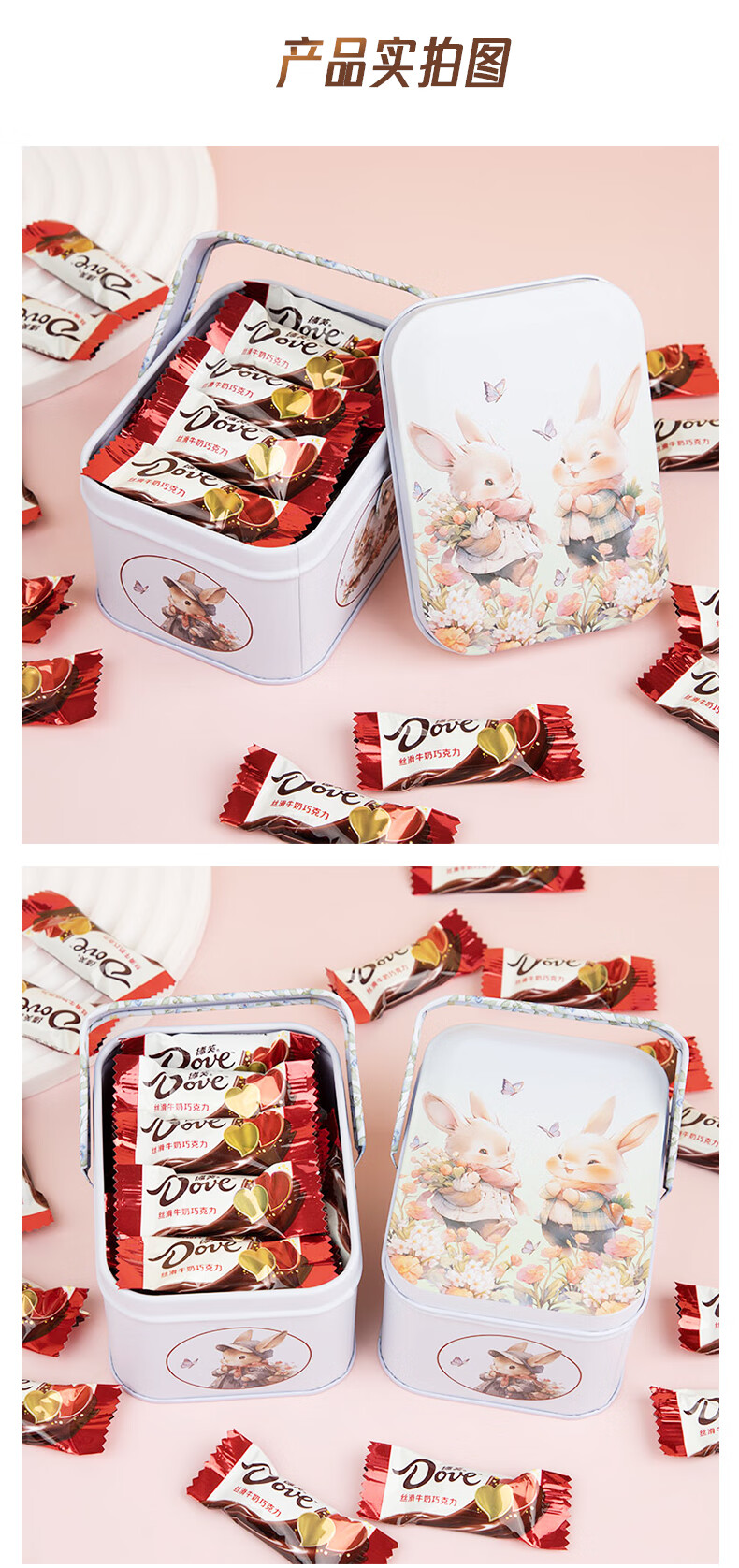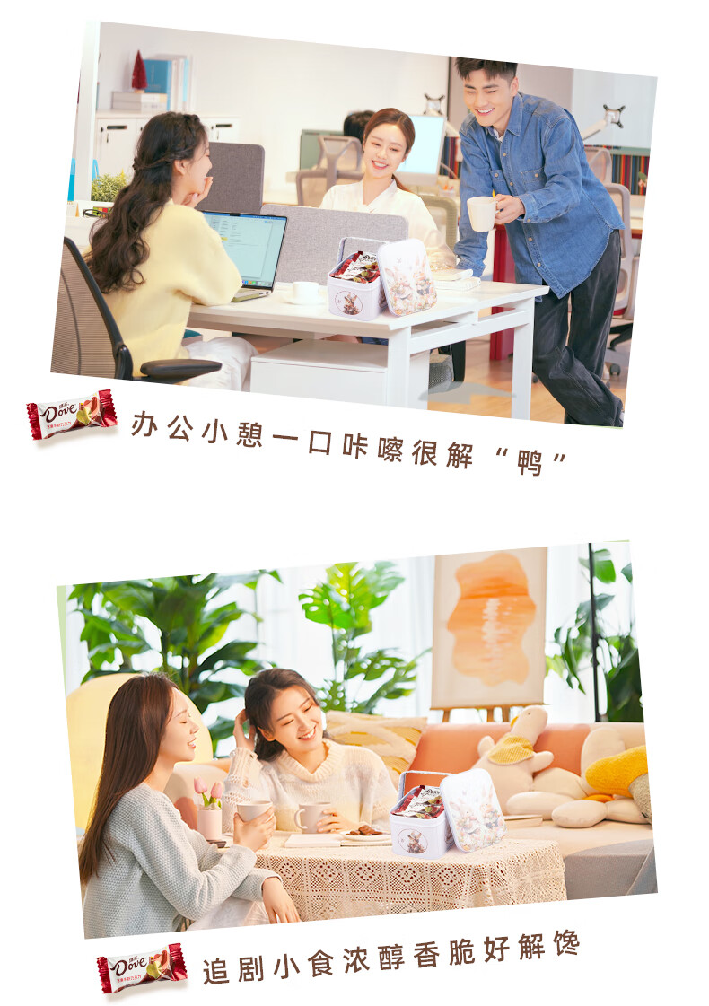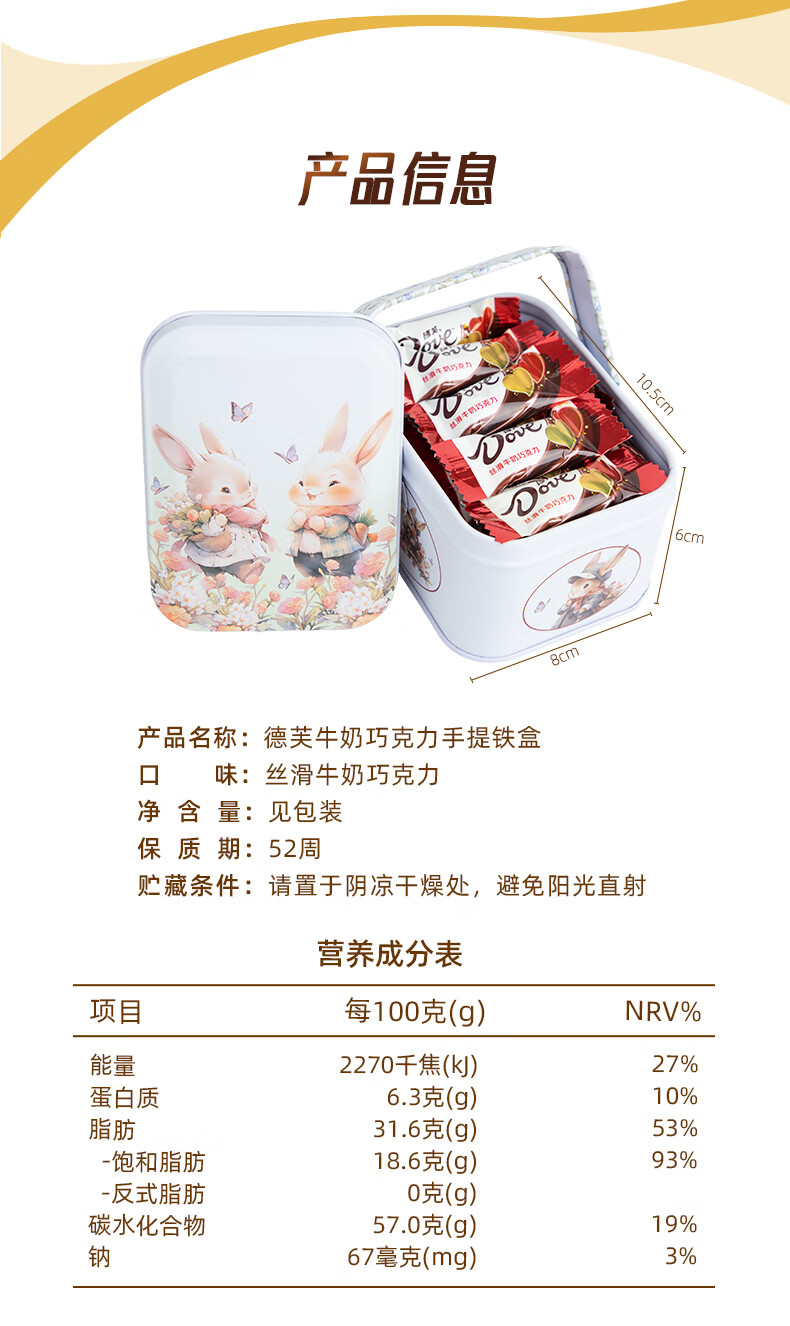 德芙巧克力 圣诞生日礼物卡通礼盒儿童孩子零食Q版白兔铁盒 90g 20颗