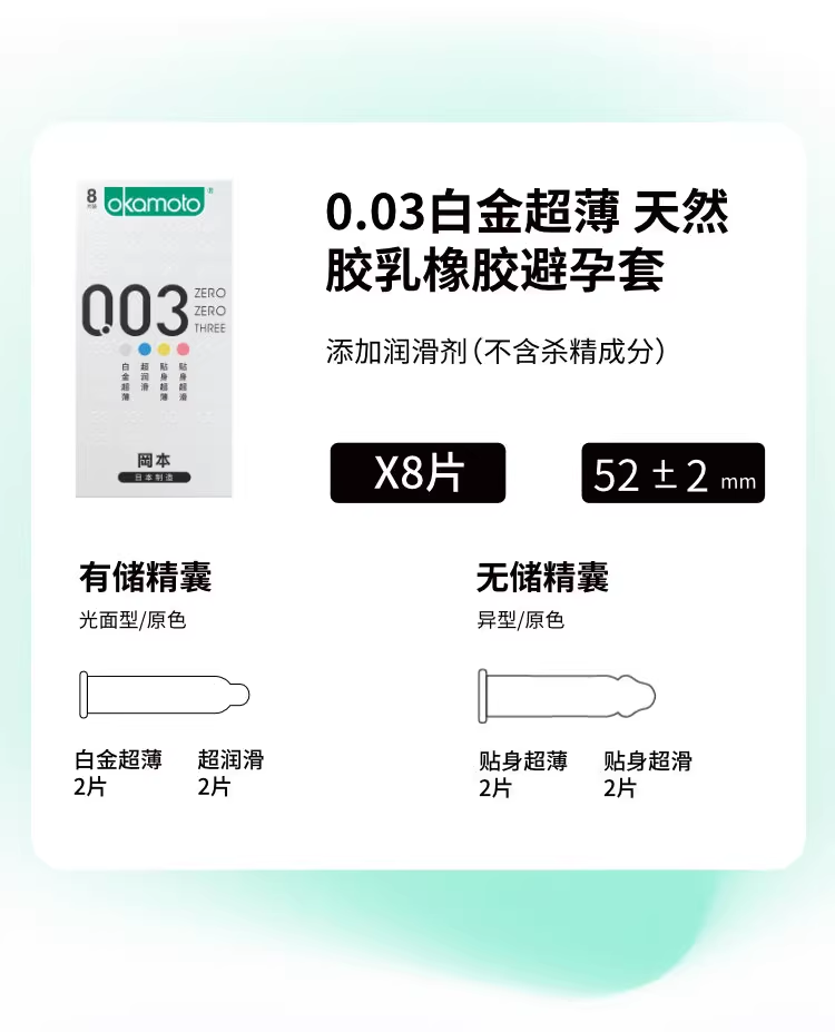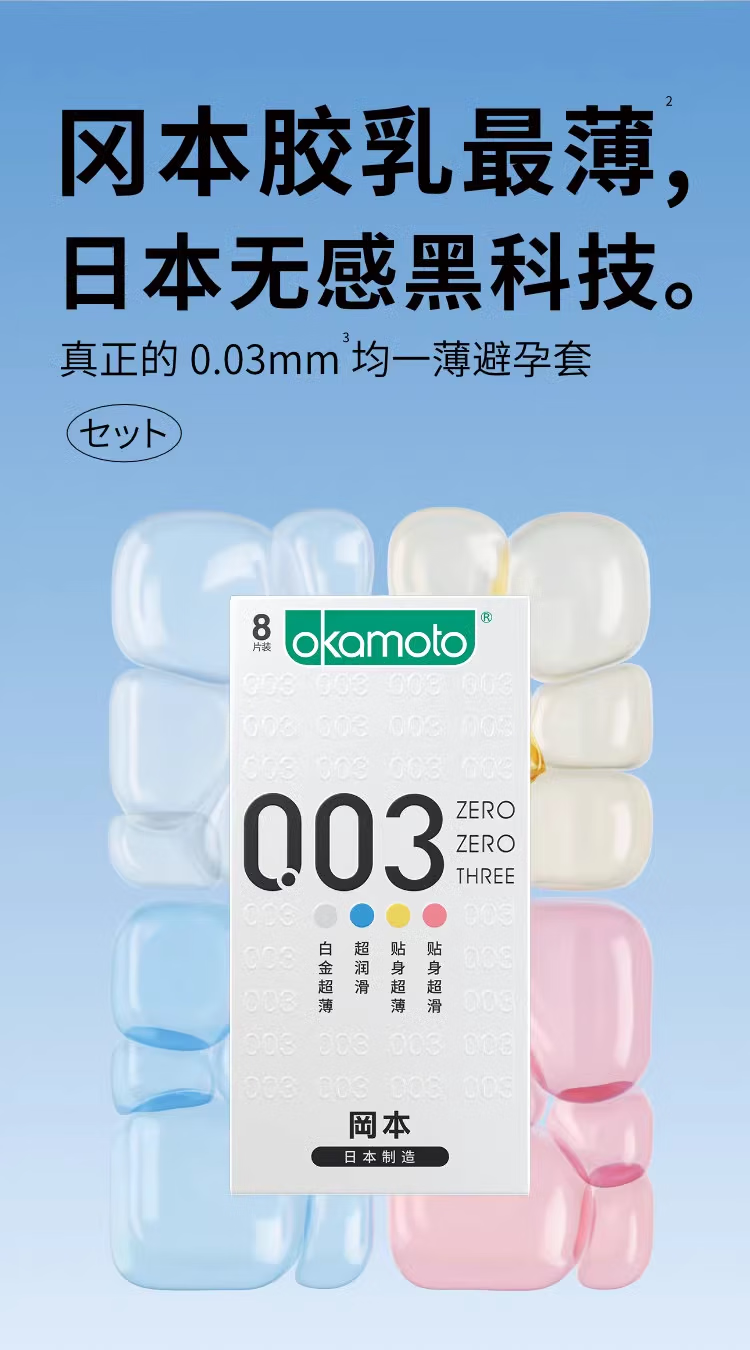 冈本(OKAMOTO)避孕套 003超薄系列男女用进口安全套套成人计生用品 【爆款四重体验】003超薄润滑8片