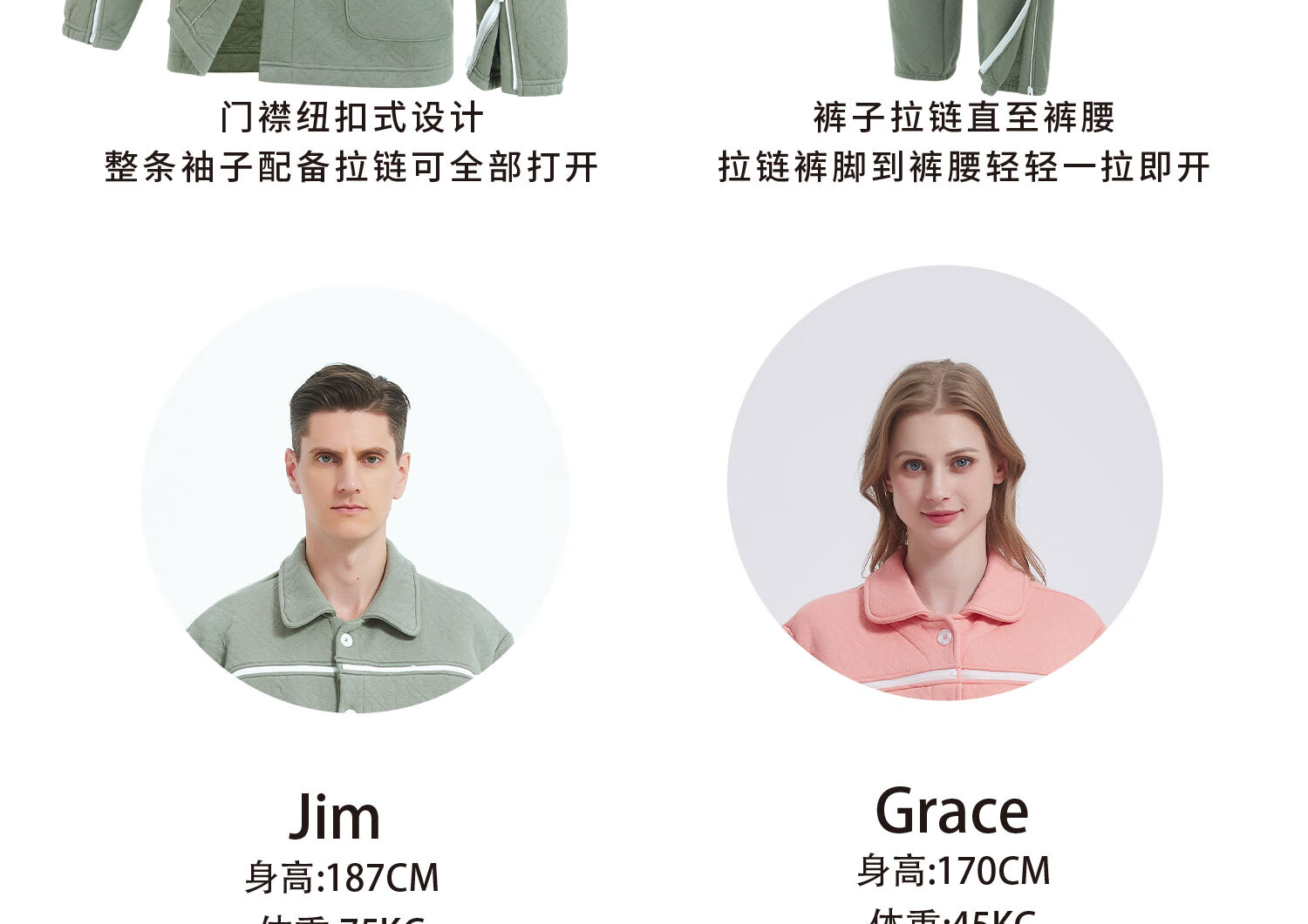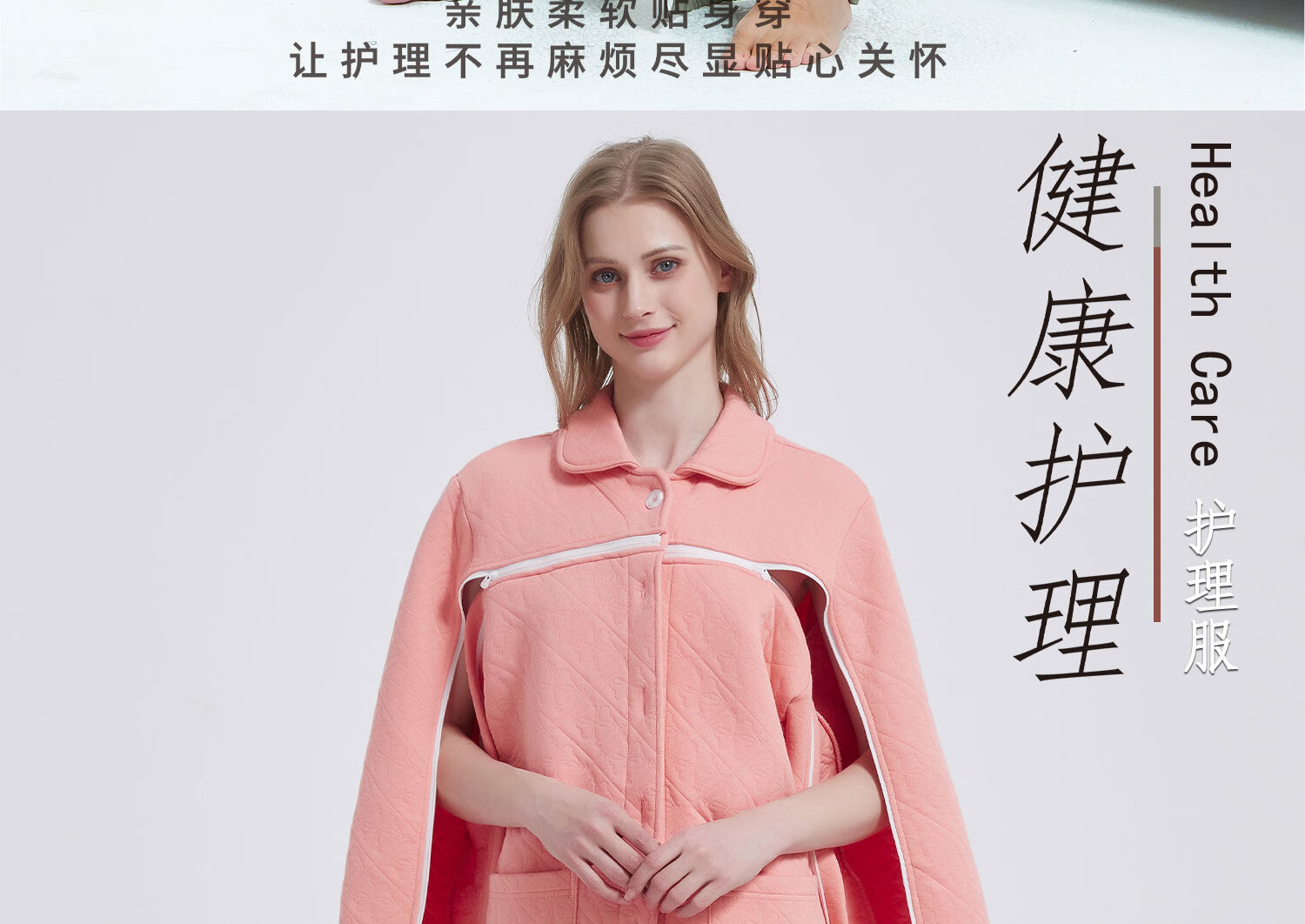 秋冬纯棉易穿脱护理服瘫痪卧床骨折病人睡衣术后衣服化疗康复夹棉 西柚粉【夹棉加厚】拉链-女/上衣 【微收口-胸开】全棉 2XL 180cm-190cm