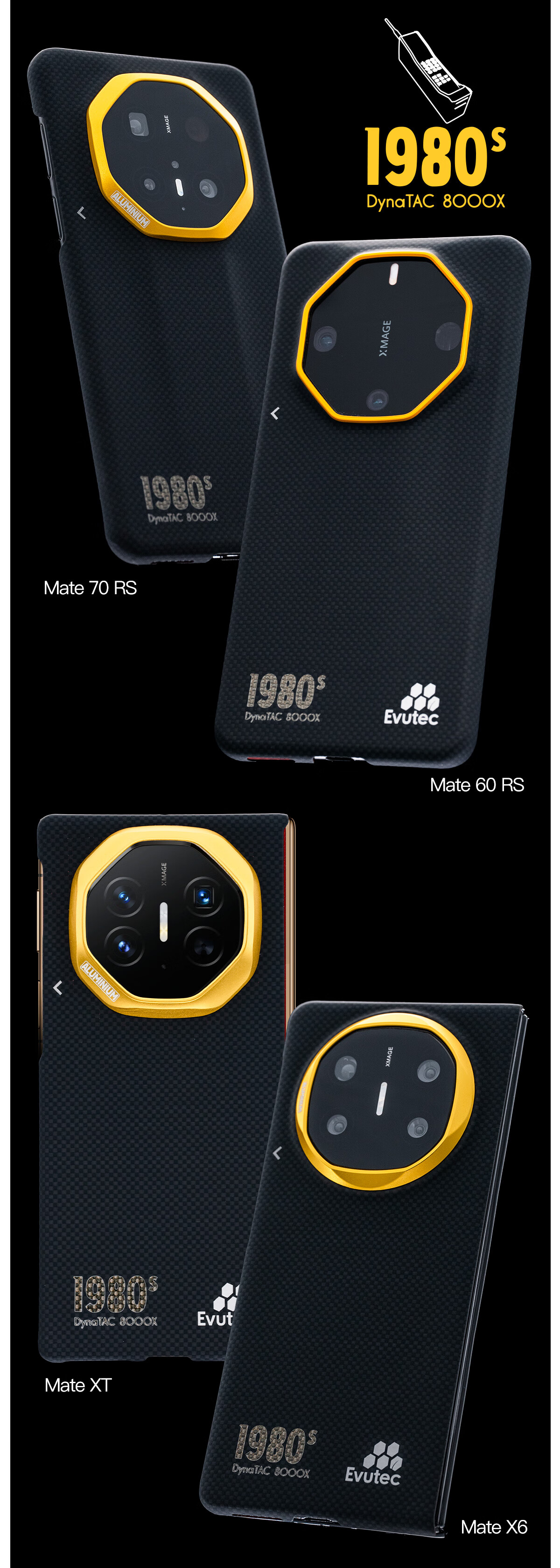 Evutec重生【金色的80/90年代】华为非凡大师Mate60/70RS/X6/XT/芳纶宇航服纤维编织磁吸高级手机壳 70RS(无磁吸)|【金色的90年代】