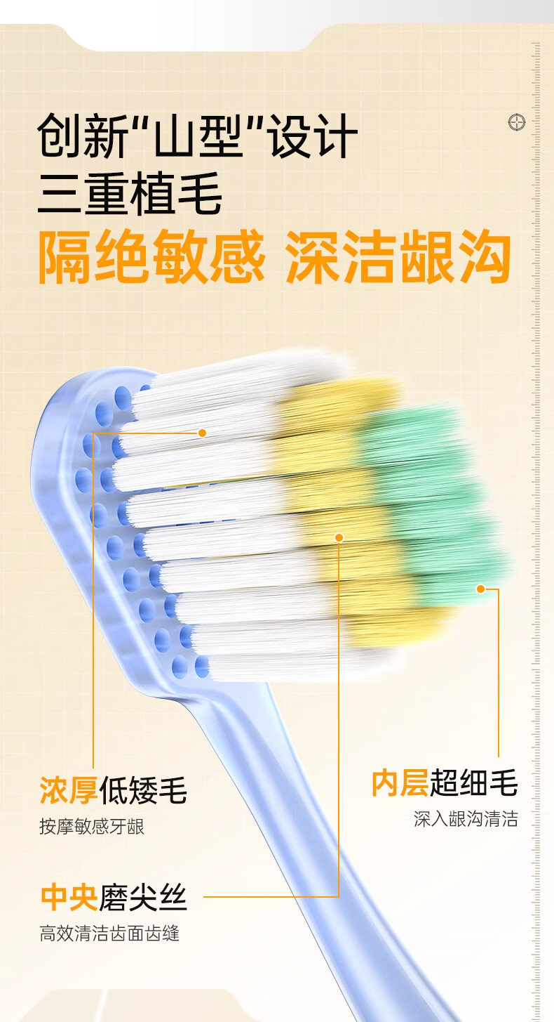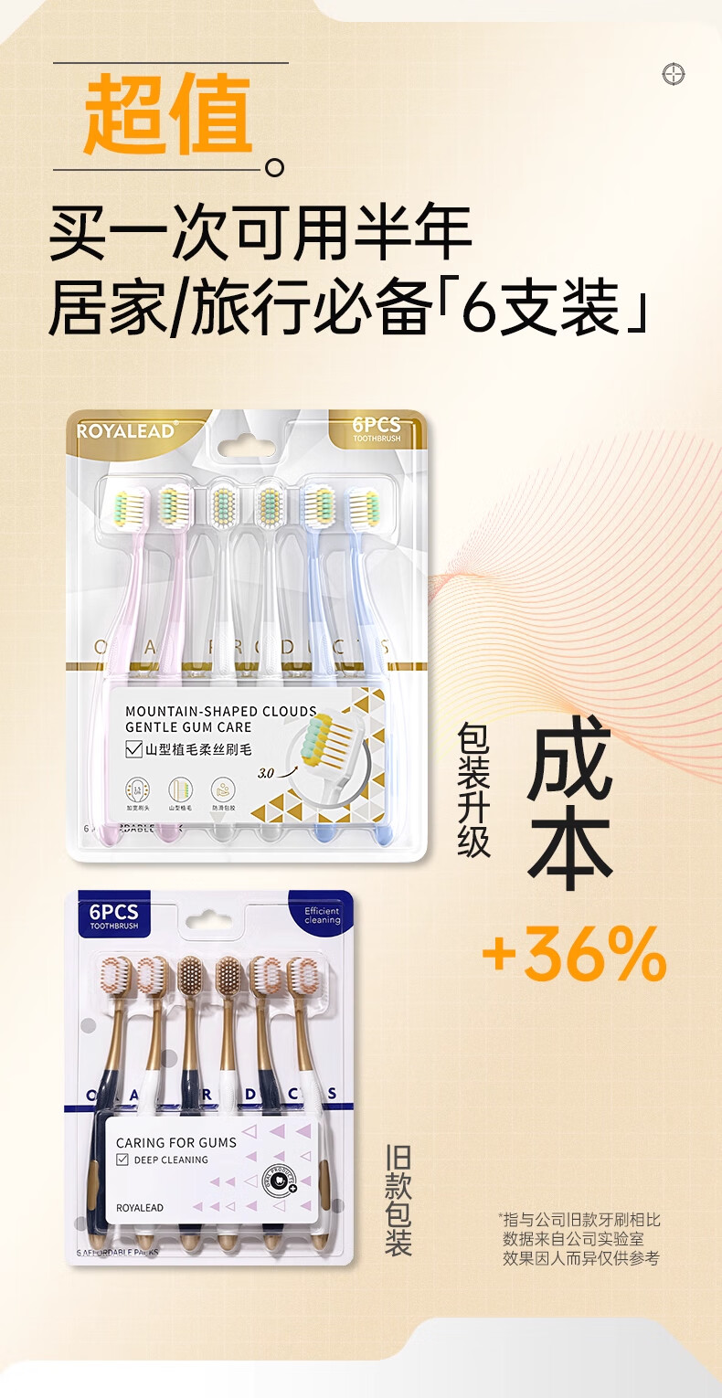 RAOYI山姆同款护龈软毛牙刷山形凸面刷毛成人宽头牙刷家庭装 【山姆同款】软毛护龈 6支