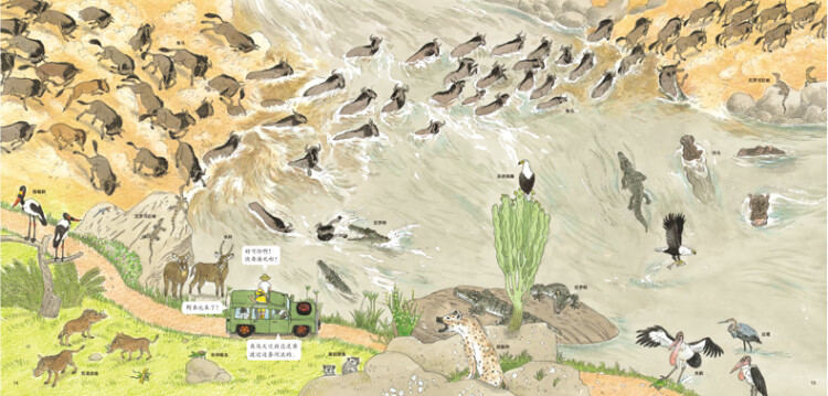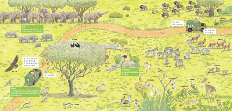 国际安徒生奖评审会荣誉插画家松冈达英探索自然绘本:一家人看世界 去非洲看动物(探索自然,感悟生命,让孩子更懂爱)丁虹绘本馆出品[3-6岁]