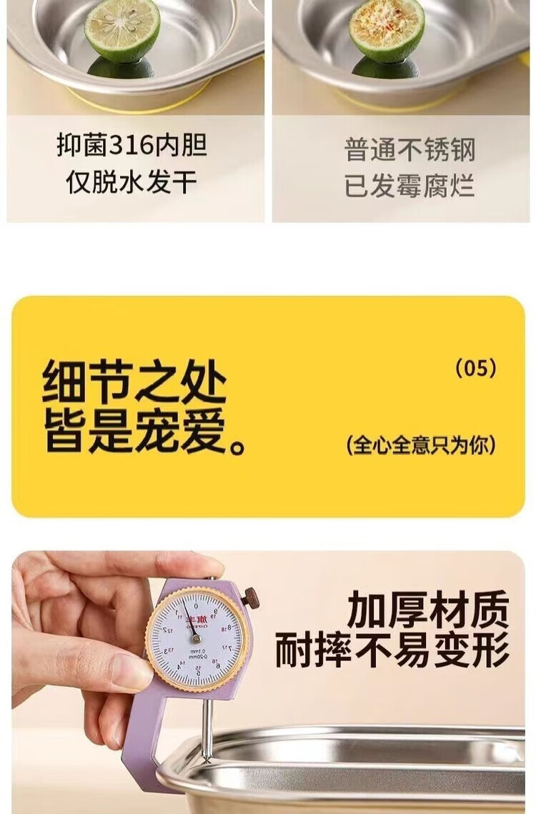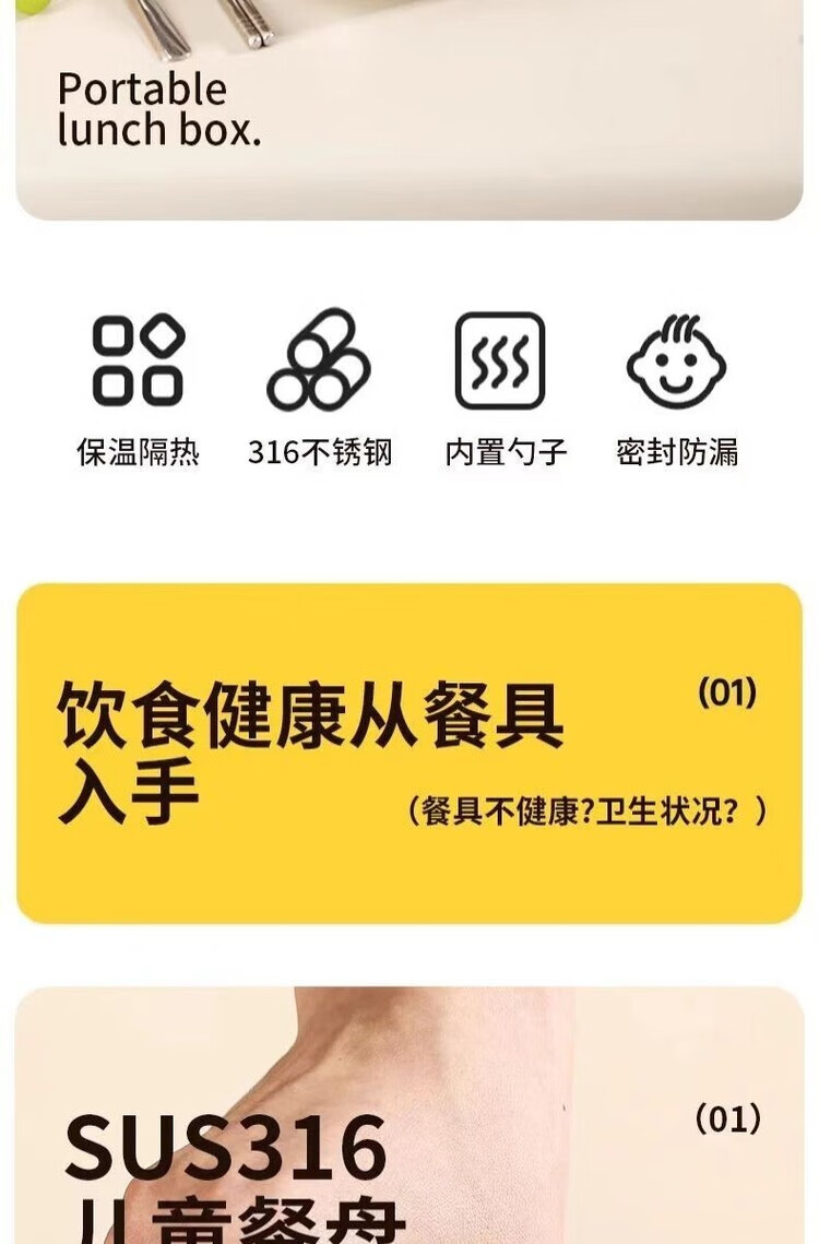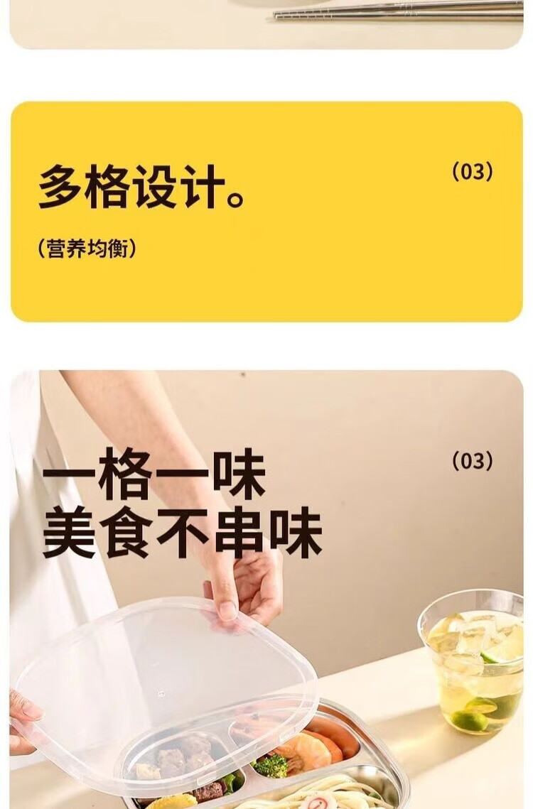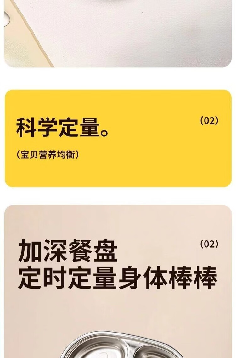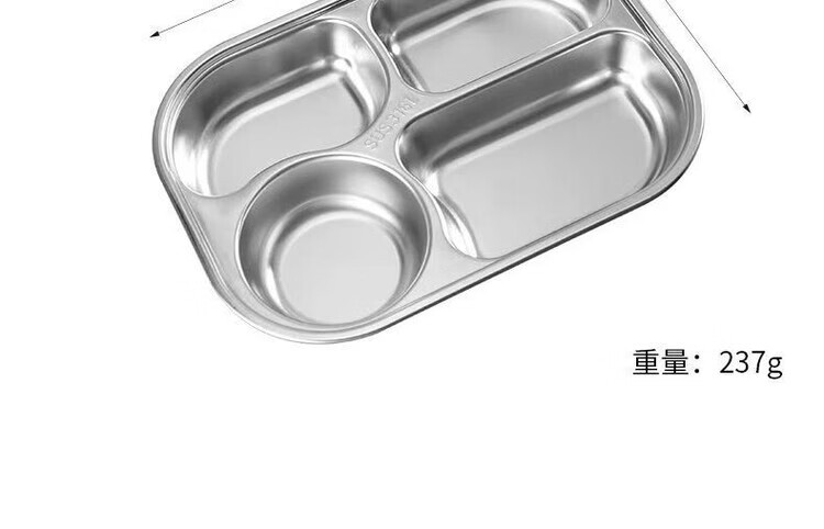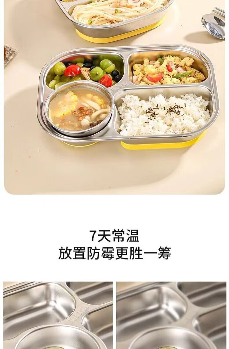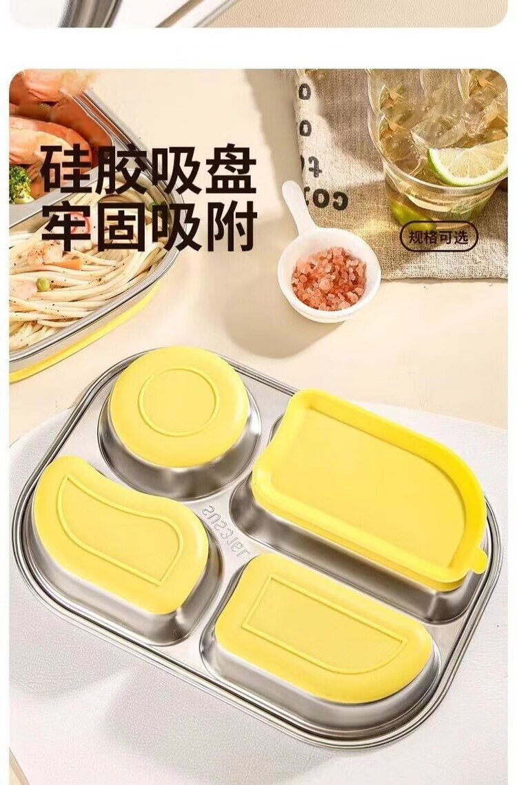 简漾316不锈钢儿童宝宝餐盘分格吸盘式婴儿专用辅食盘可吸附自主进食 三格带吸盘 1000毫升