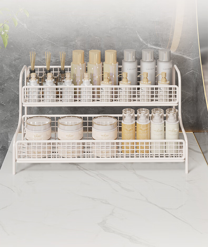 木格格洗漱台置物架浴室架收纳置物架卫生间厕所台面洗手间沐浴露储物架 素雅白