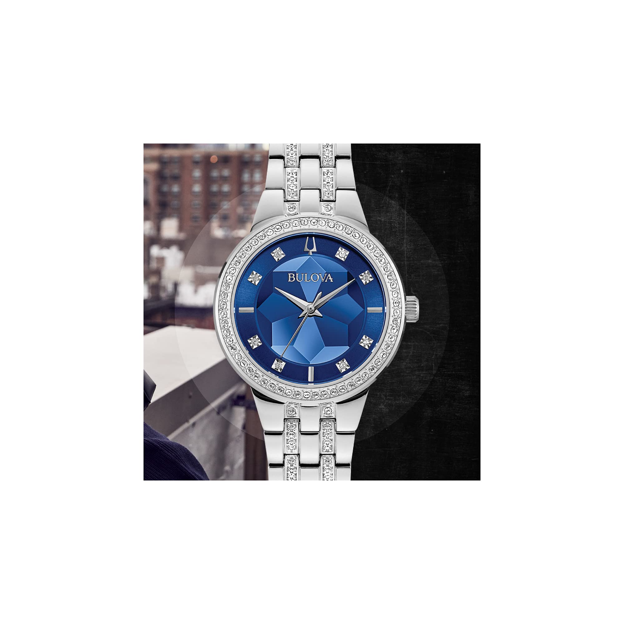 宝路华Bulova 宝路华 女士水晶幻影石英表 Stainless/Blue Dial 32.5毫米