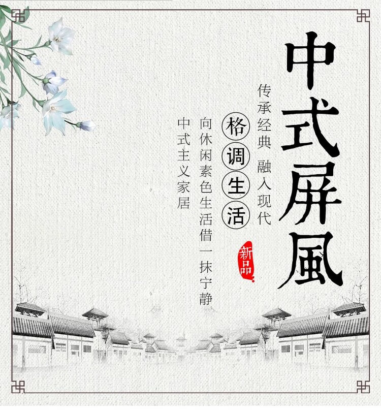 海诗圣堡新中式屏风隔断客厅遮挡折叠移动养生馆饭店家用办公室可折叠折屏 新中式(1) 1扇画布(高0.3米宽0.3米)