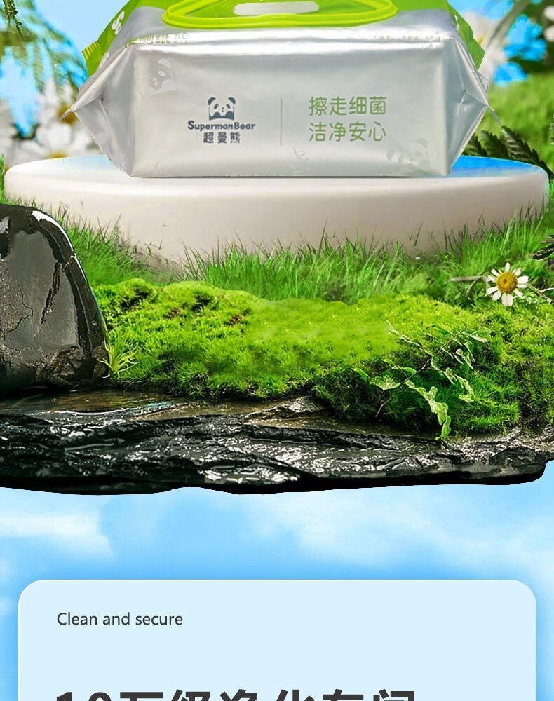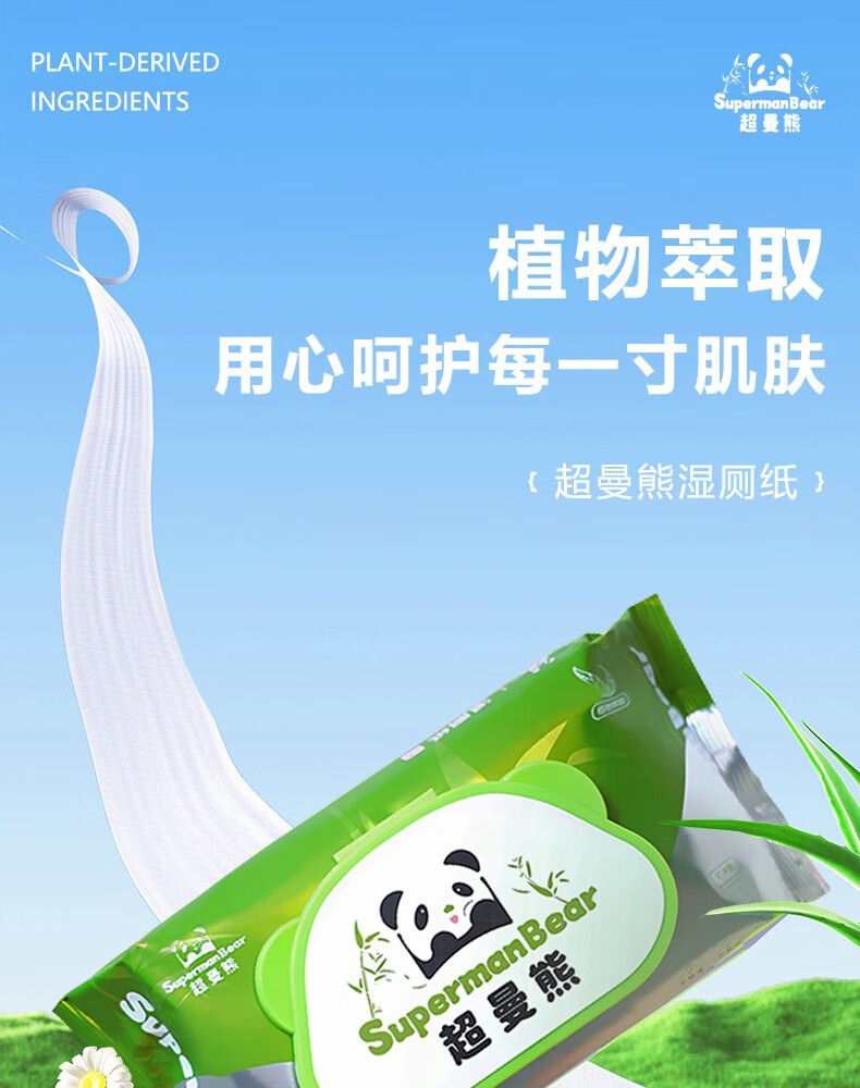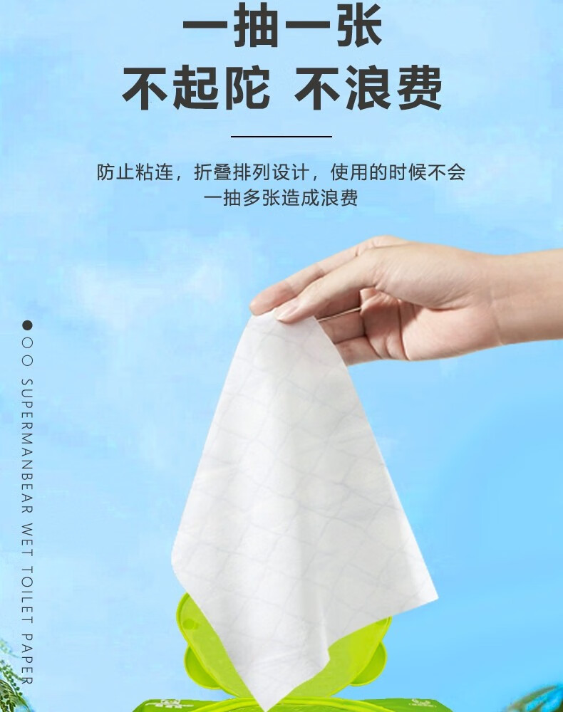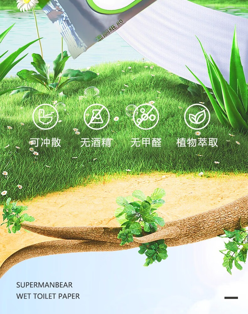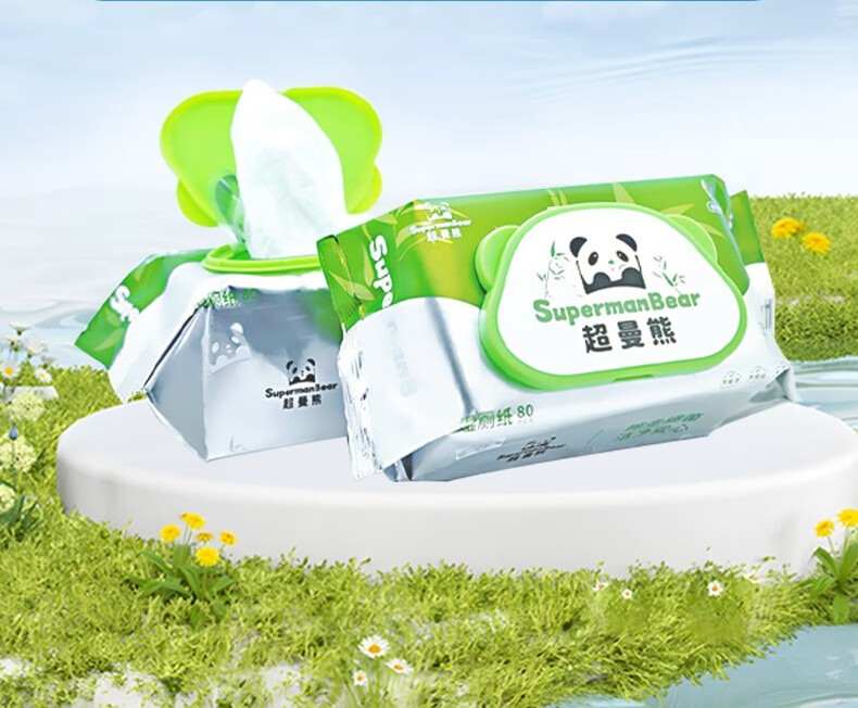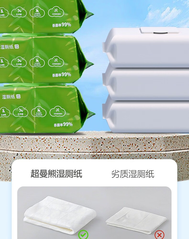 超曼熊加厚湿厕纸 家庭清洁纸品 全家适用无刺激清洁湿纸巾可冲散 超曼熊湿厕纸 80抽*3包