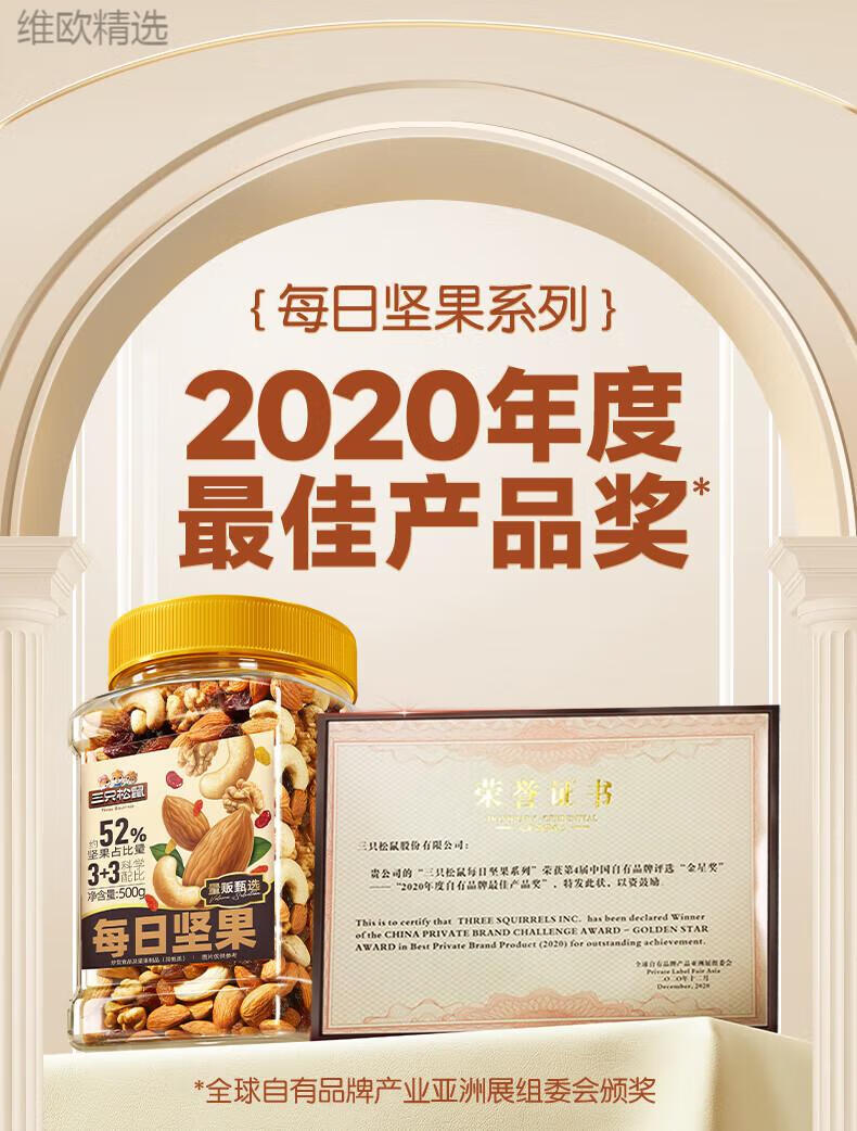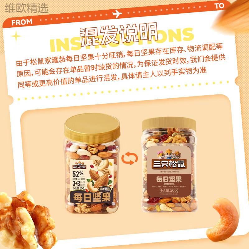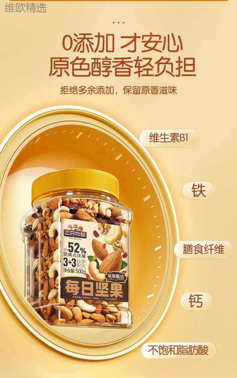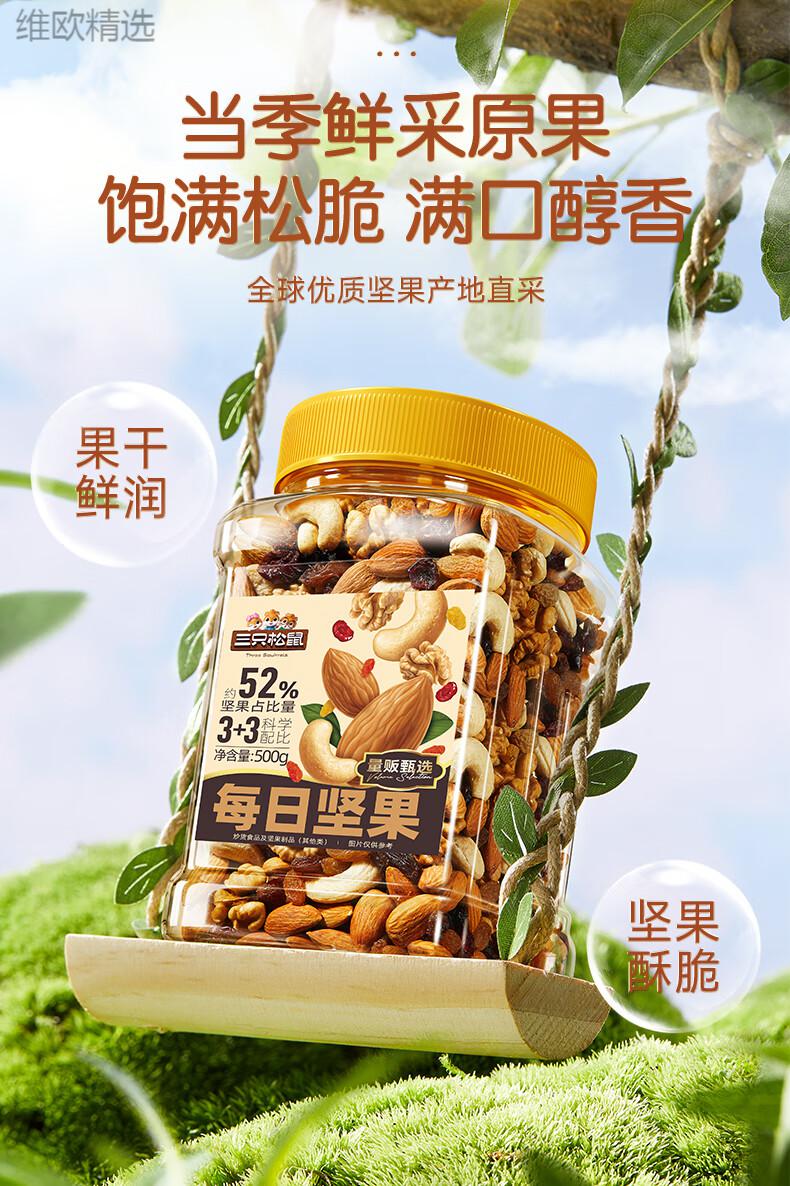 三只松鼠坚果营养健康休闲零食品混合果干 罐装每日坚果元气款400gx1罐