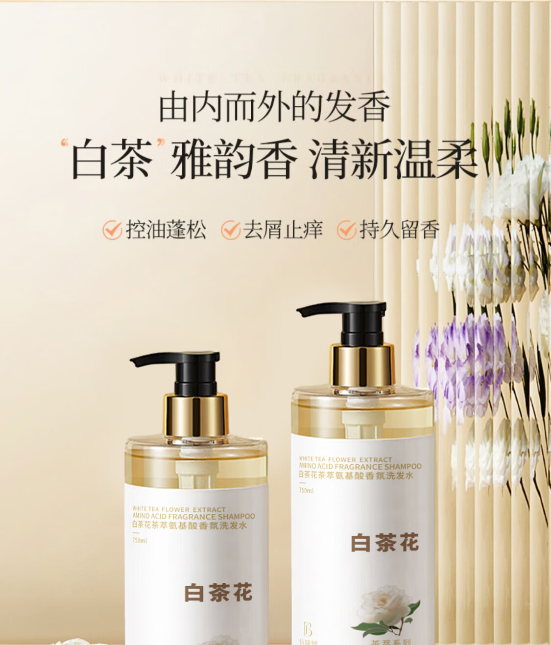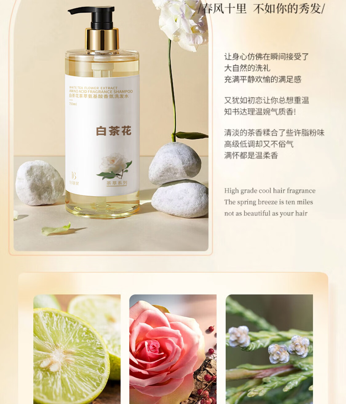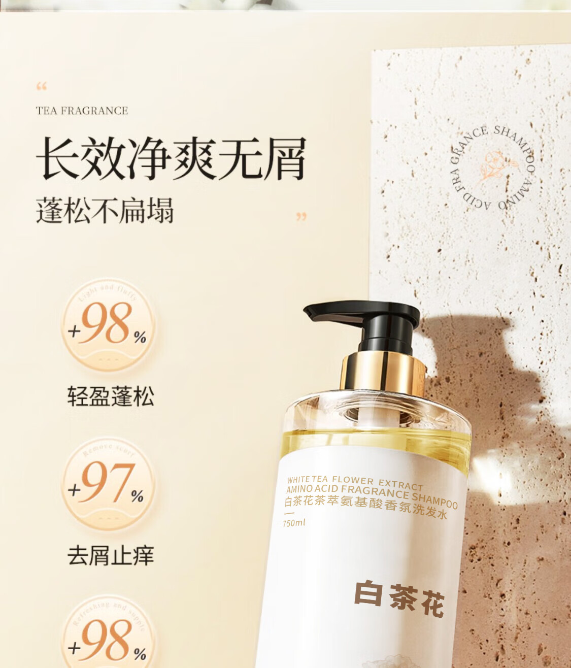 倍膳健白茶花氨基酸洗发水男女士无硅油去屑止痒洗头膏蓬松洗发露750ml