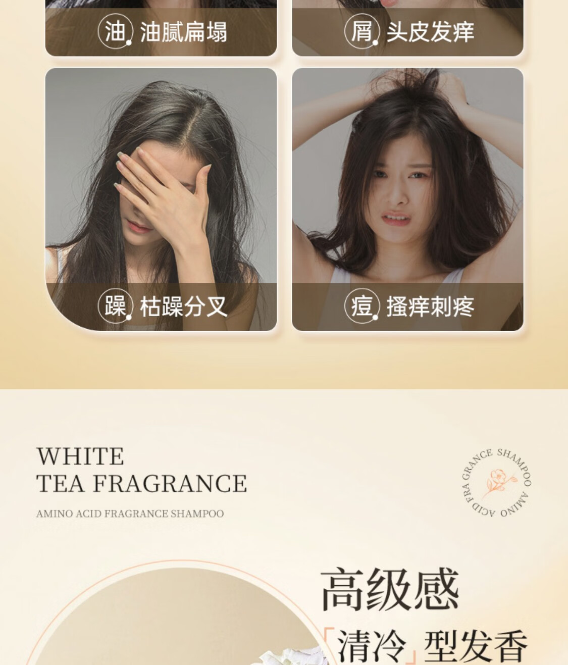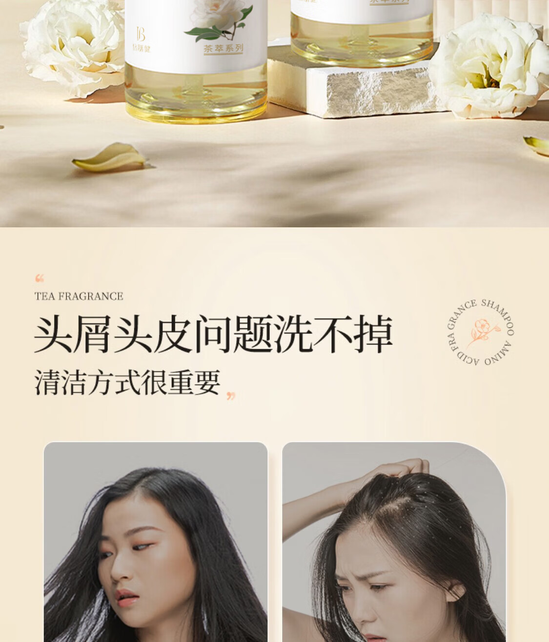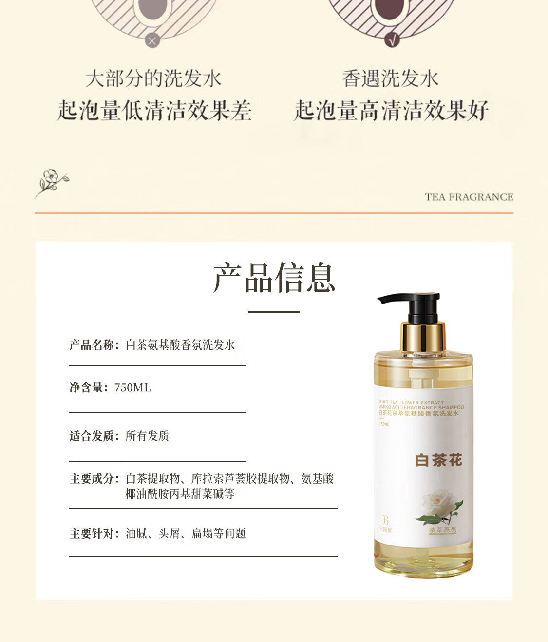 倍膳健白茶花氨基酸洗发水男女士无硅油去屑止痒洗头膏蓬松洗发露750ml
