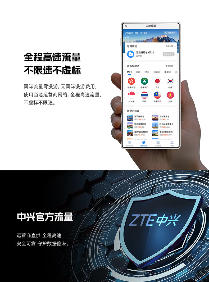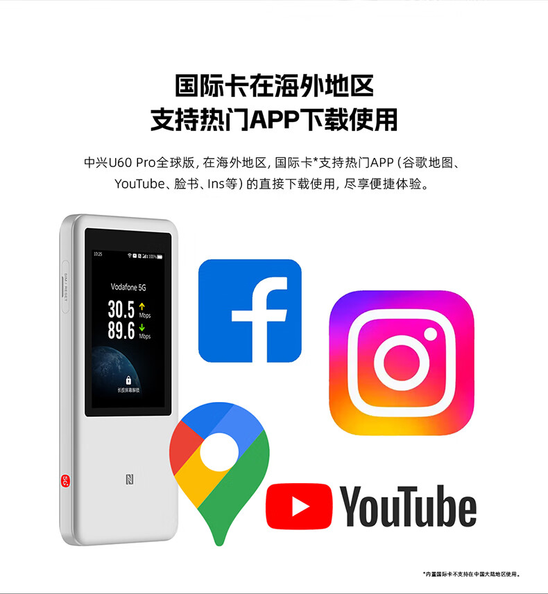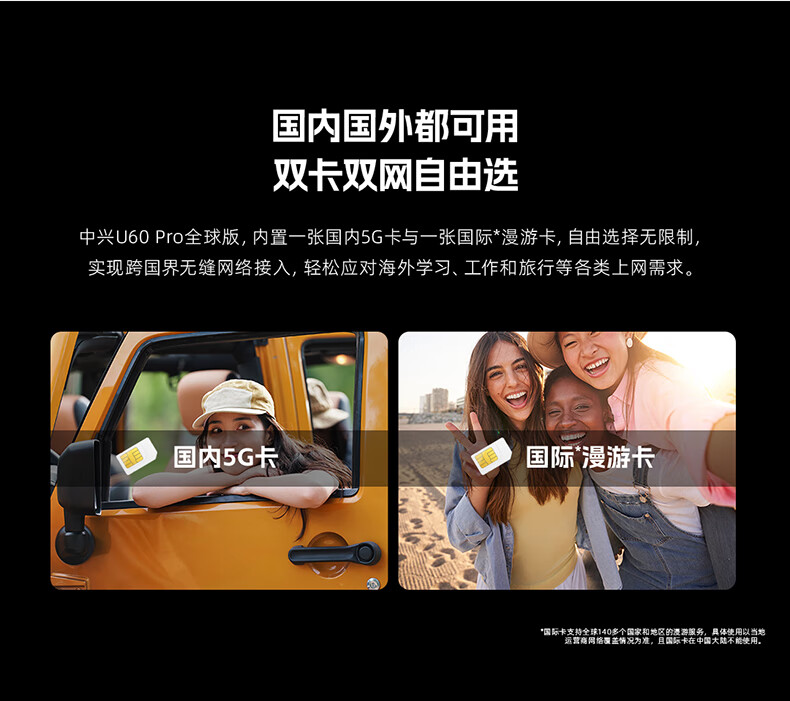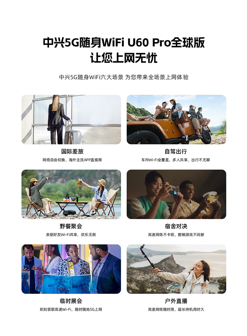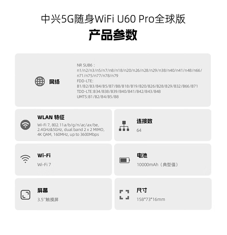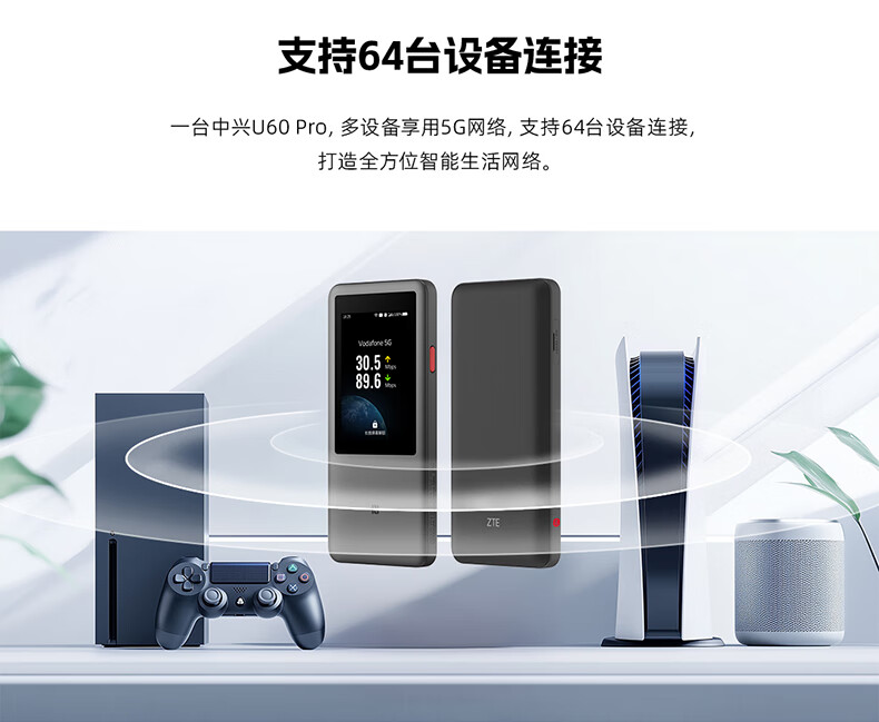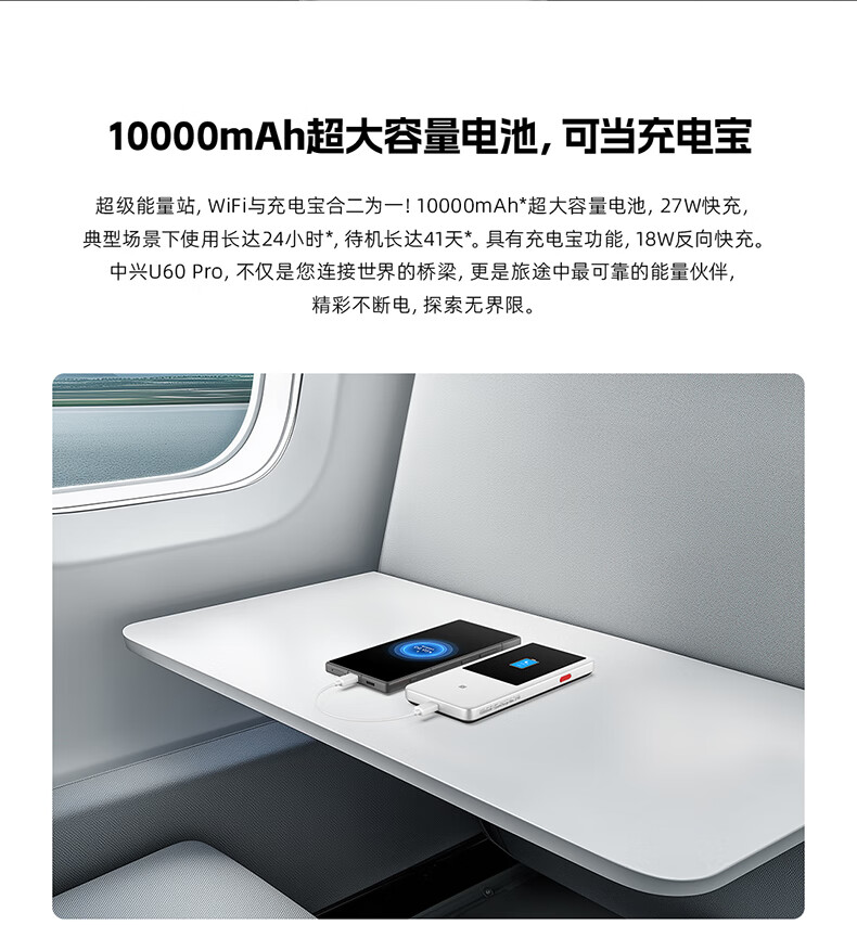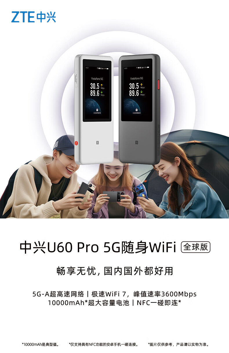 中兴(ZTE)U60 Pro全球版 5G免插卡随身移动wifi无线网卡wifi7便携式热点出国上网通用流量2025款可当充电宝