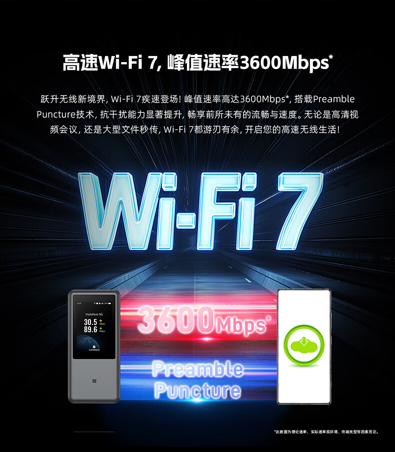 智选2025款免插卡移动随身WlFl5g无限流量全国通用穿墙无线网 WiFi6【荣耀版】提速9999%