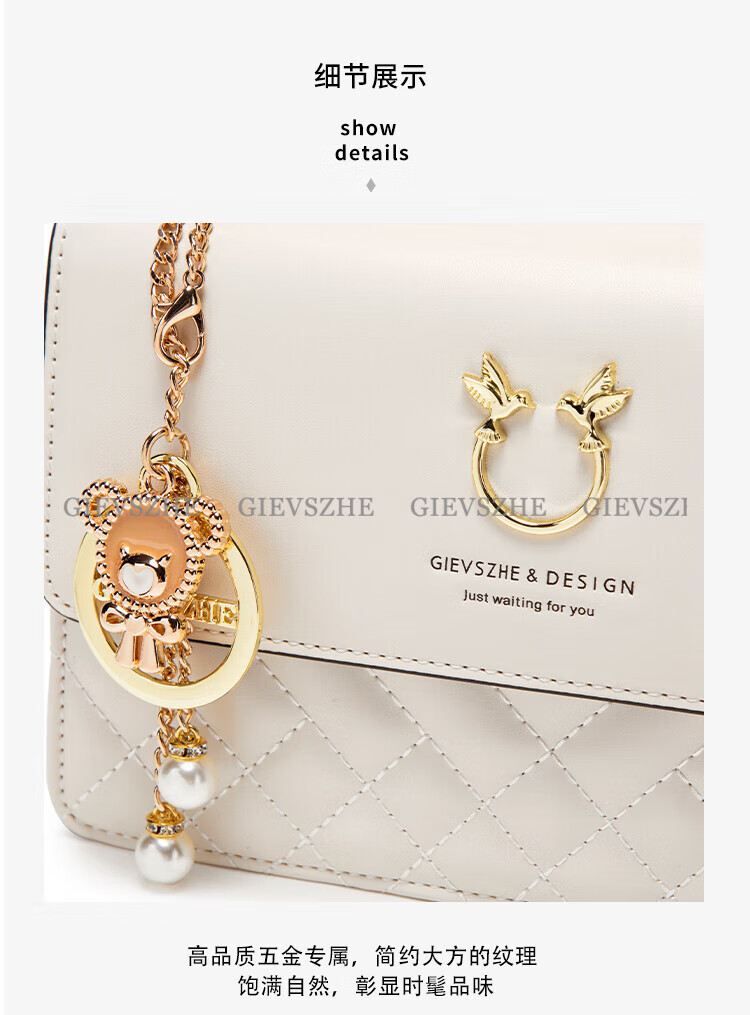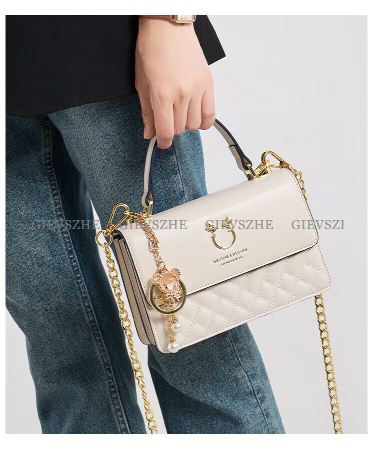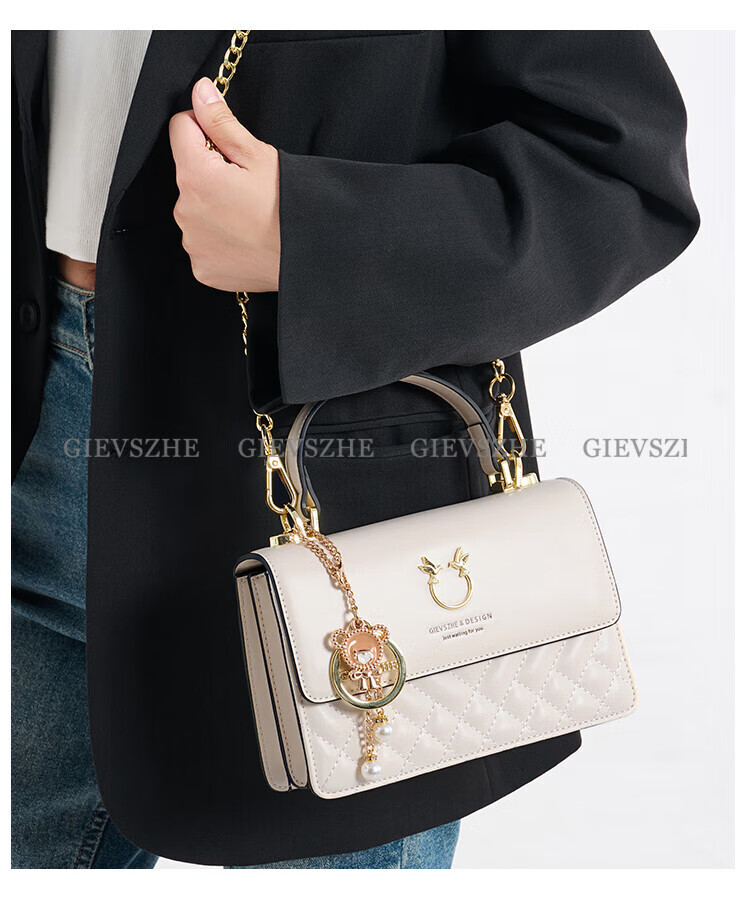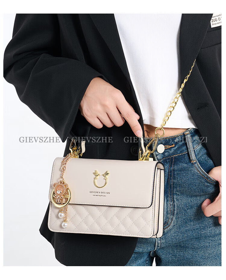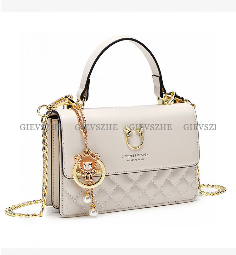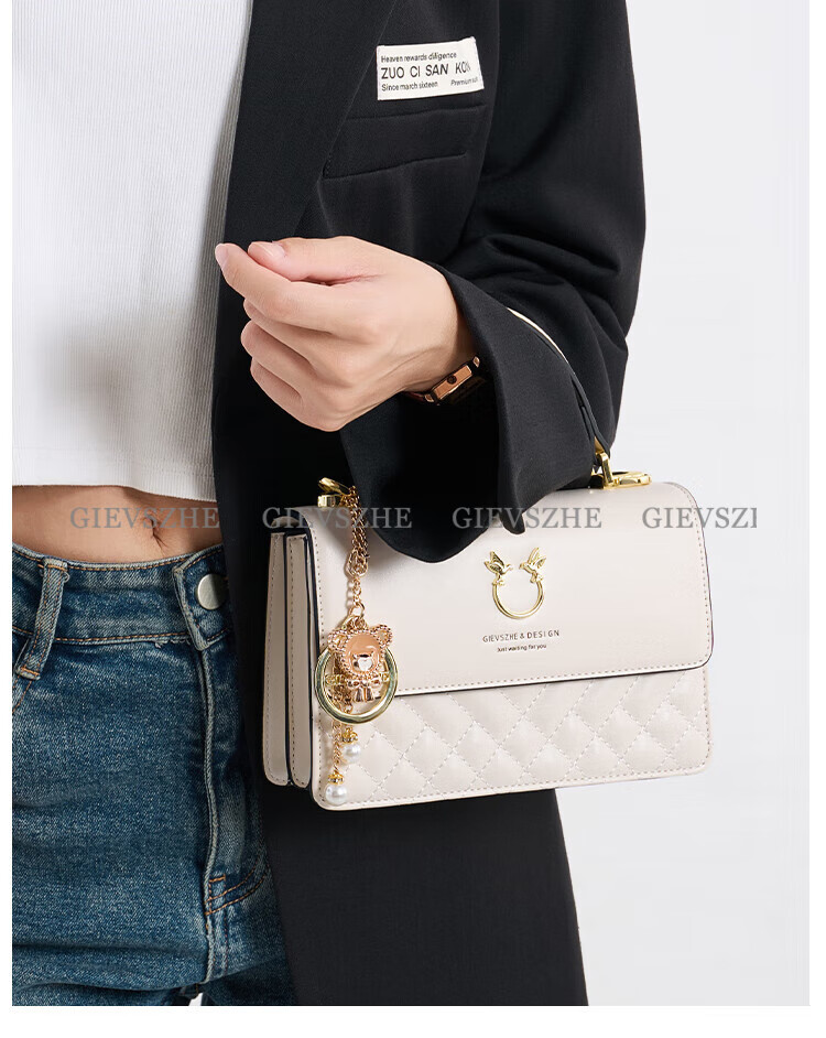 纪诗哲(GIEVSZHE)包包女包2025年新款轻奢侈女士单肩斜挎包情人节生日礼物送女友 米白色【2025新款/小熊挂件】