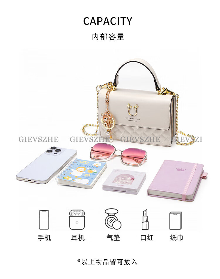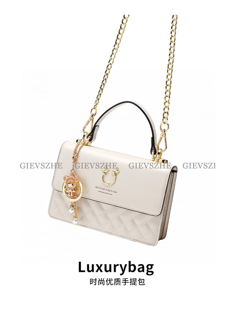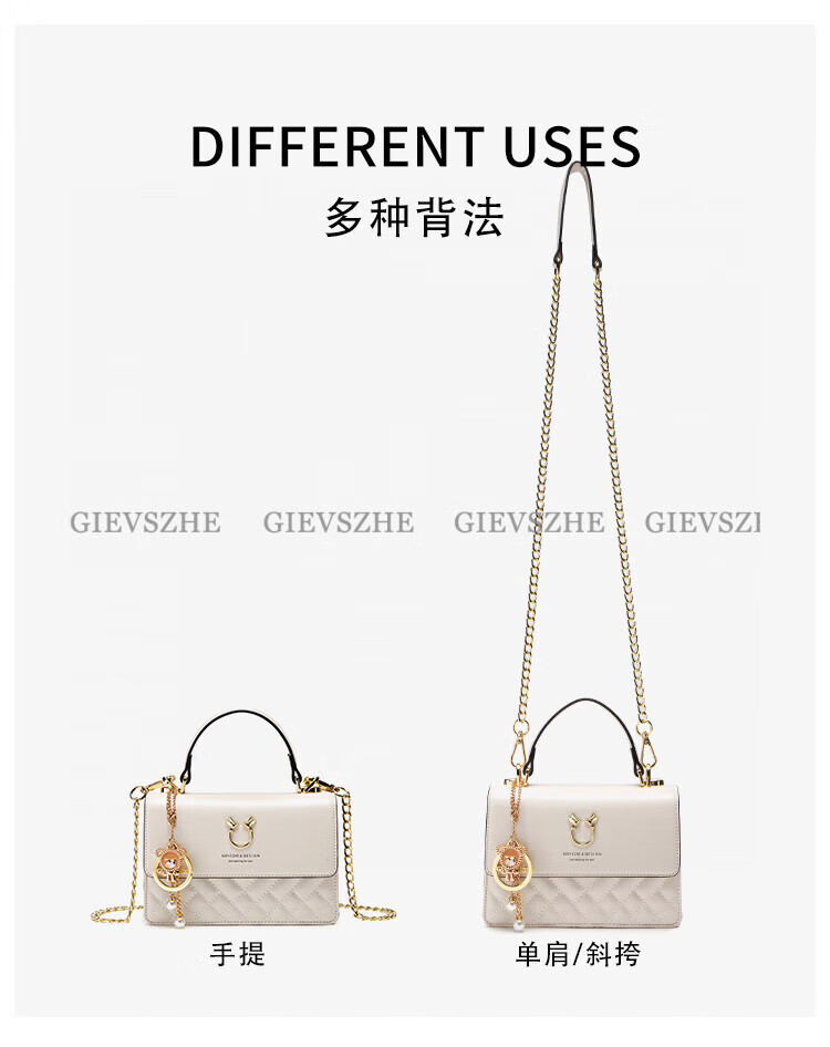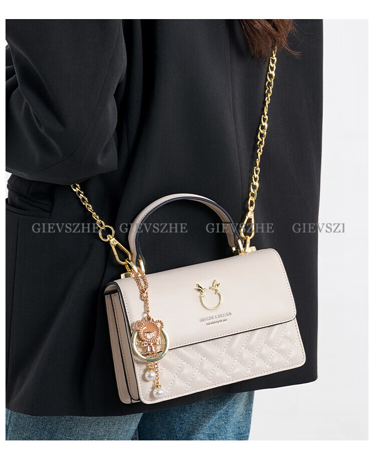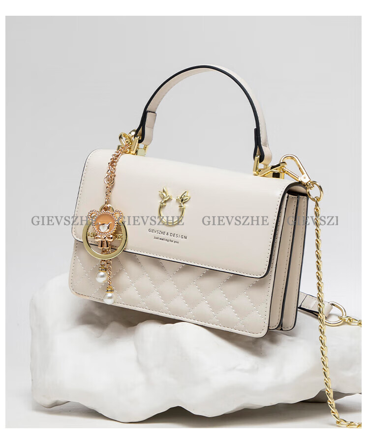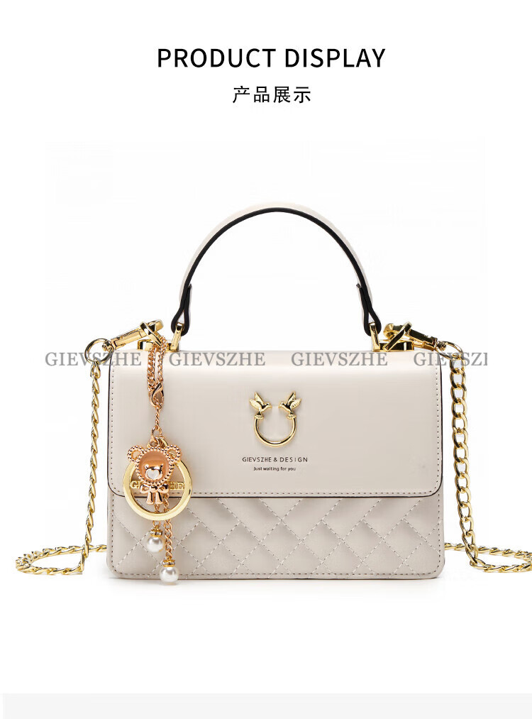 纪诗哲(GIEVSZHE)包包女包2025年新款轻奢侈女士单肩斜挎包情人节生日礼物送女友 米白色【2025新款/小熊挂件】