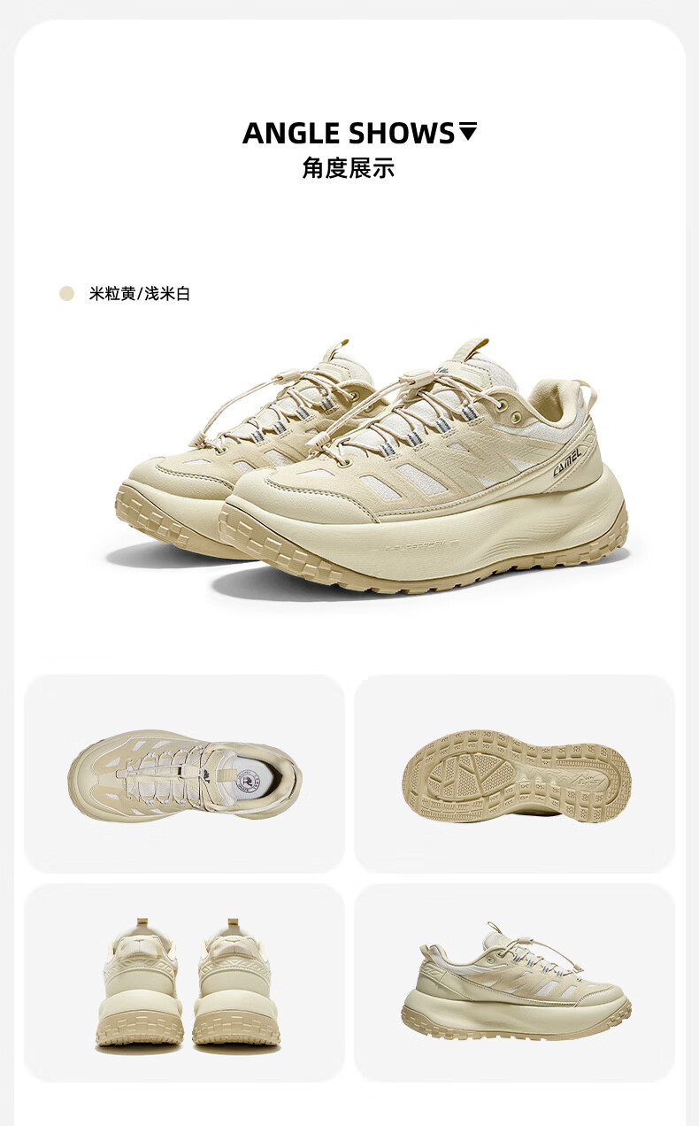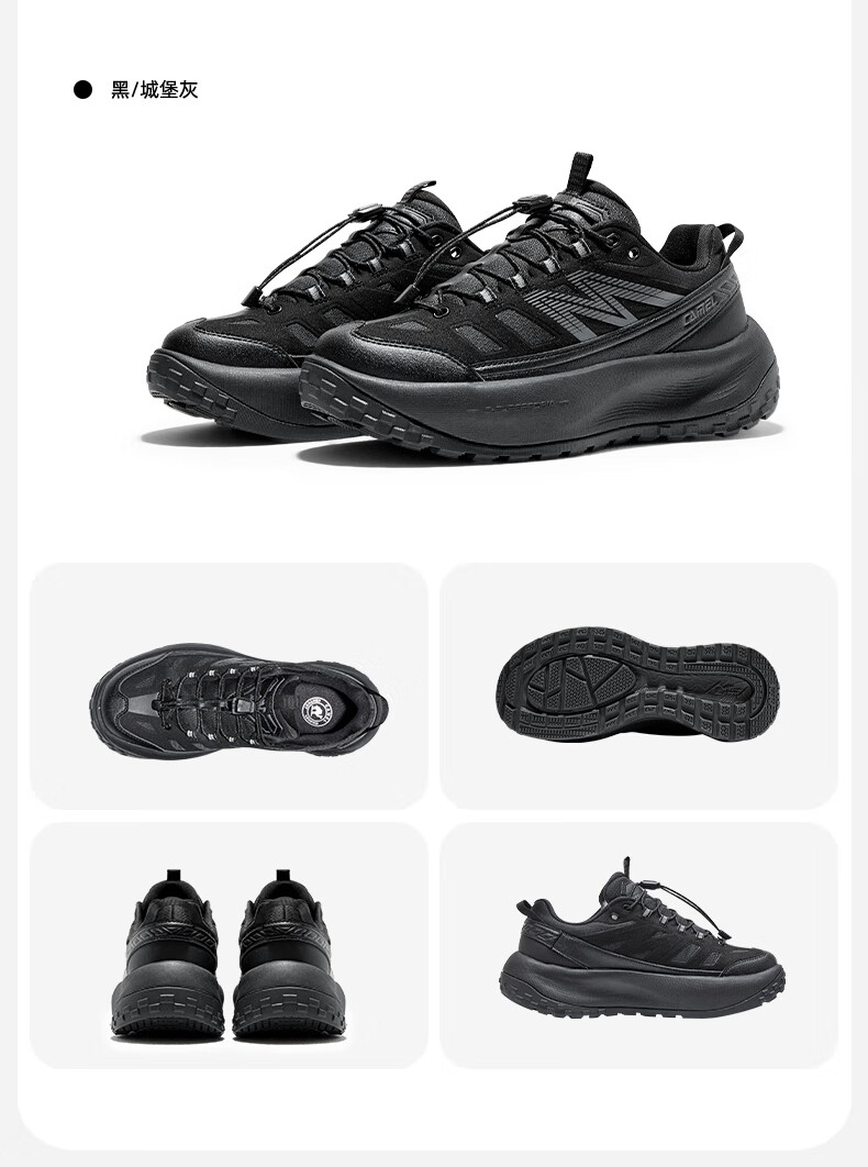 骆驼(CAMEL)追山运动男鞋女鞋厚底缓震回弹休闲慢跑步鞋子 4056,黑/城堡灰,男 42