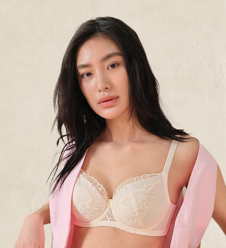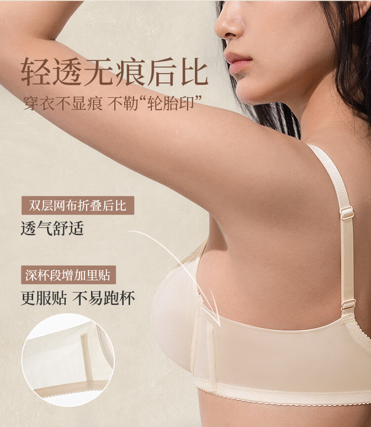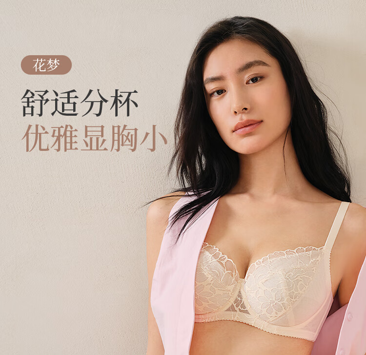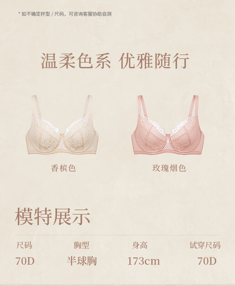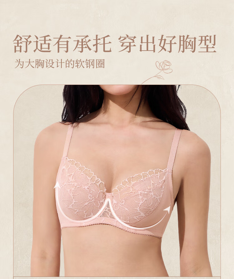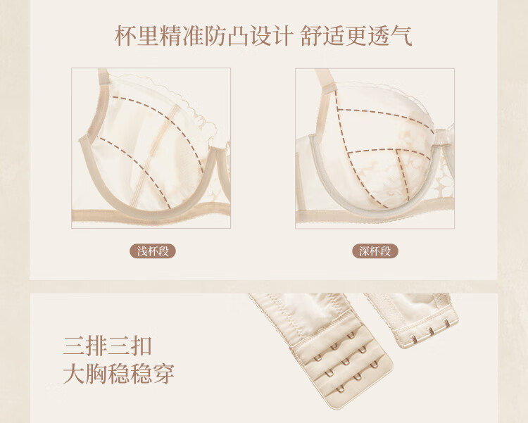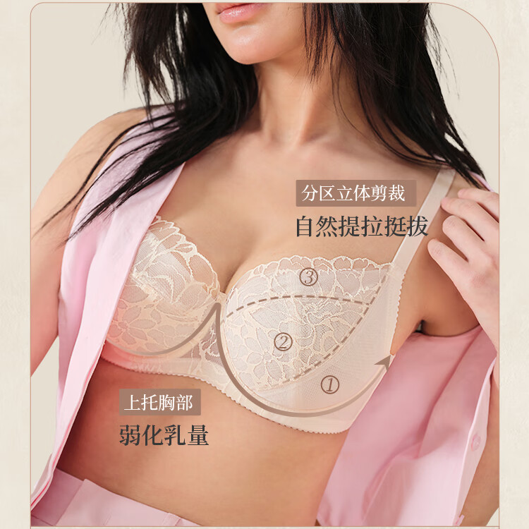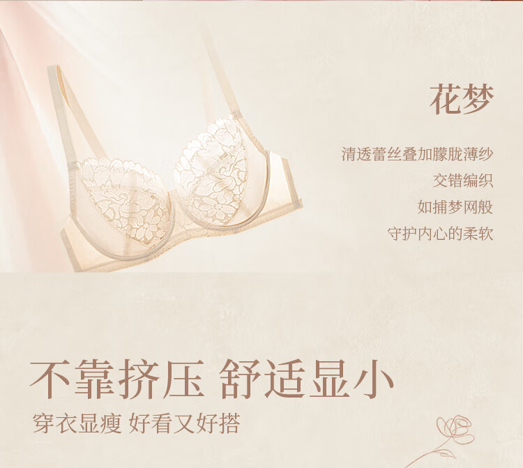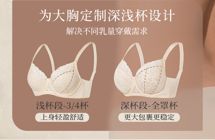 奶糖派花梦3/4舒适分杯优雅大胸显胸小清透无痕内衣文胸送女友 香槟色 85C