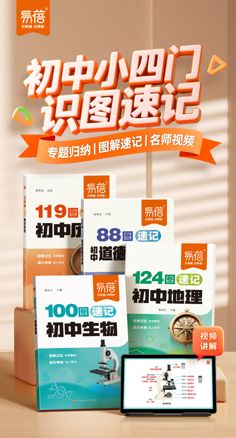 易蓓初中小四门识图速记历史道法地理生物图解妙记119图88图114图100图教材笔记课文划重点会考中考复习资料大全 小四门套装【历史+道法+地理+生物】