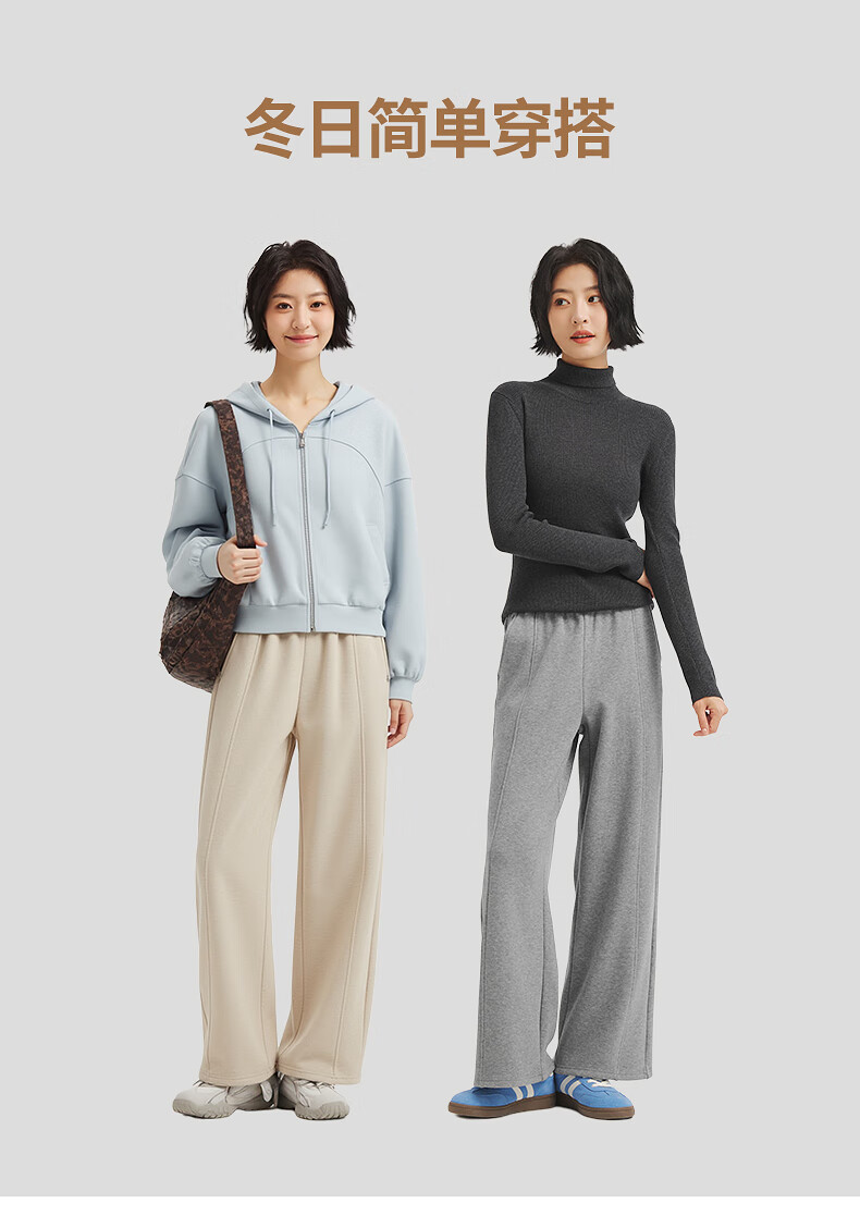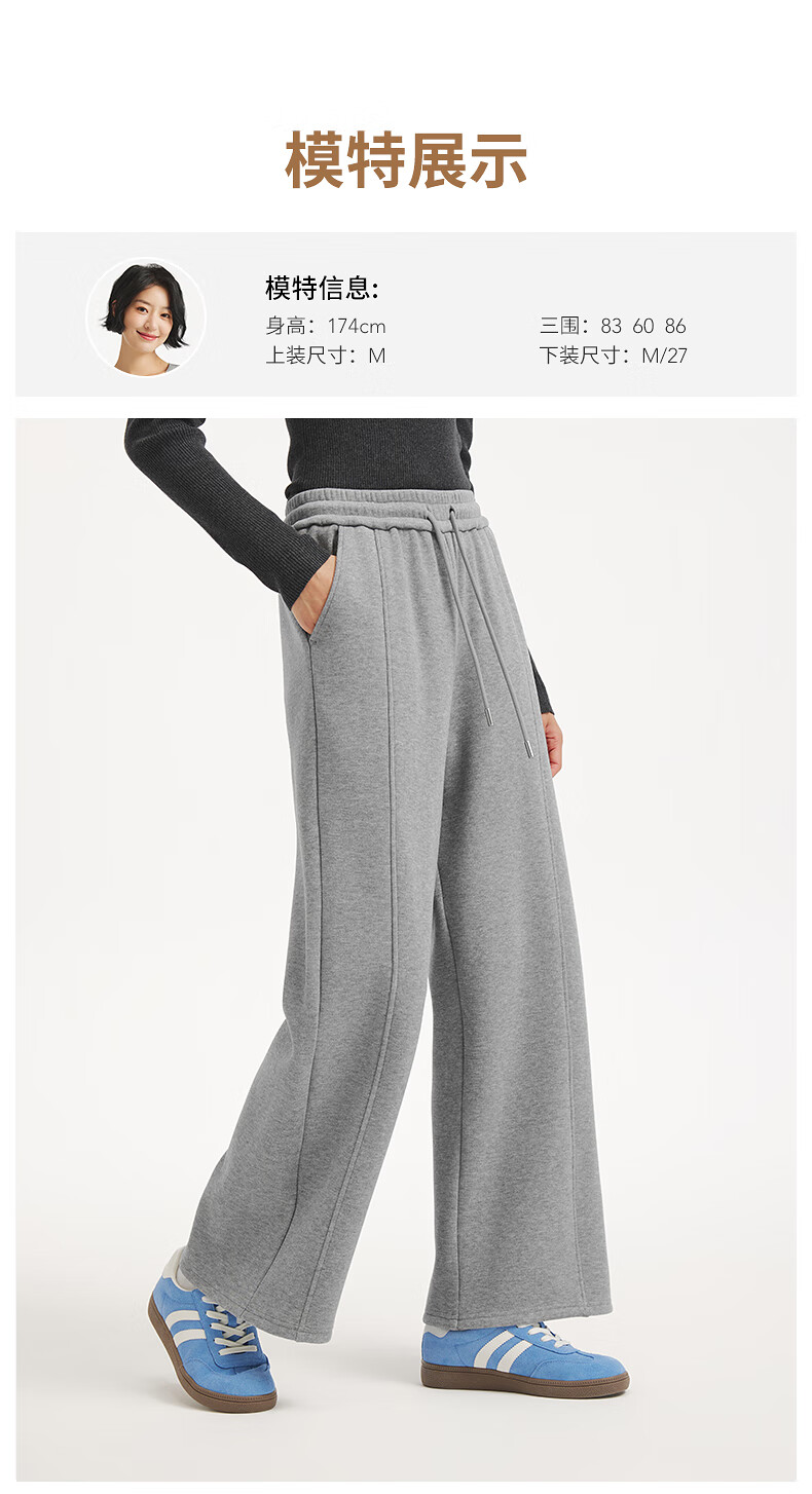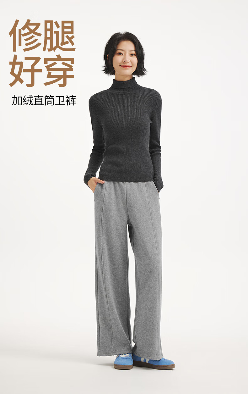 热风(Hotwind)【商场同款】女士加绒直筒卫裤2025年冬季新款绒感直筒休闲长裤 09灰色 S