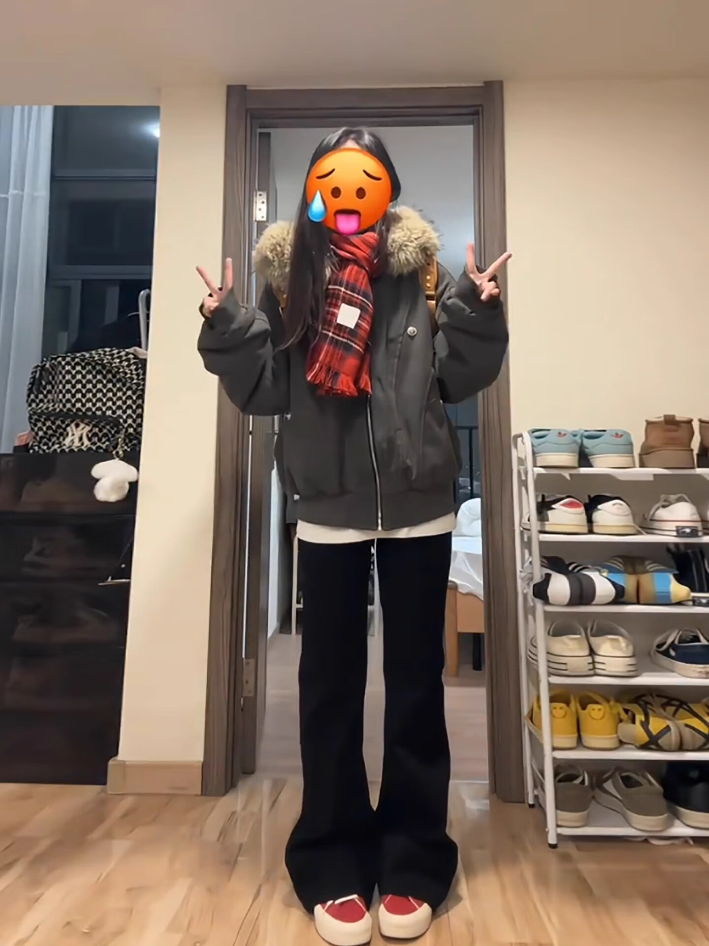 相伊恋人棉服女25年秋冬新款座山雕短款外套加绒加厚小个子派克服工装棉袄 灰绿色 M 【推荐100斤-115斤】