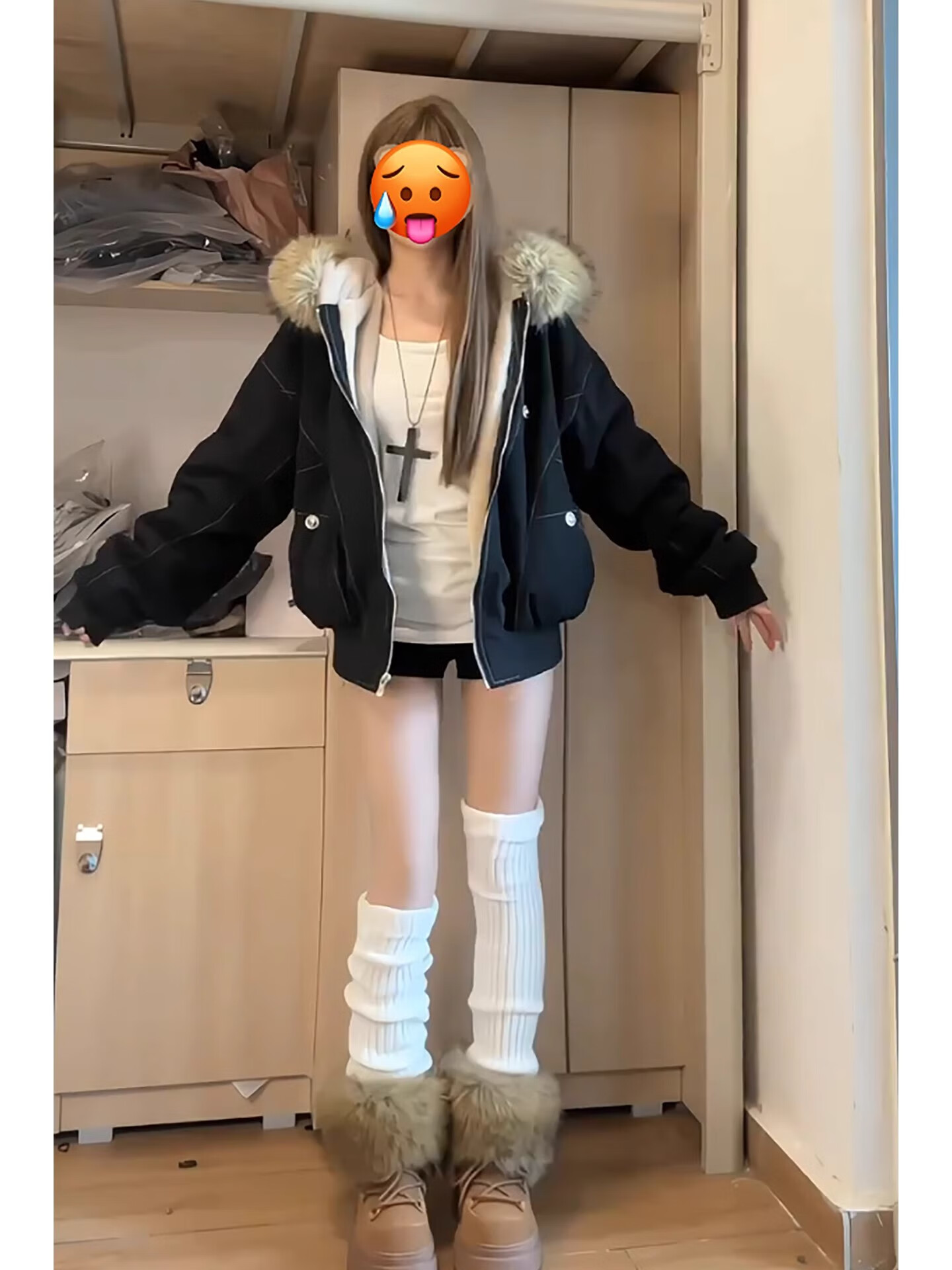 鸭鸭王一博同款轻壳系列羽绒服女短款2025冬季新款简约保暖轻薄外套HY 黑色 2XL