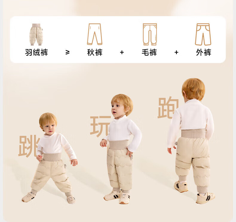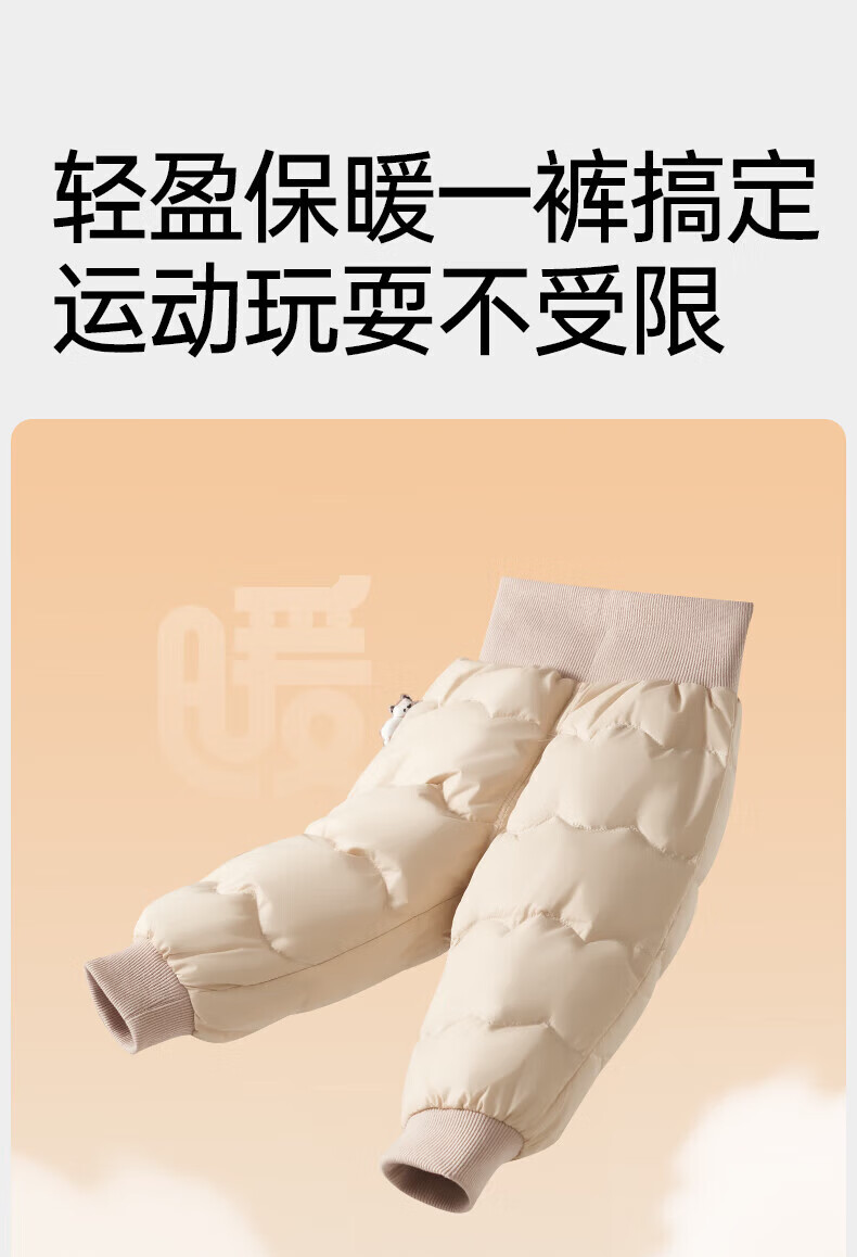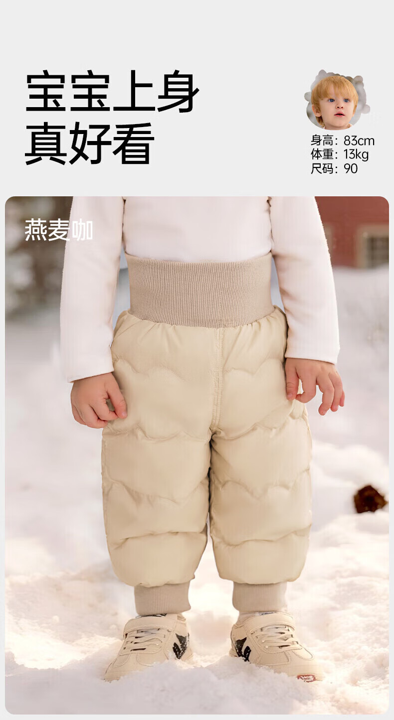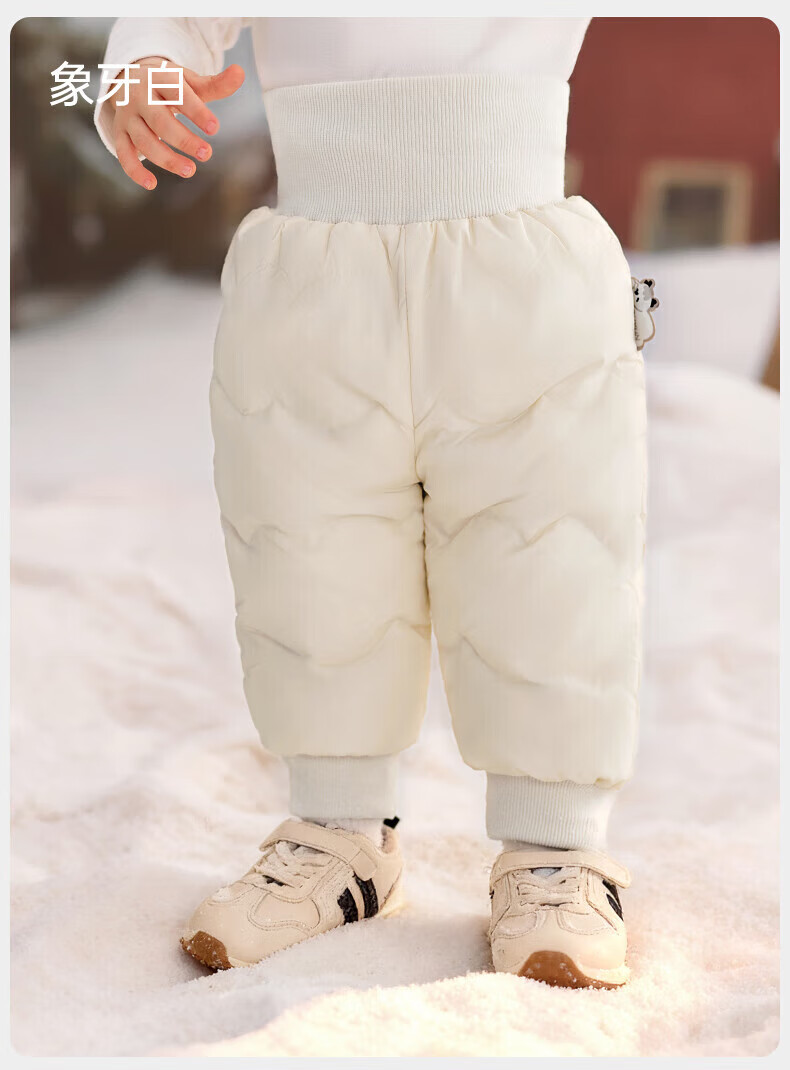 欧孕(OUYUN)宝宝羽绒裤外穿冬季新款男童女童儿童婴儿90白鸭绒裤子男 象牙白 [90白鸭绒 A类标准] 80 [建议身高73cm-80cm]