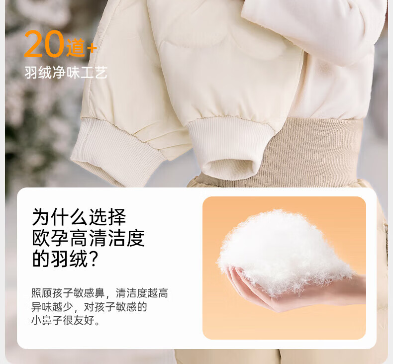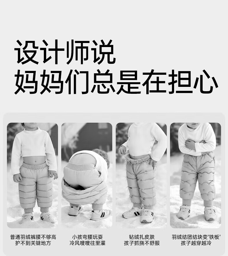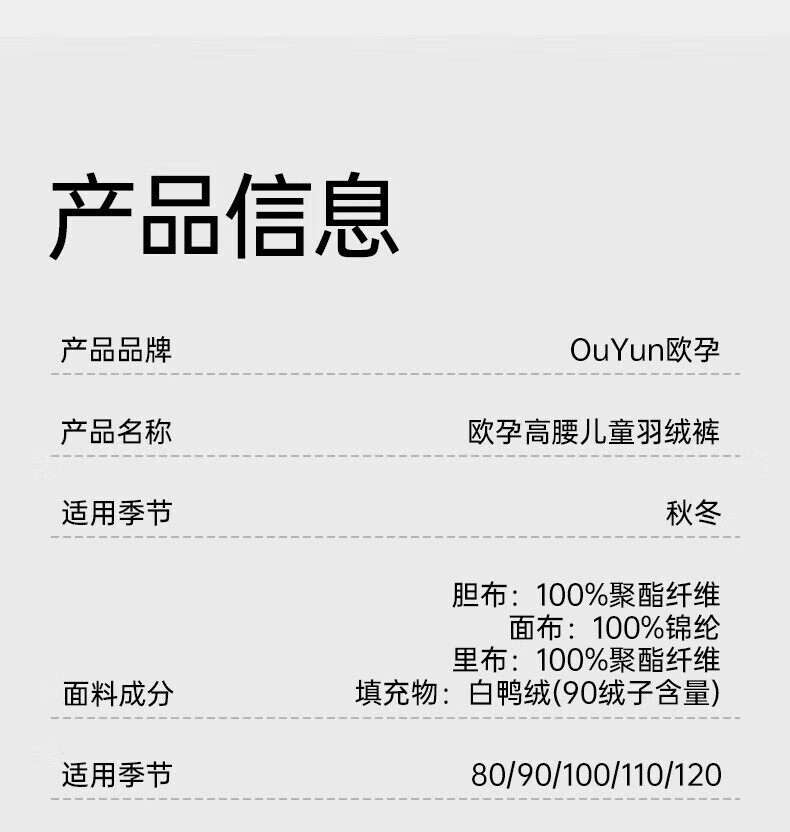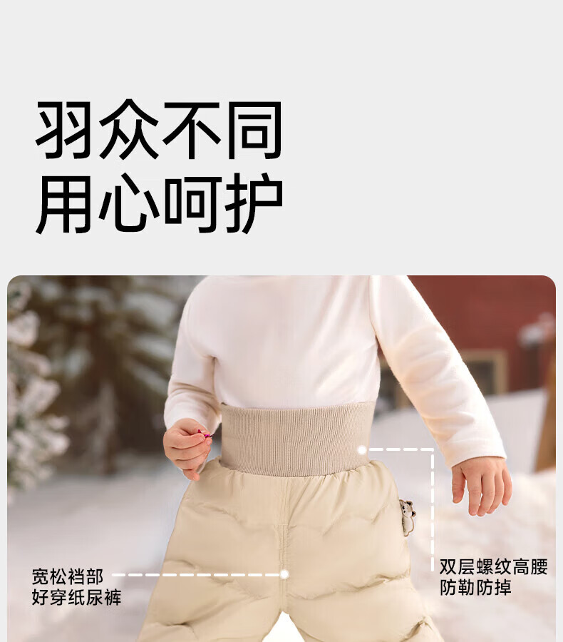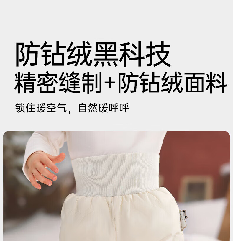 欧孕(OUYUN)宝宝羽绒裤外穿冬季新款男童女童儿童婴儿90白鸭绒裤子男 象牙白 [90白鸭绒 A类标准] 80 [建议身高73cm-80cm]