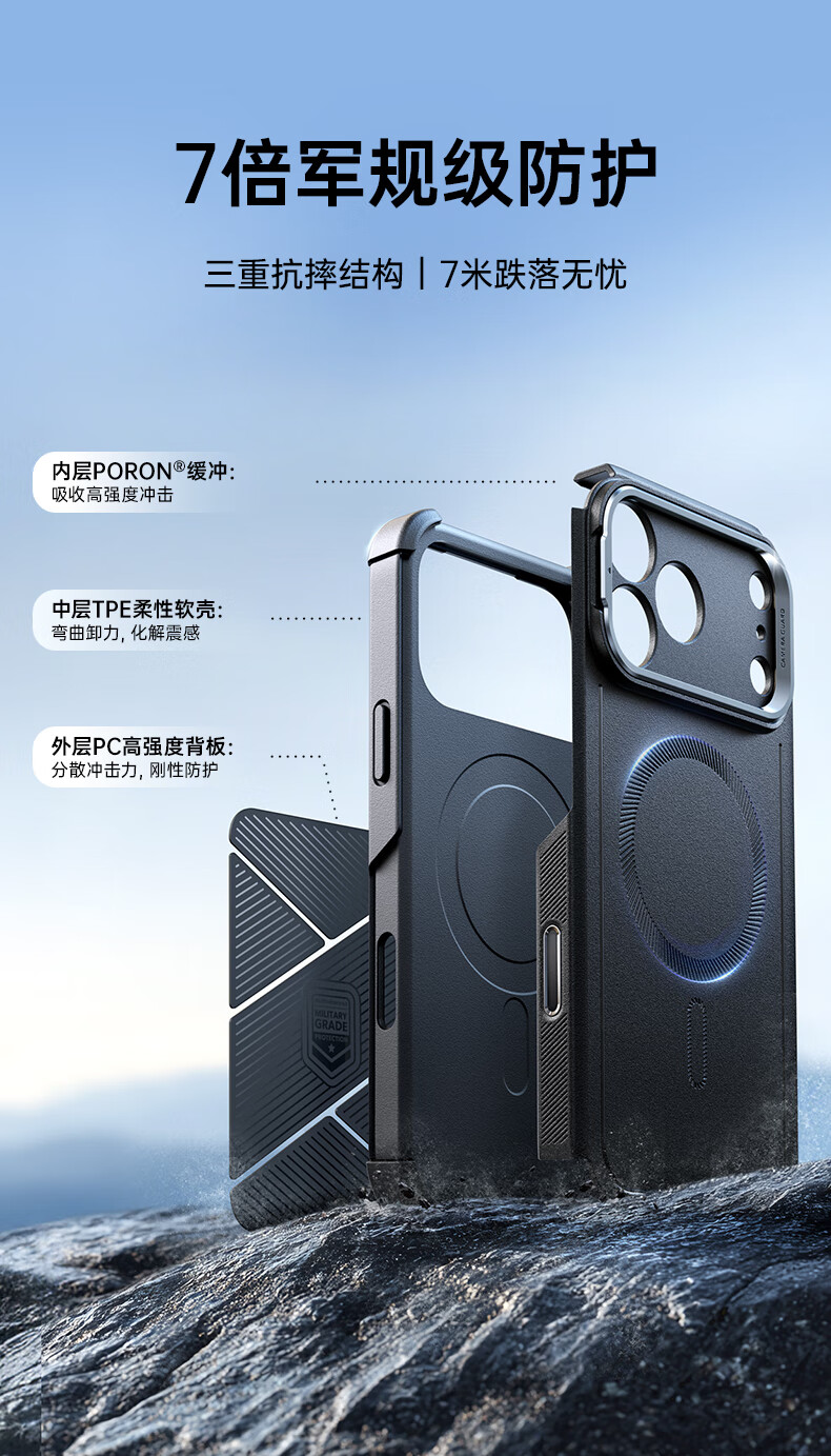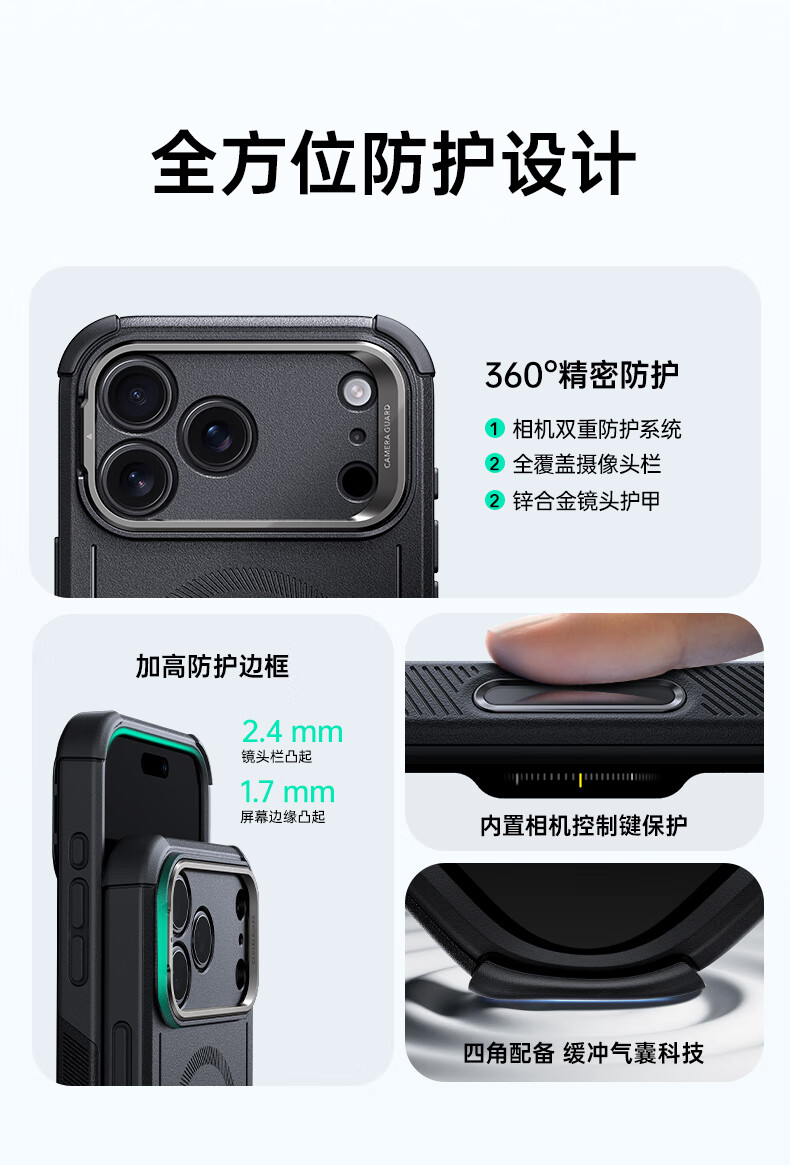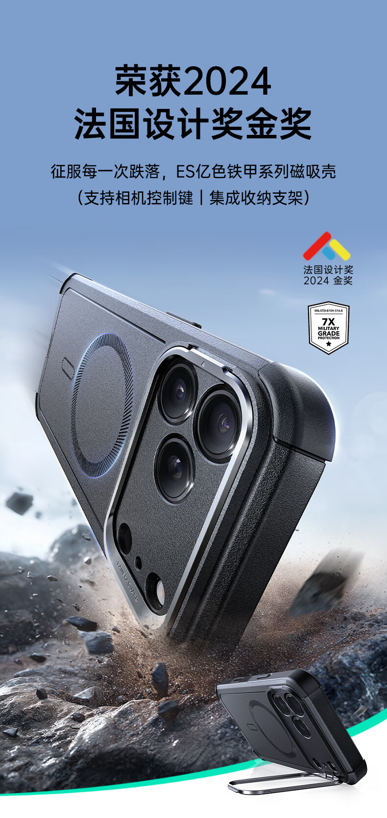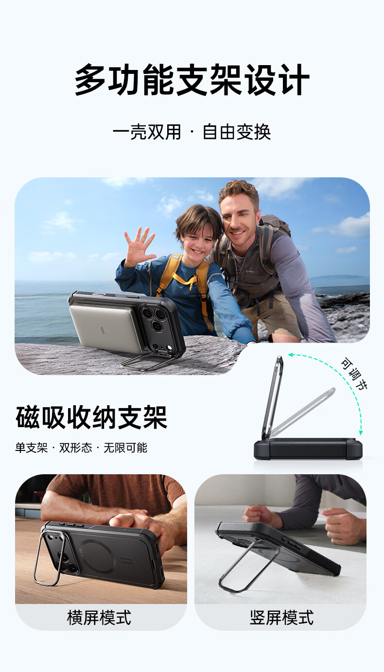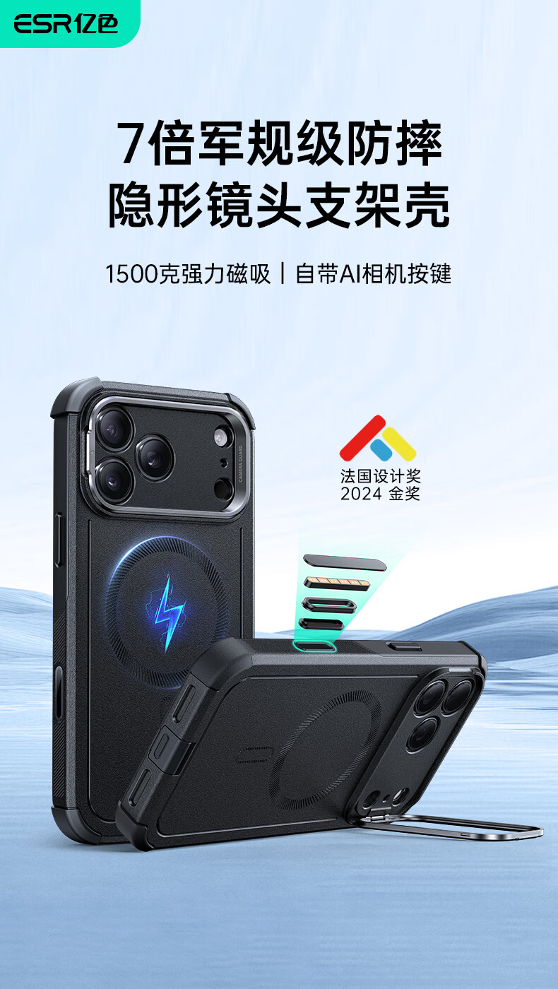 亿色(ESR)自带支架适用iPhone17promax手机壳苹果17promax保护套磁吸壳相机按键镜头全包隐形支架SGS防摔 黑