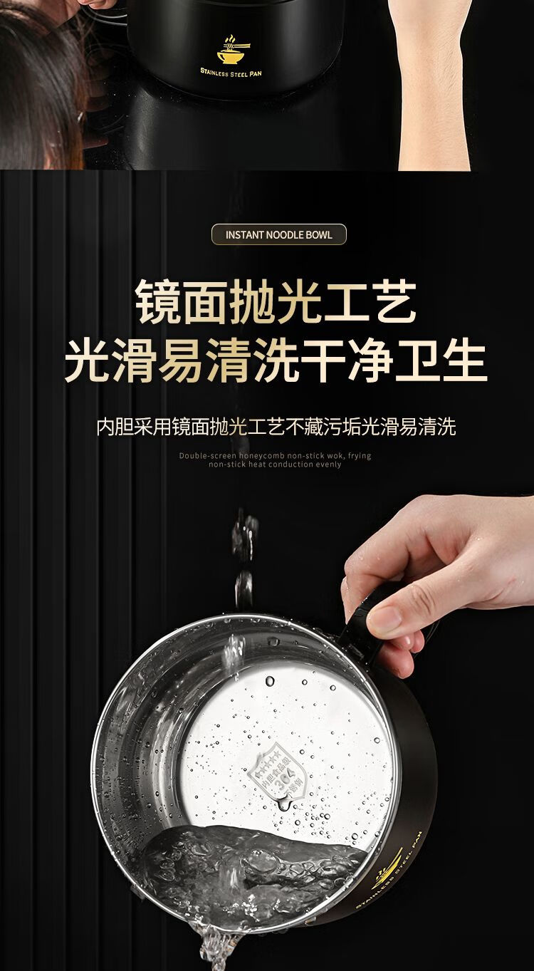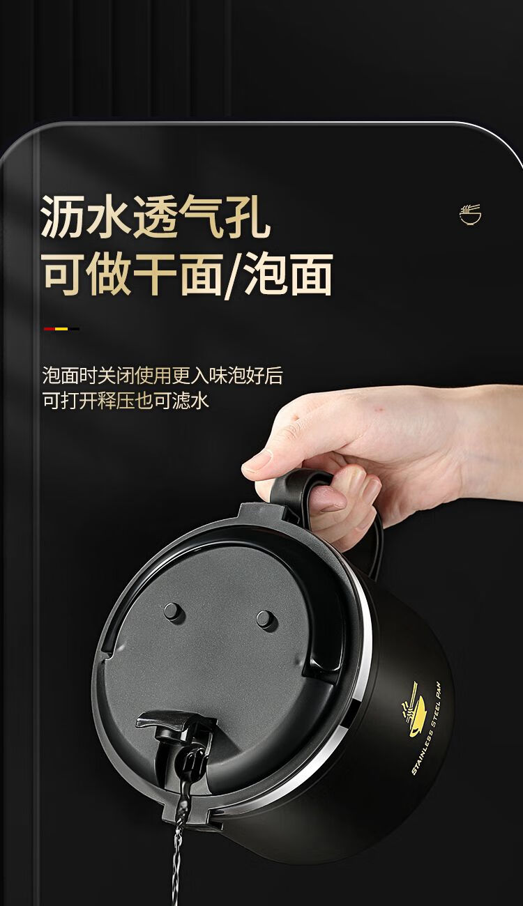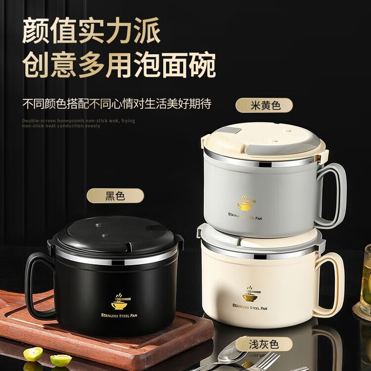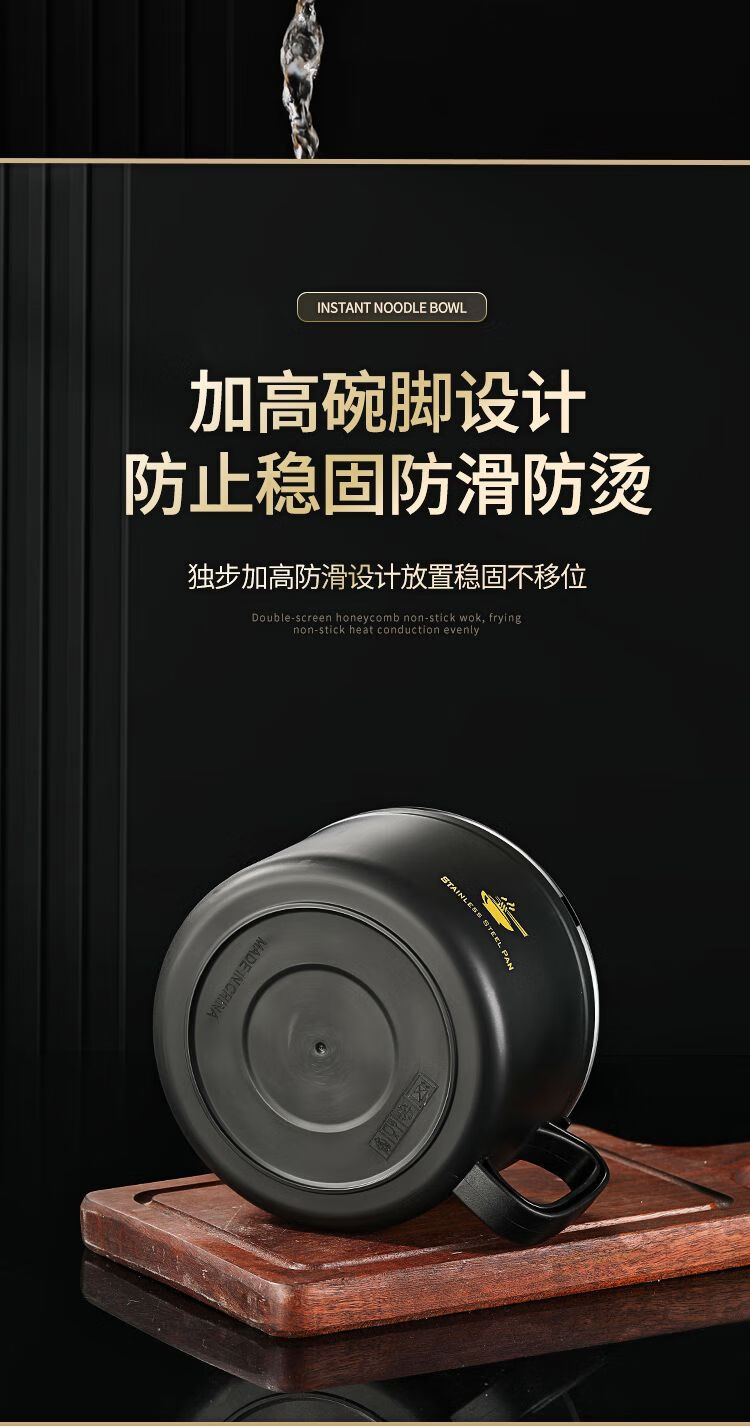 DEATKN德国食品级316不锈钢泡面碗带盖可沥水学生食堂打饭饭盒宿舍304碗 304【黑骑士】 1100ML【无礼品】可泡一包