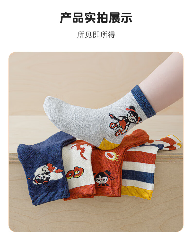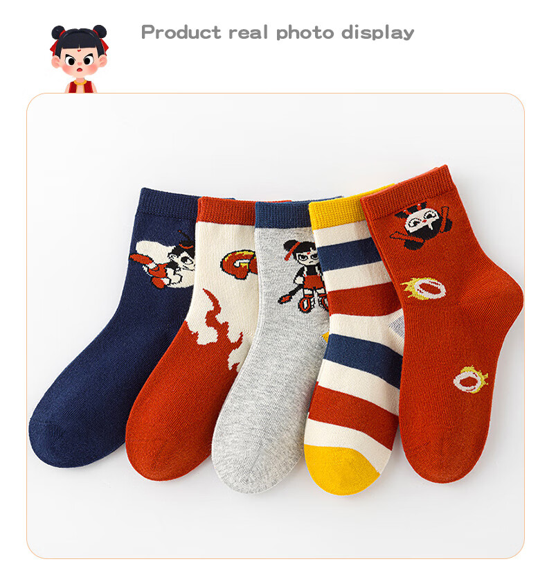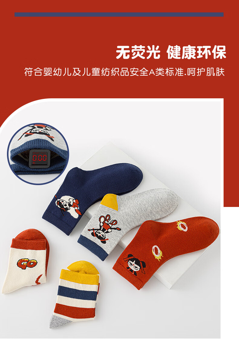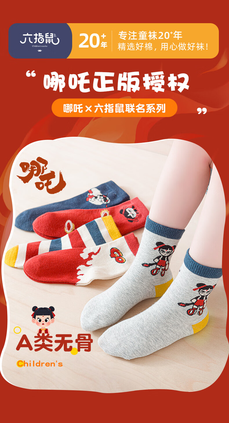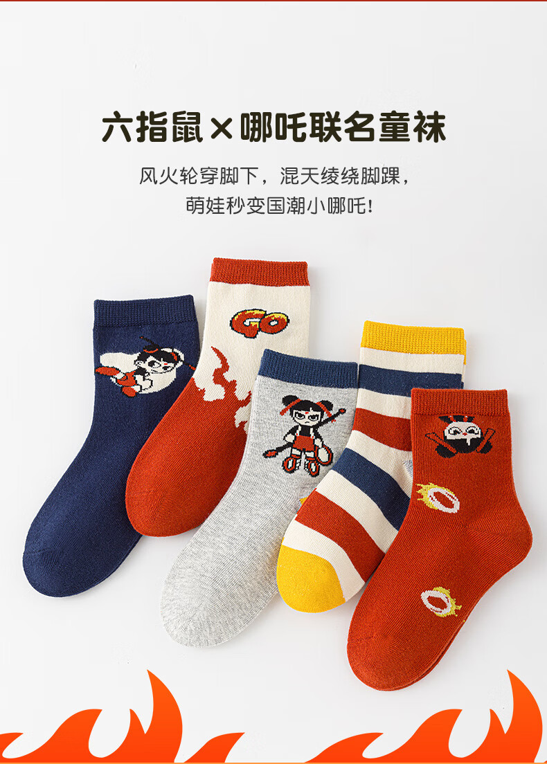 六指鼠哪吒无骨秋冬儿童袜子男童大童宝宝中筒长筒小孩春秋款厚款