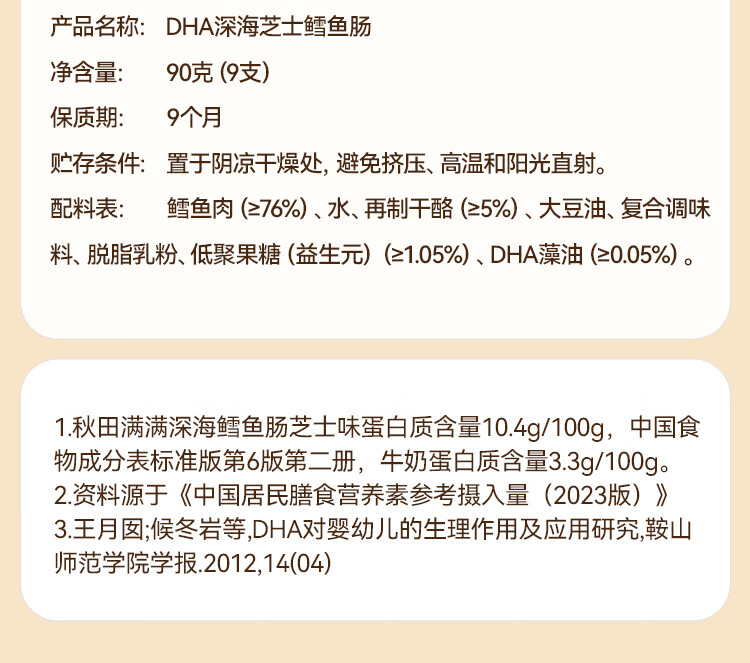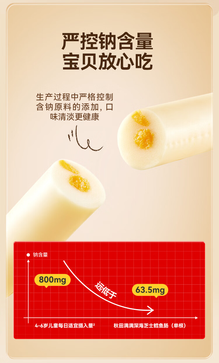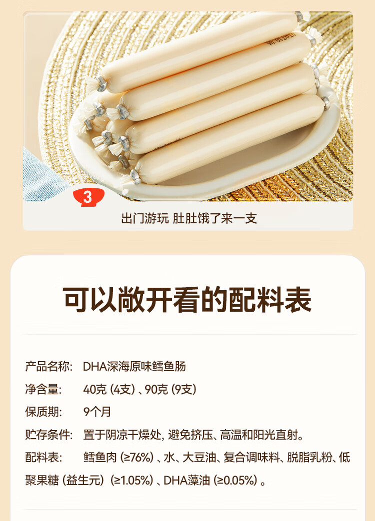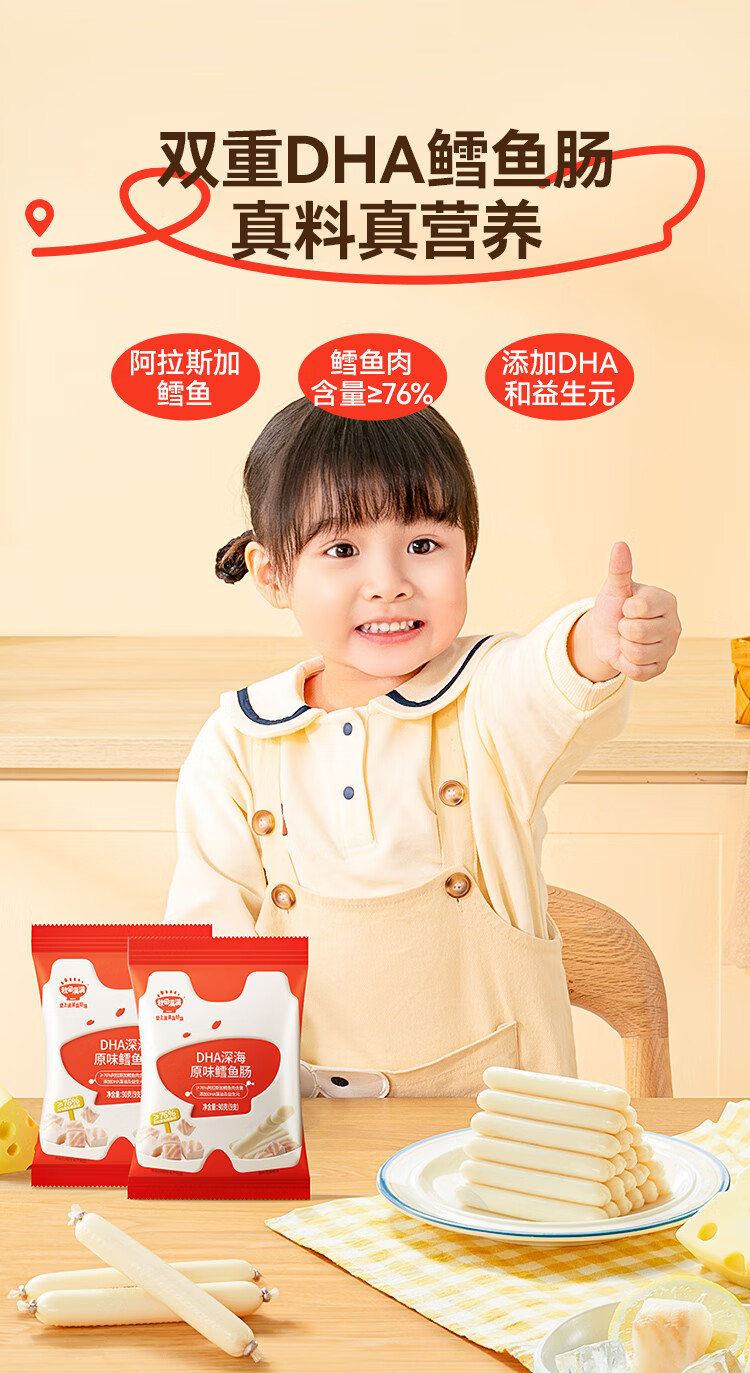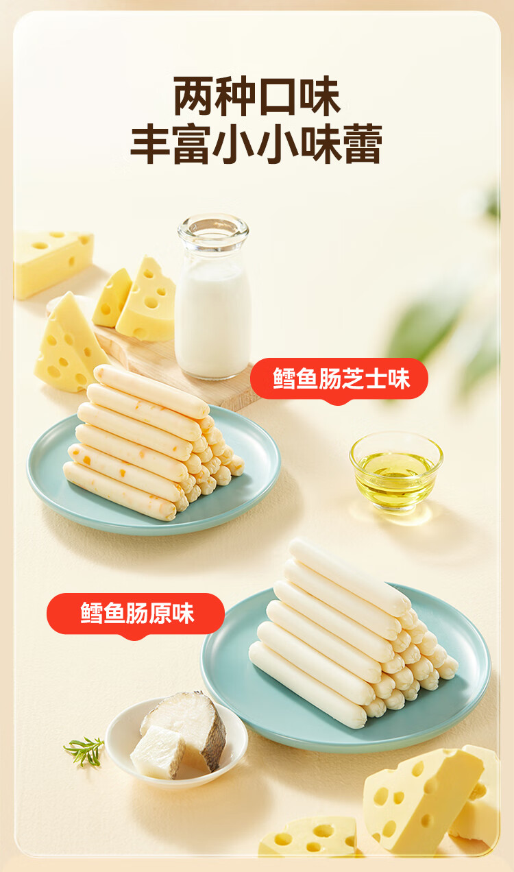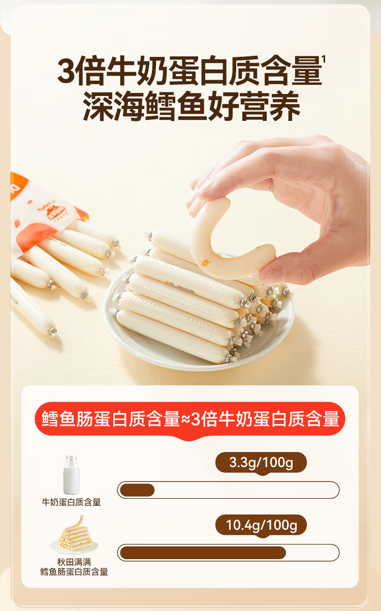 秋田满满鳕鱼肠 儿童零食 无杂鱼肉肠添加营养即食-享婴幼儿宝宝辅食食谱 鳕鱼肠(原味)90g*3