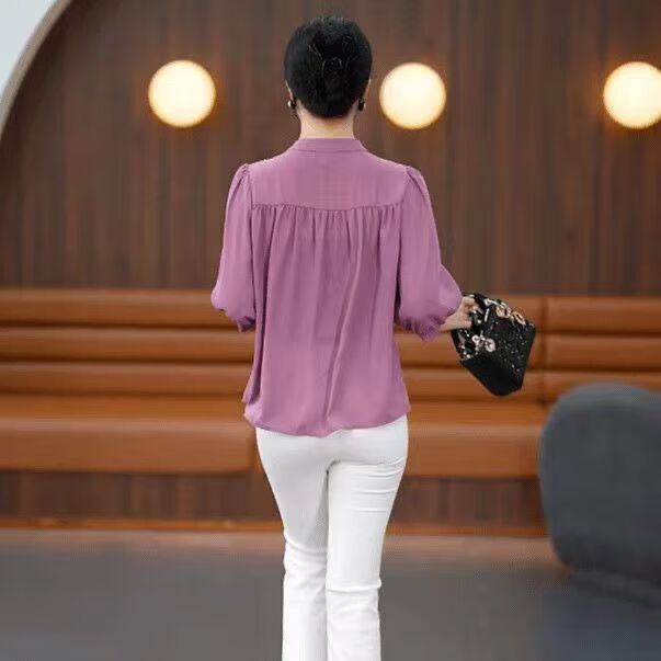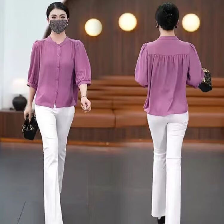夏季新款轻风纱显瘦妈妈装衬衣 桔红色 3XL 140-155斤