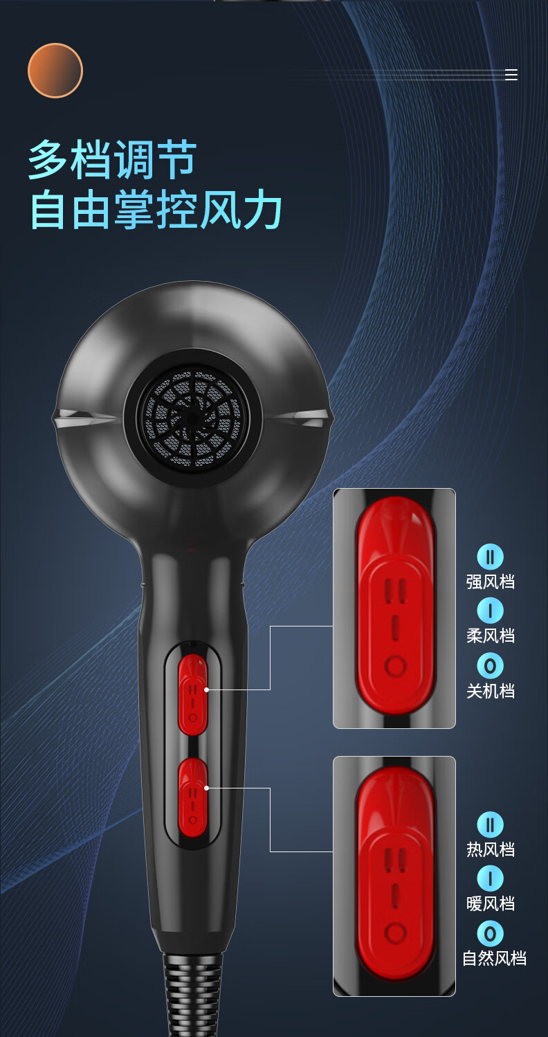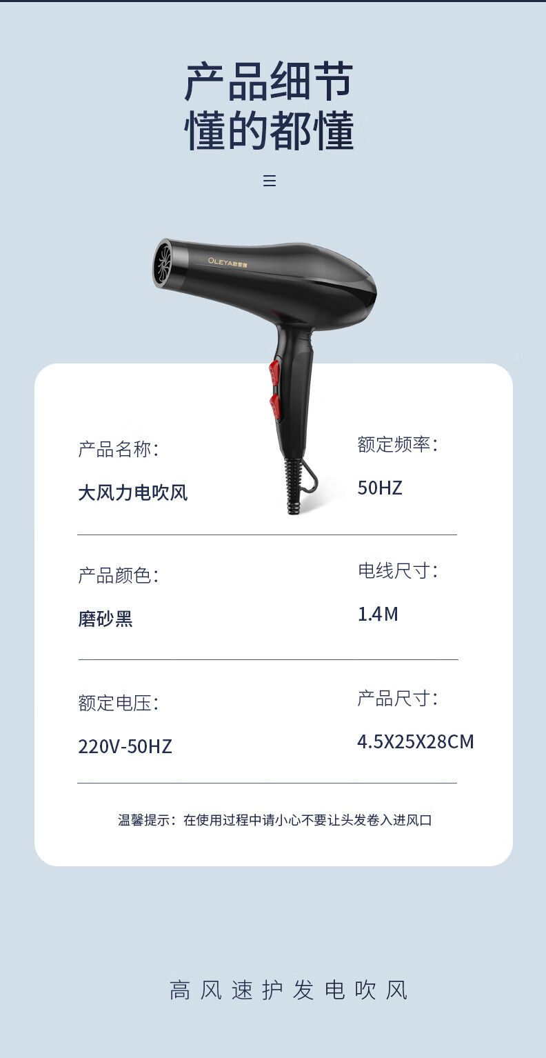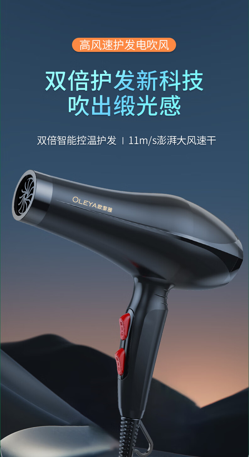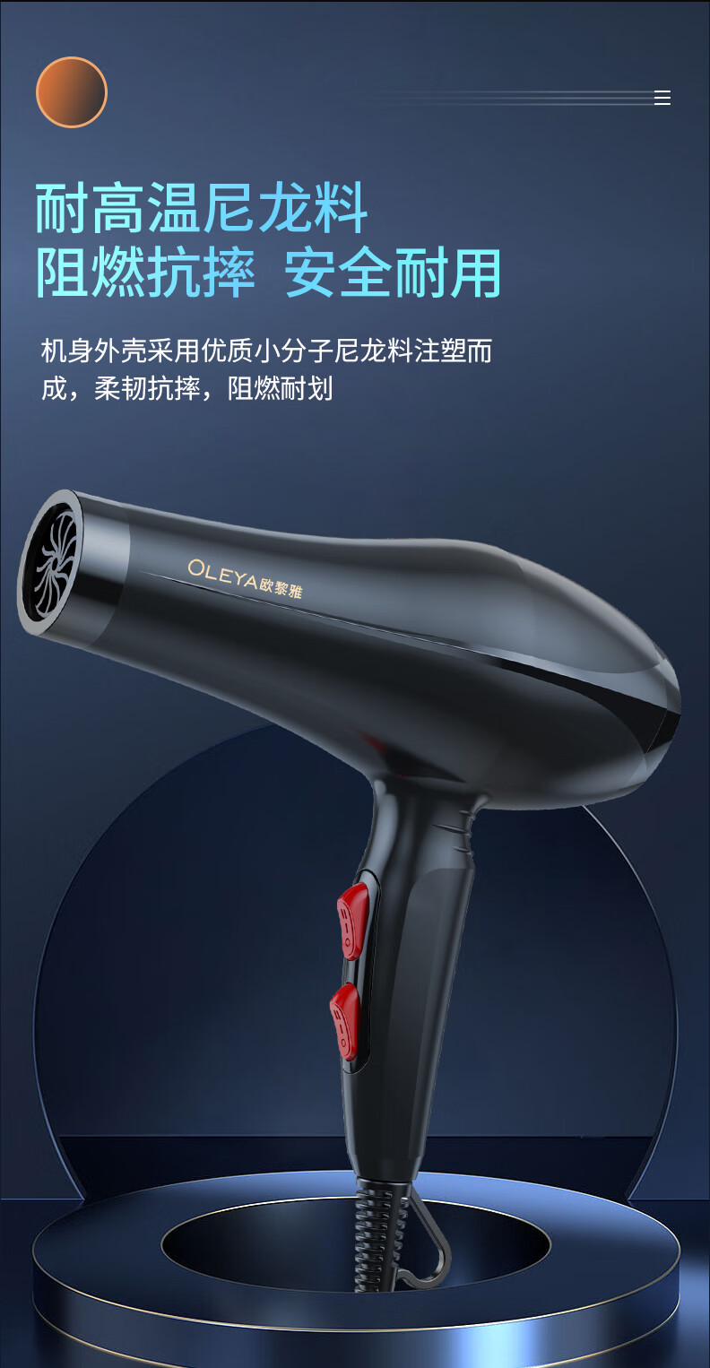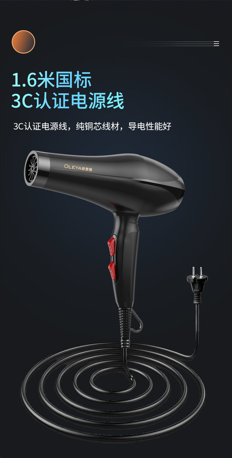欧黎雅吹风机负离子恒温护发学生宿舍理发店大风力强力电吹风筒高速干降噪护发电吹风 蓝光护发/家用大风力(赠一个风嘴)
