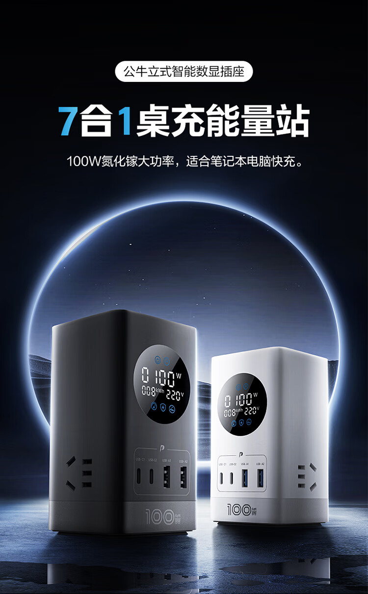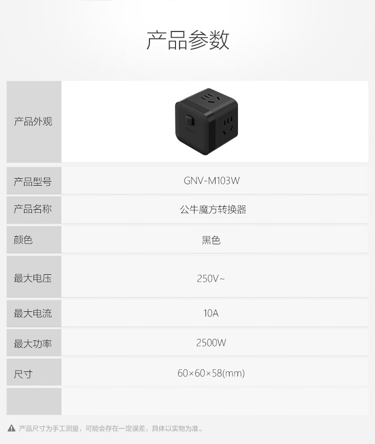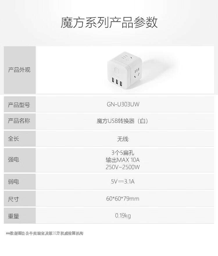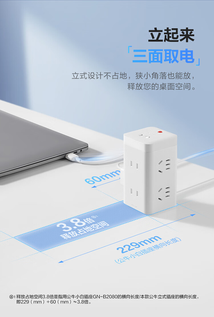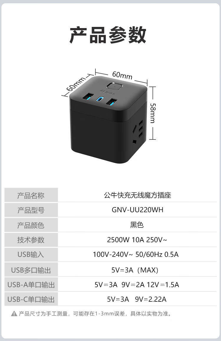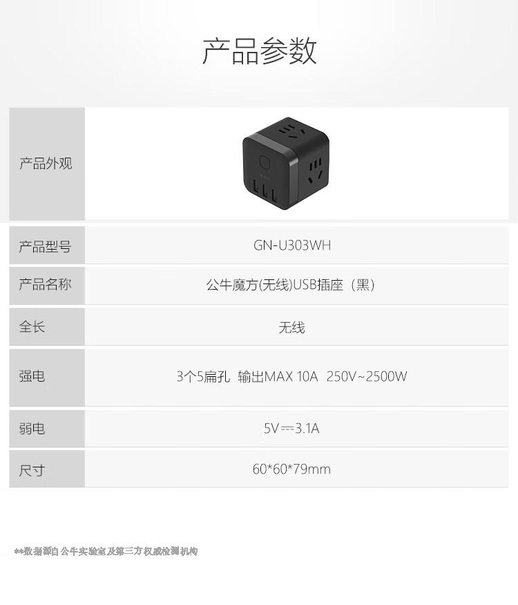 公牛(BULL) 魔方山峰插座立式数显转换器插排 插板USB智能快充接线板 智能一转多转接器 【三位五孔|无线】魔方 M103W