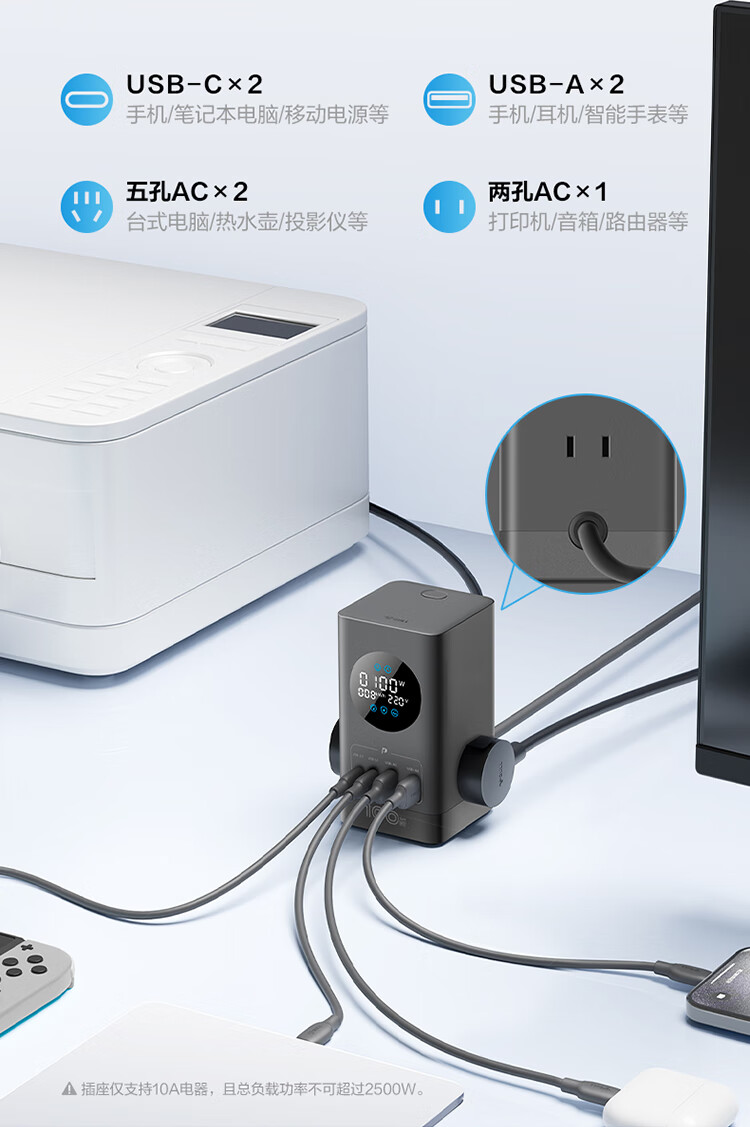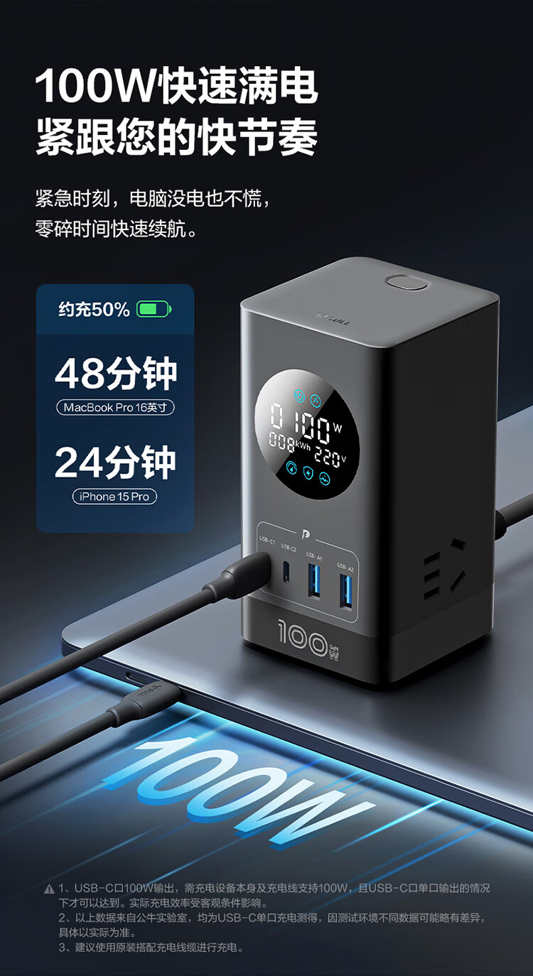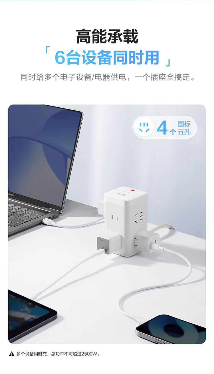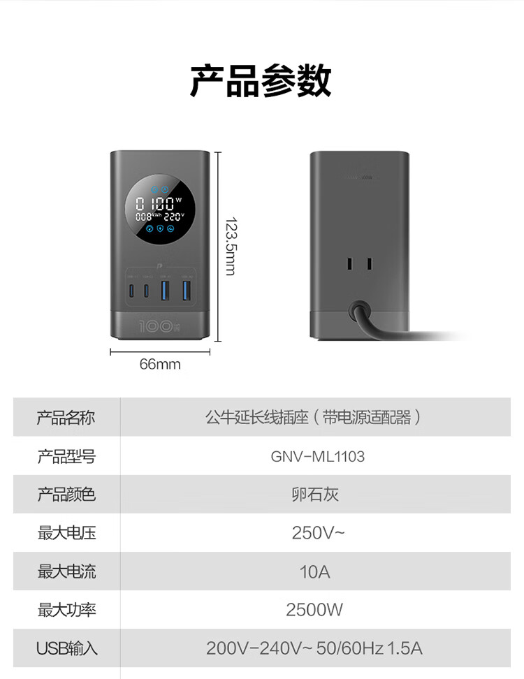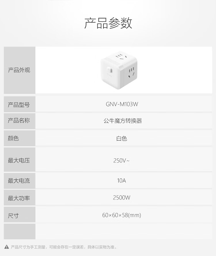 公牛(BULL) 魔方山峰插座立式数显转换器插排 插板USB智能快充接线板 智能一转多转接器 【三位五孔|无线】魔方 M103W