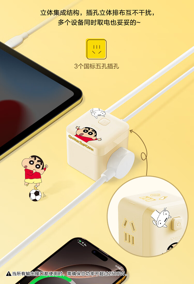德力西(DELIXI)排插/插座/家用墙壁电源插座 宿舍神器魔方插座 分控一转多桌面圆盘插座 【品字形】 一转三 分控