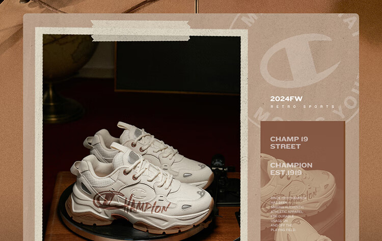 Champion美国冠军2025新款老爹鞋女男 复古厚底休闲老爹鞋25FWC66