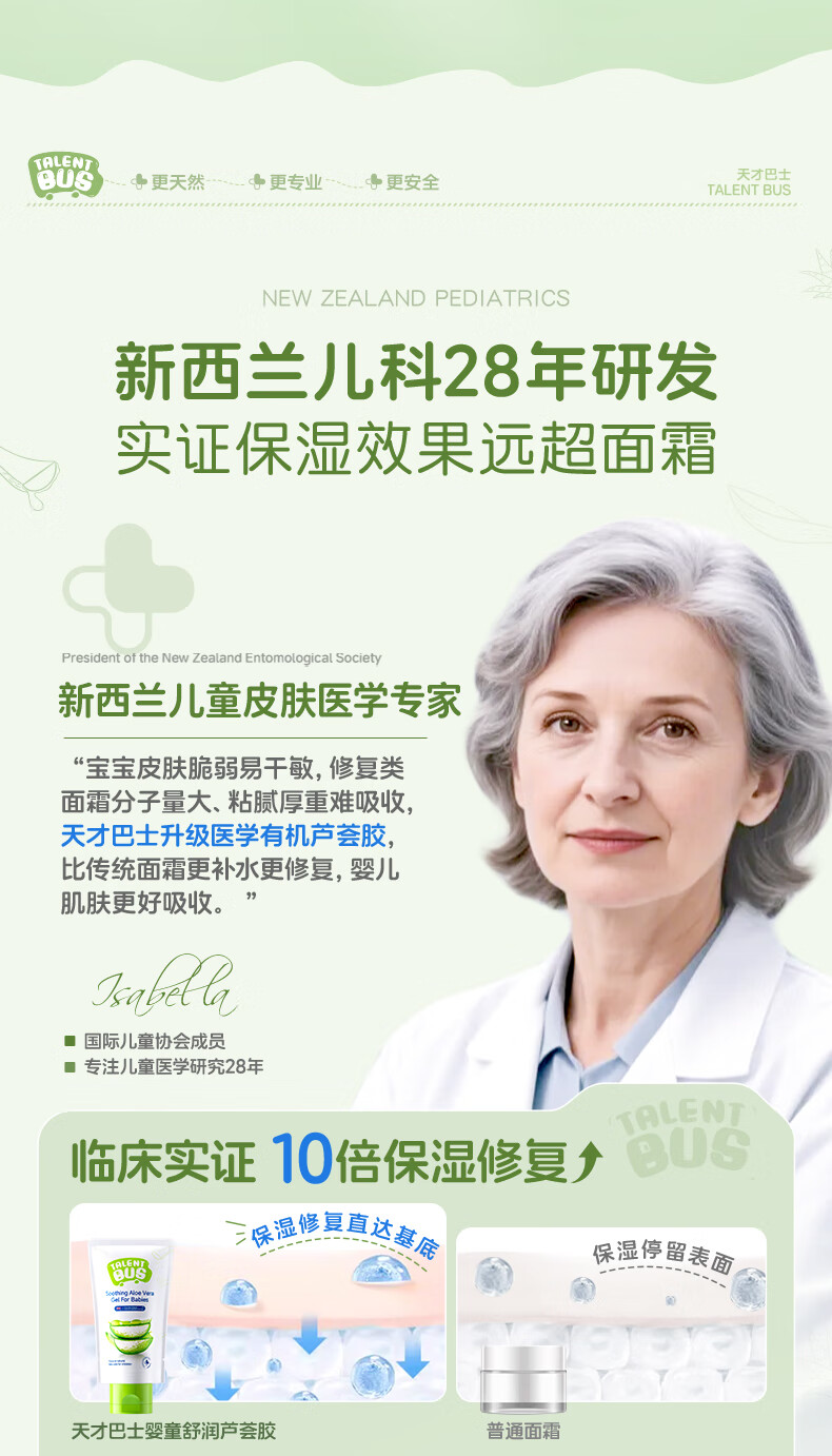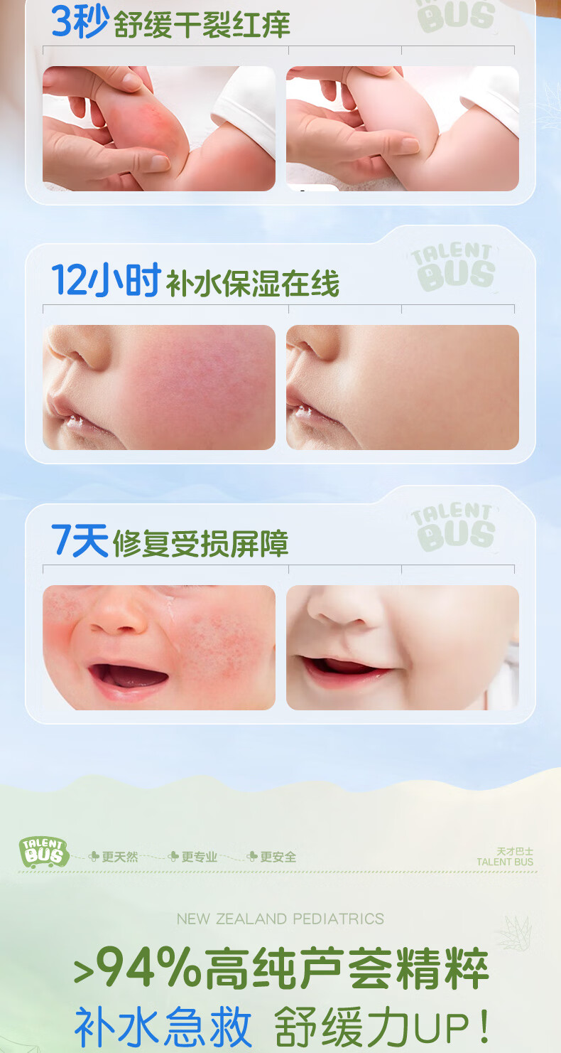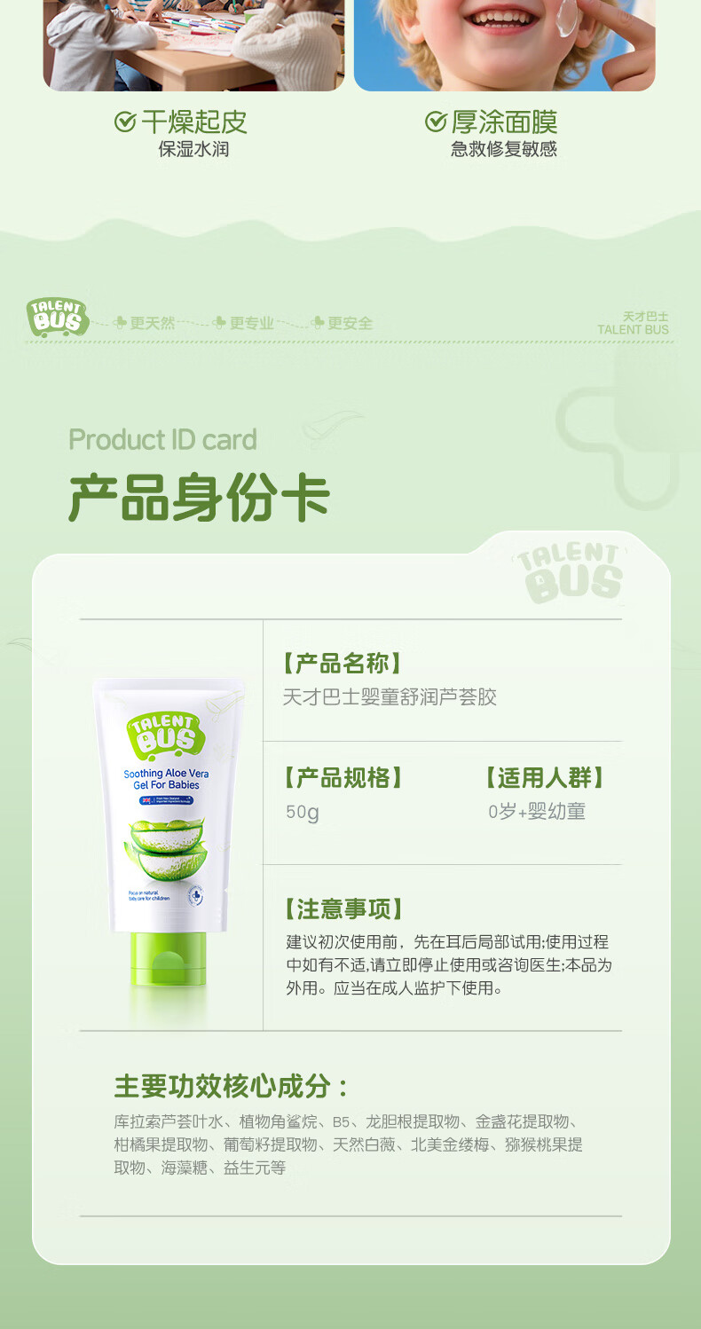 天才巴士 TALENT BUS芦荟胶修复皮肤屏障儿童宝宝面霜仿生胎脂干裂泛红保湿润肤1支