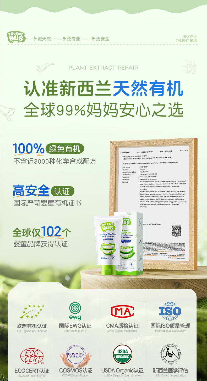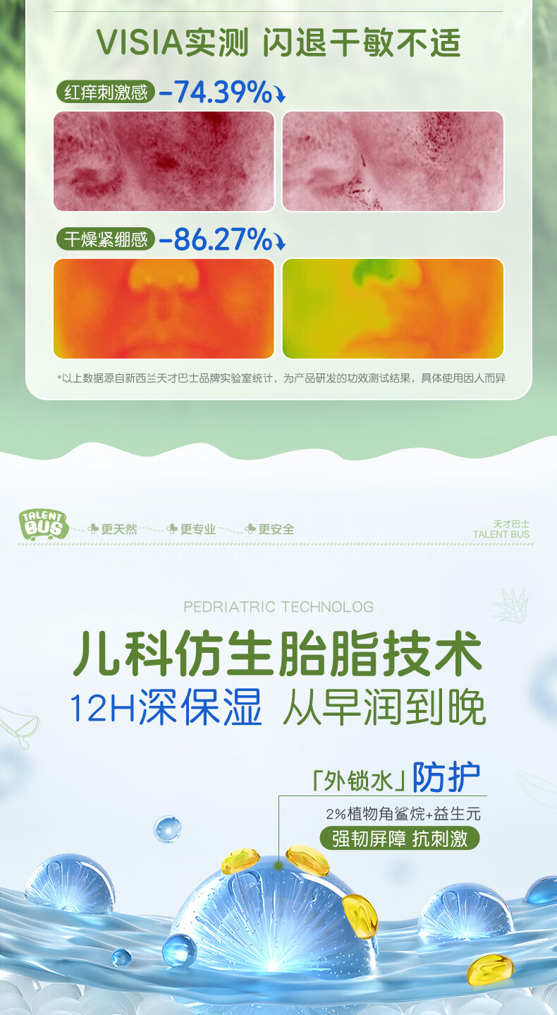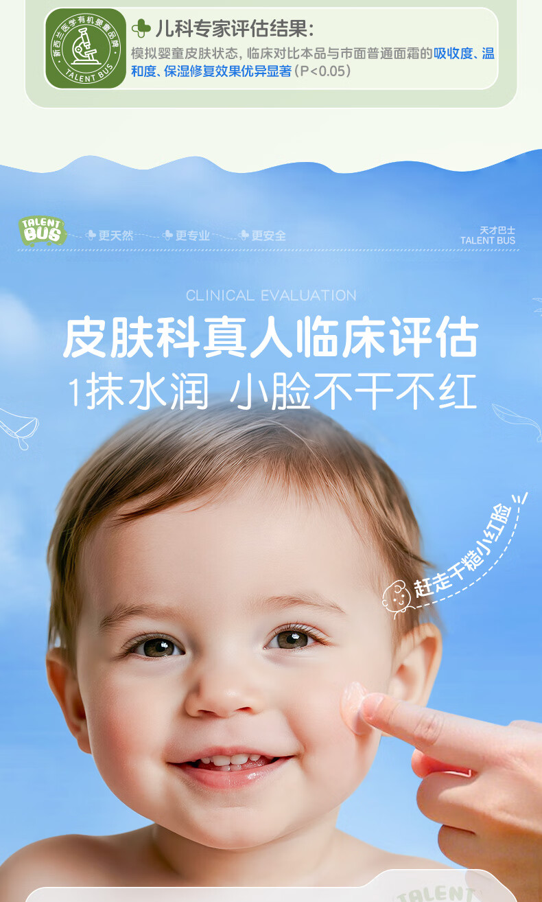 天才巴士 TALENT BUS芦荟胶修复皮肤屏障儿童宝宝面霜仿生胎脂干裂泛红保湿润肤1支