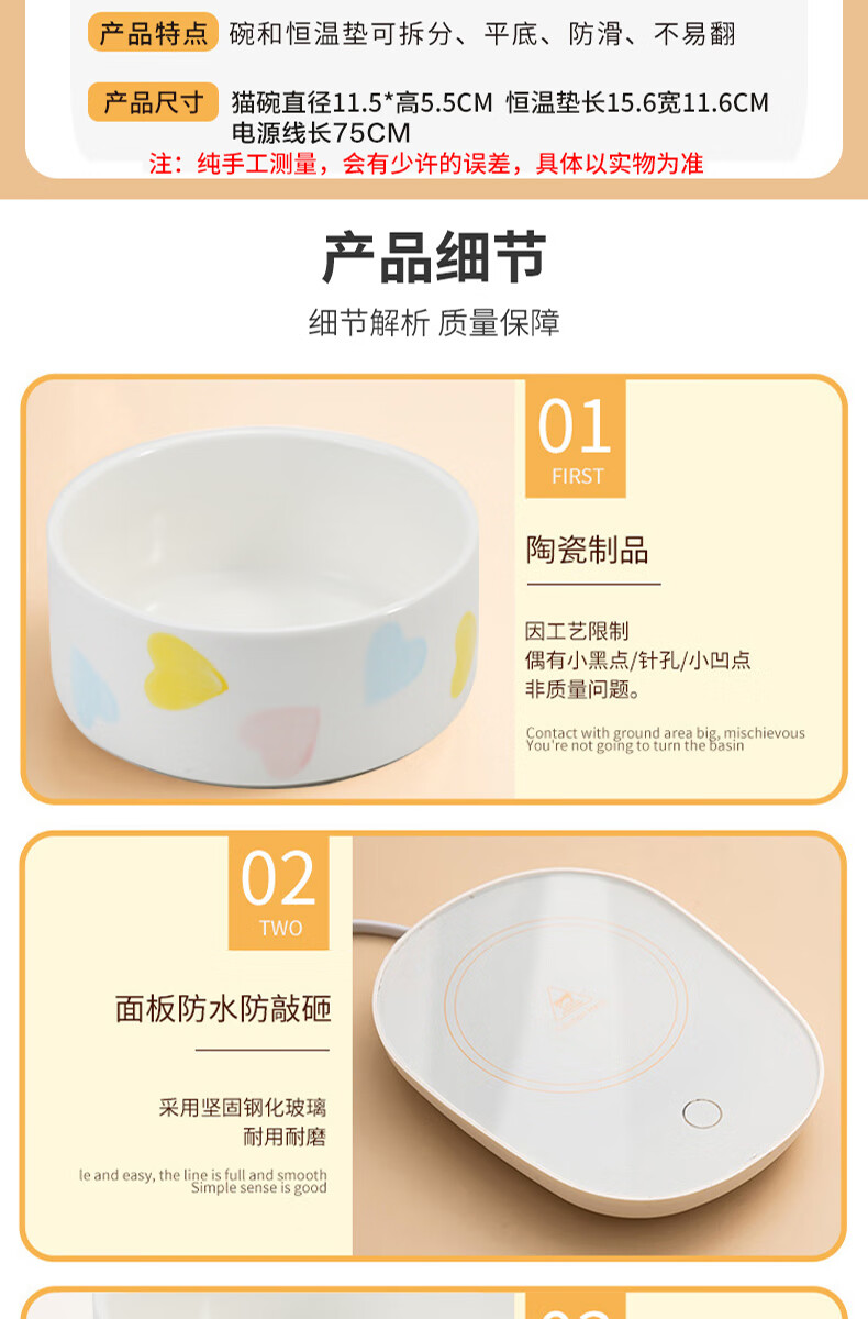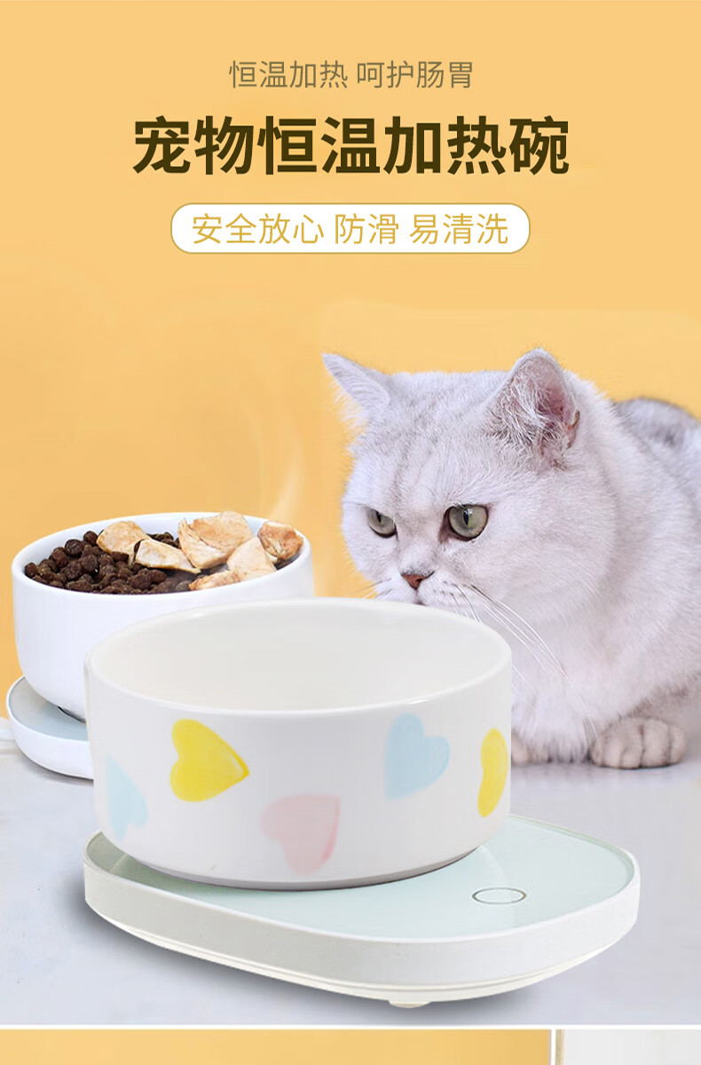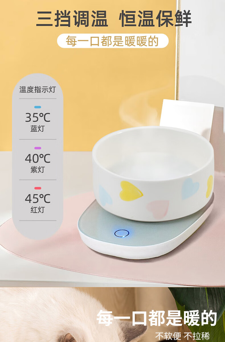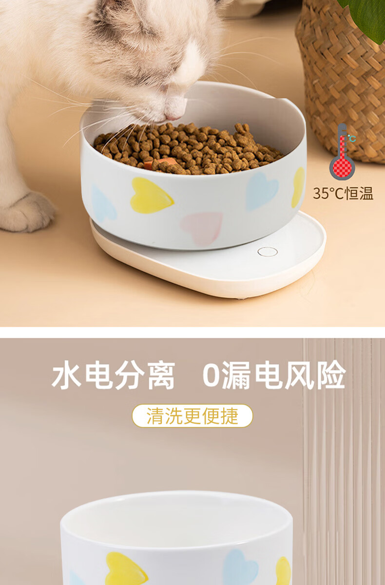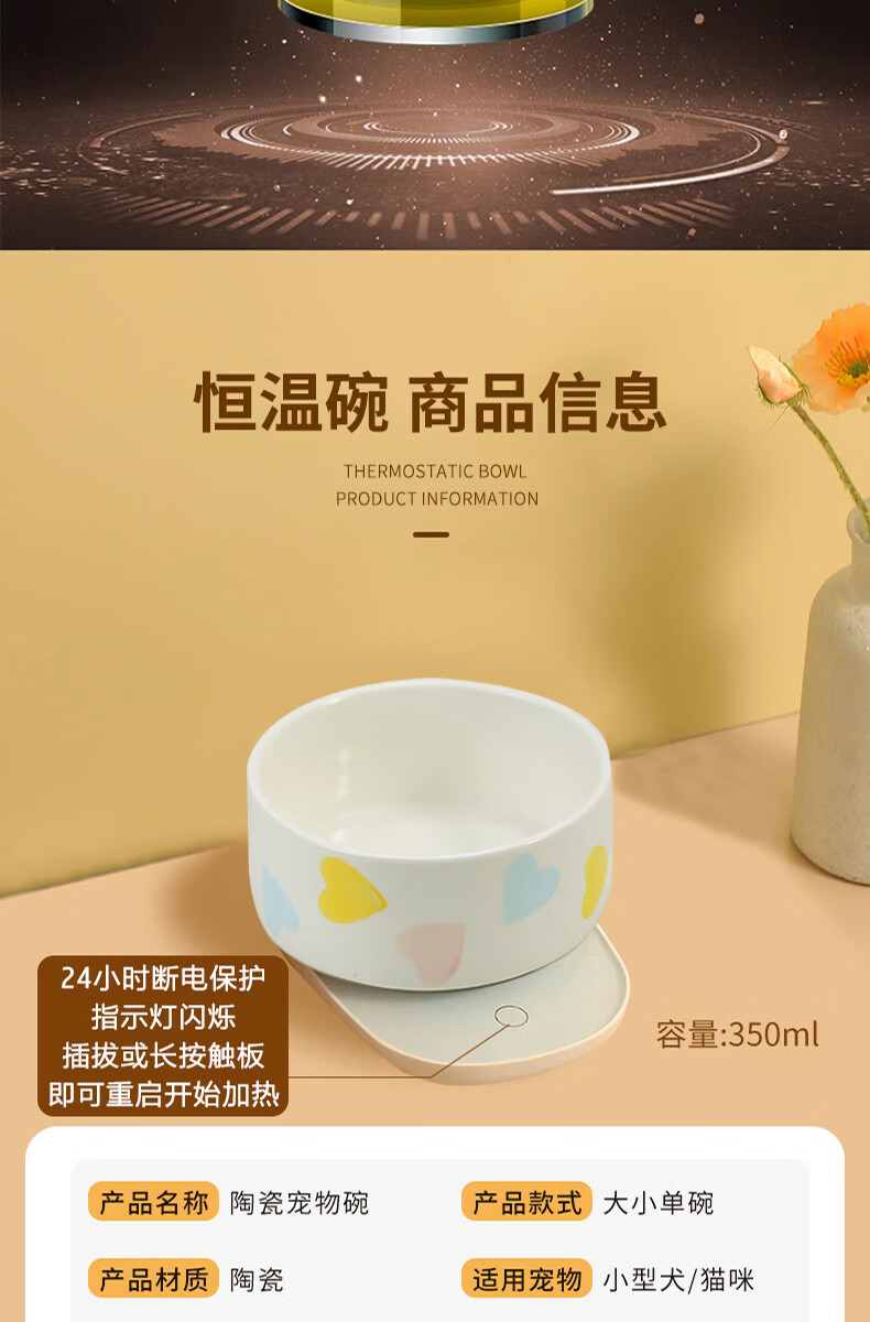 萌嘟星宠猫咪加热宠物陶瓷碗恒温饮水碗狗狗食盆冬季保温猫狗用品 350ml