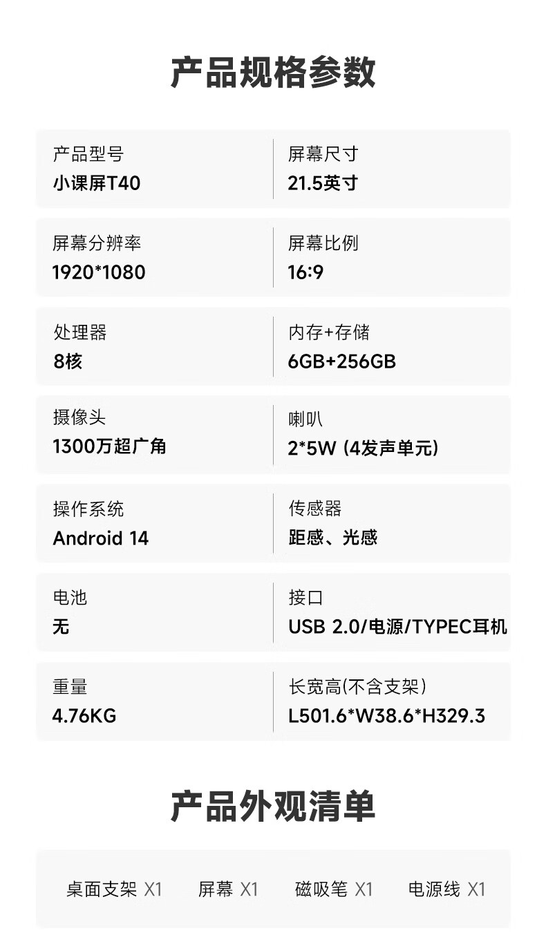 小课屏京东方小课屏AI学习机T40【接入Joyinside】21.5英寸超大护眼屏启蒙小学初中高中学习平板E3迭代款