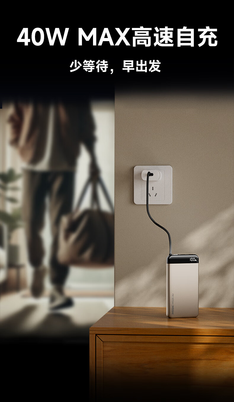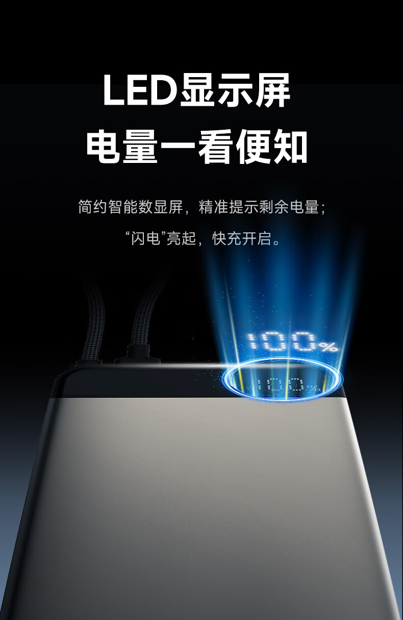 嘉柏兰【国家3C认证丨20000毫安】充电宝超级快充适用小米苹果移动电源大容量可上飞机自带线户外小巧 顶配版【可拆卸双快充线/AC插头/智能数显】 20000mAh【3C认证+可上飞机+超级快充】