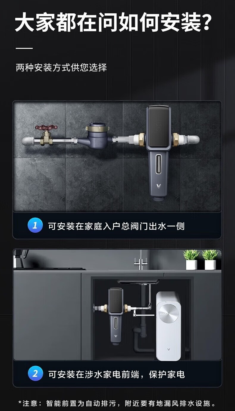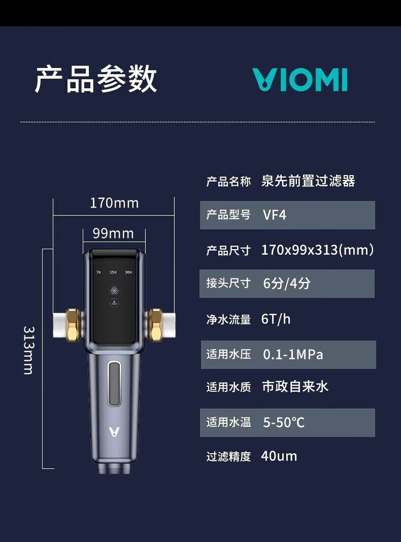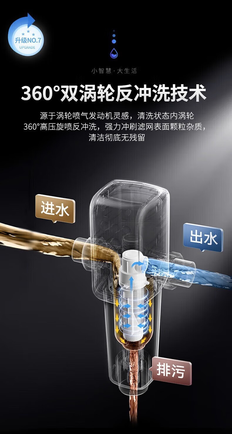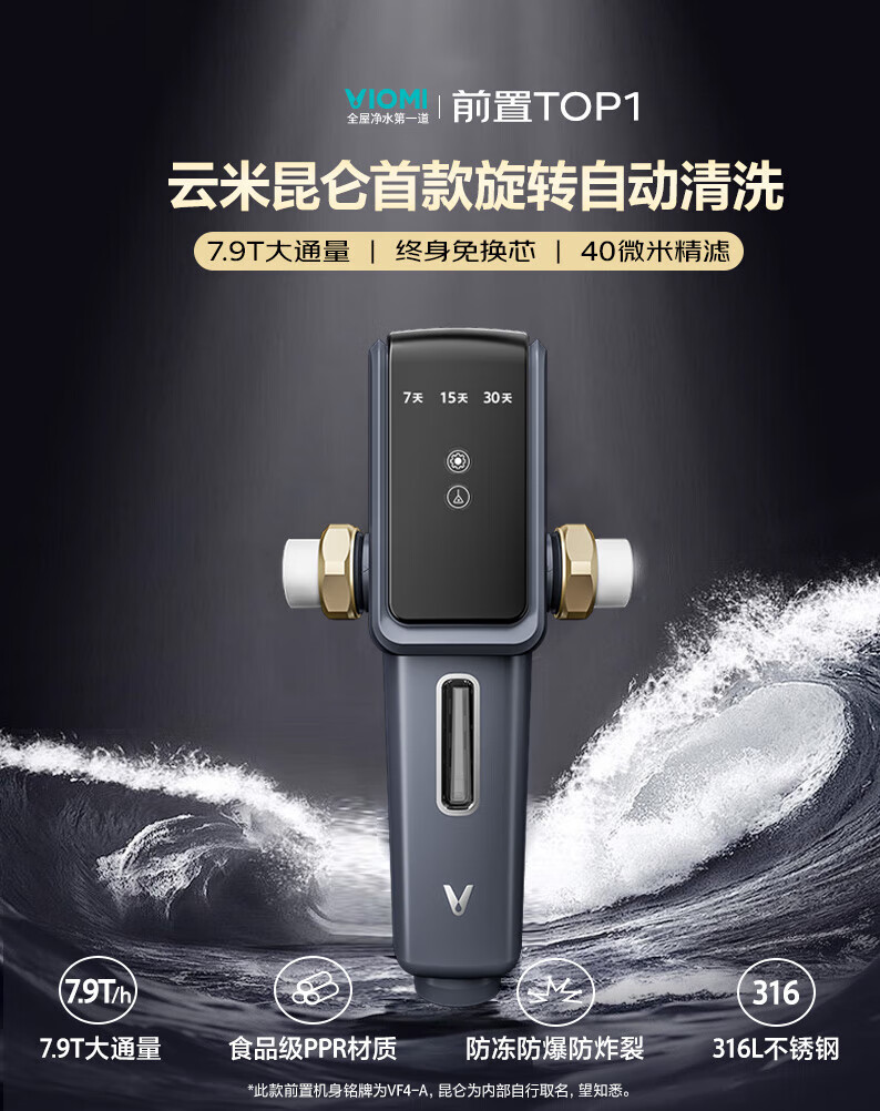 云米(VIOMI)前置过滤器全自动排污电机双驱清洁 高效排污 智能家用管道过滤器 7.9T/H顶配大通量 【全自动:电机双驱 】