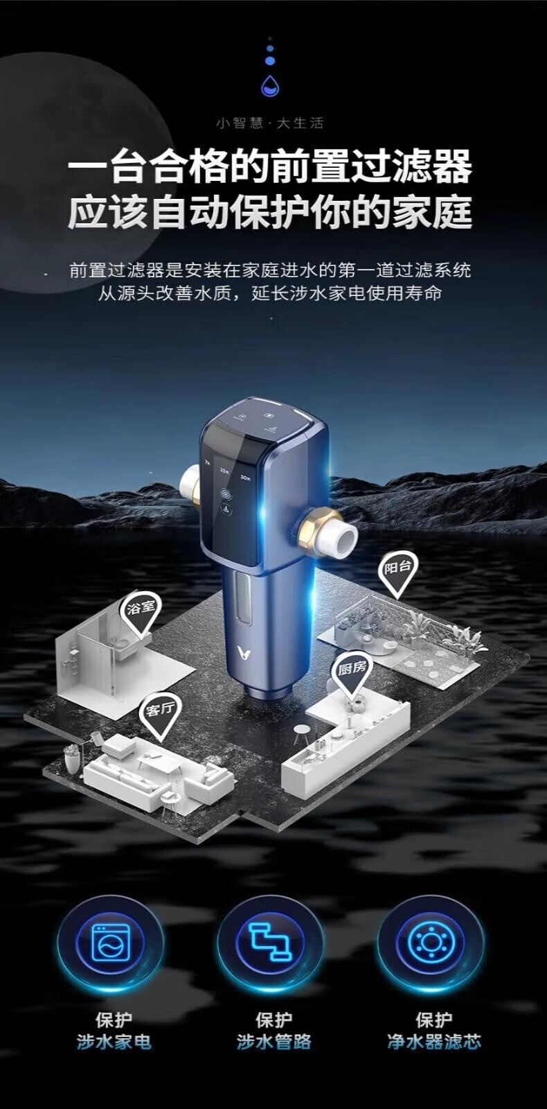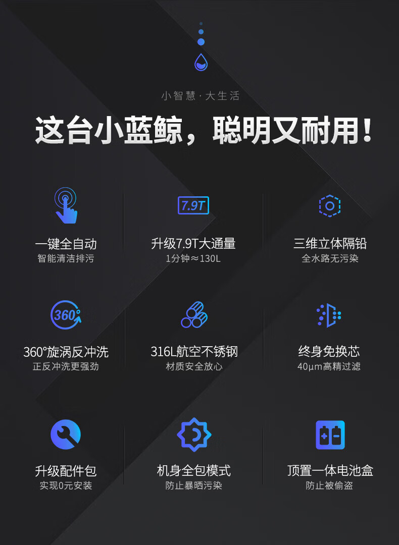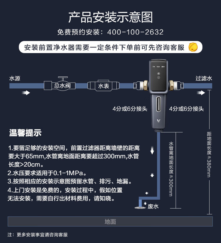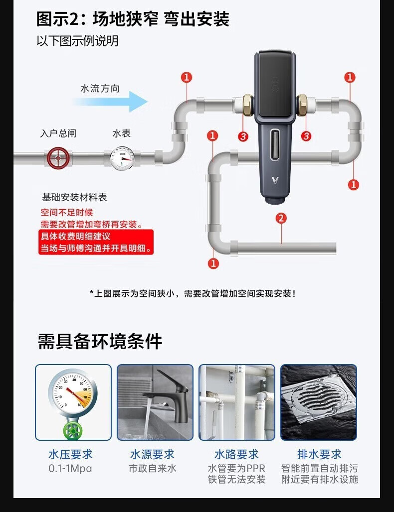 云米(VIOMI)前置过滤器全自动排污电机双驱清洁 高效排污 智能家用管道过滤器 7.9T/H顶配大通量 【全自动:电机双驱 】