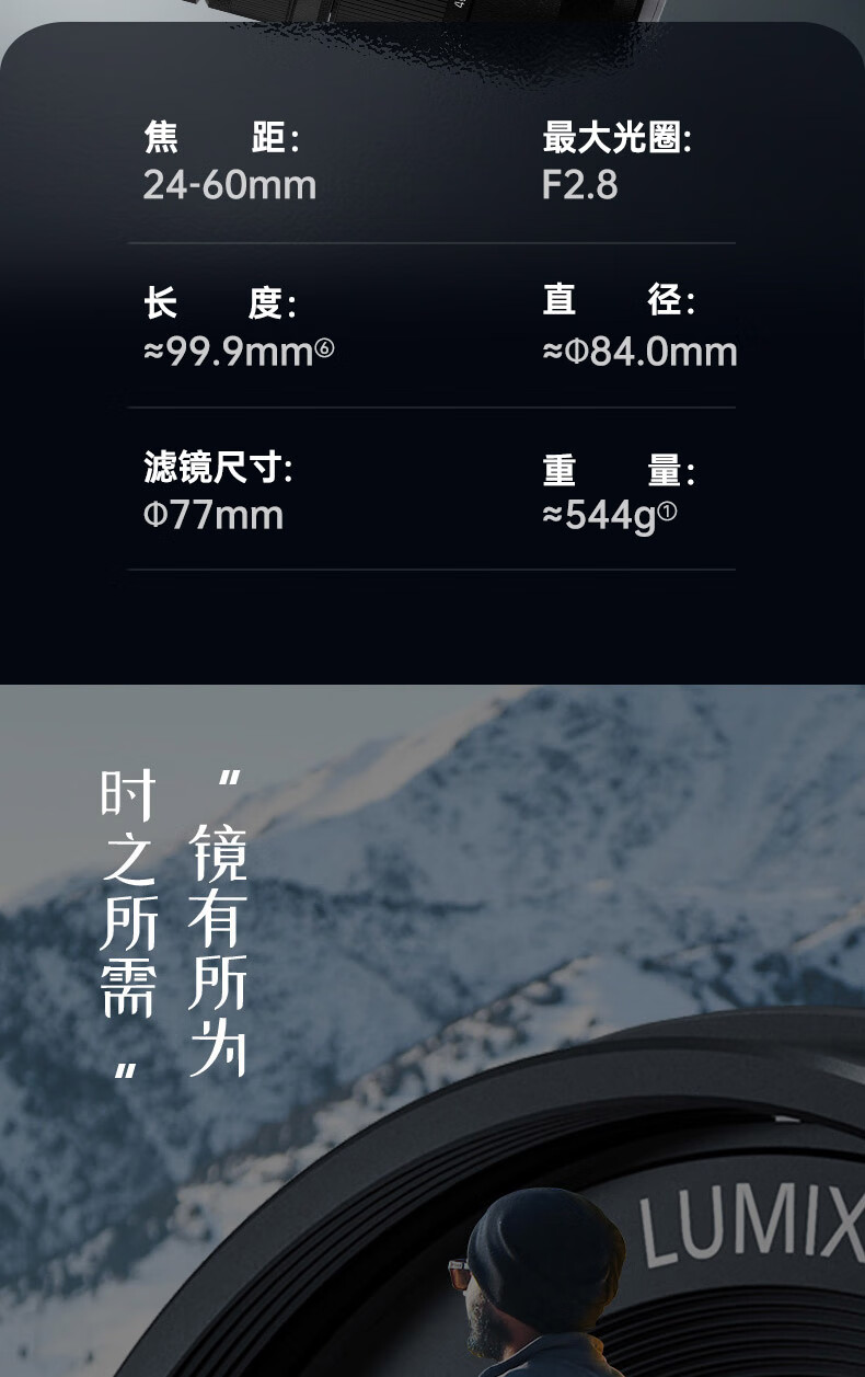 松下(Panasonic)官方旗舰 24-60mm 全画幅微单/单电/无反数码照相机变焦镜头 S-E2460GK L卡口 F2.8恒定光圈 24-60mm丨恒定光圈丨风景丨人像丨