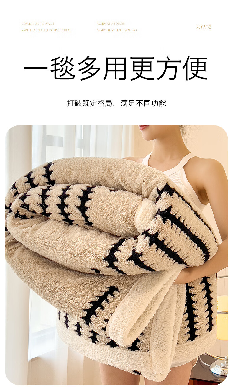 猫人(MiiOW)加厚珊瑚绒毯毛毯子 办公室羊羔绒午睡毯沙发盖毯午休牛奶绒毯 卡其 150*200cm【单人毯】