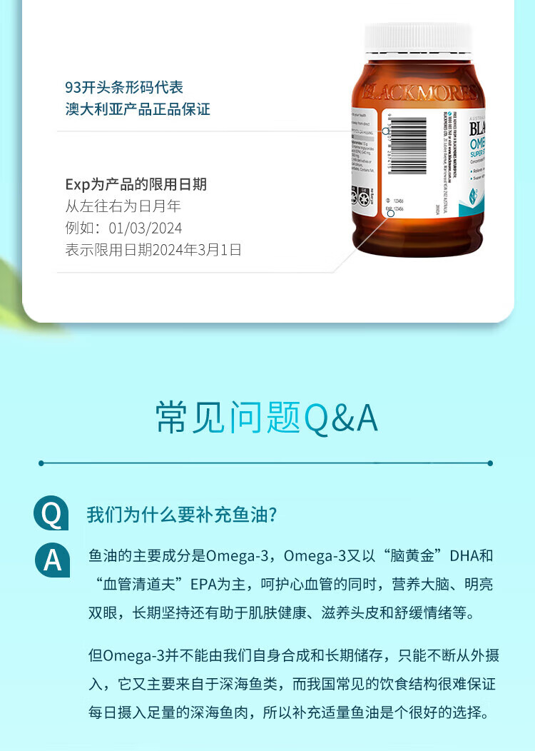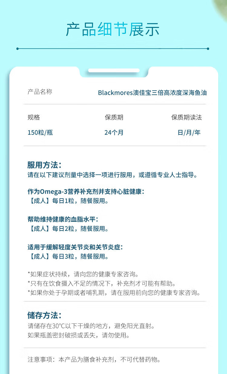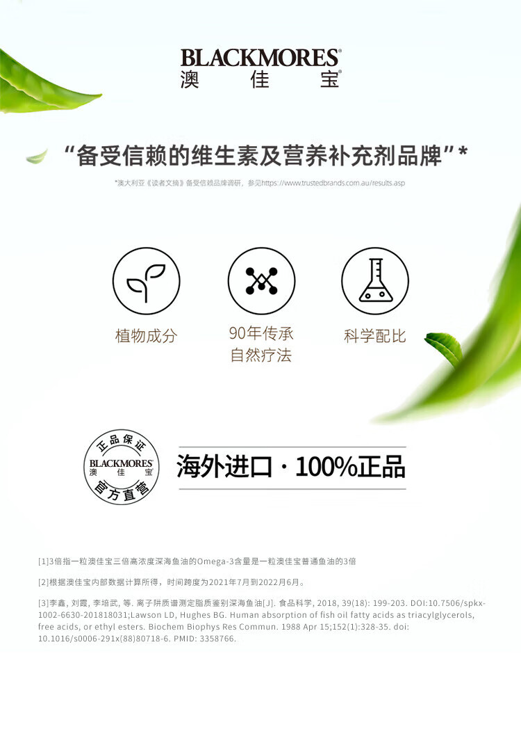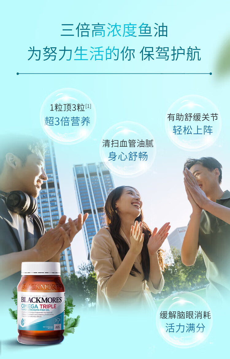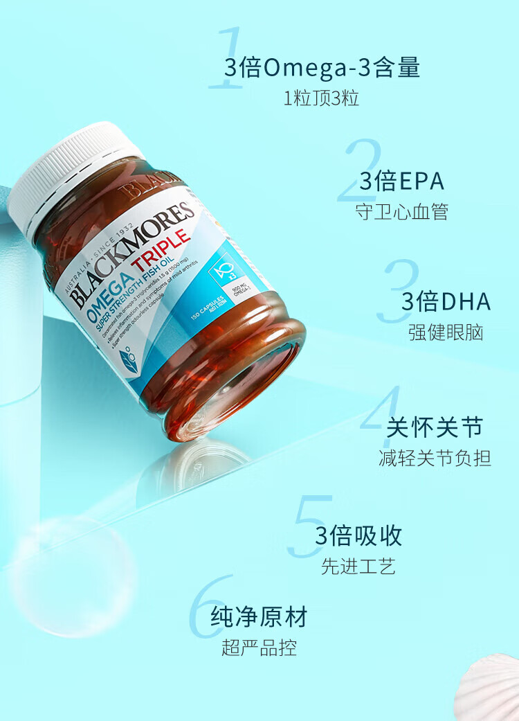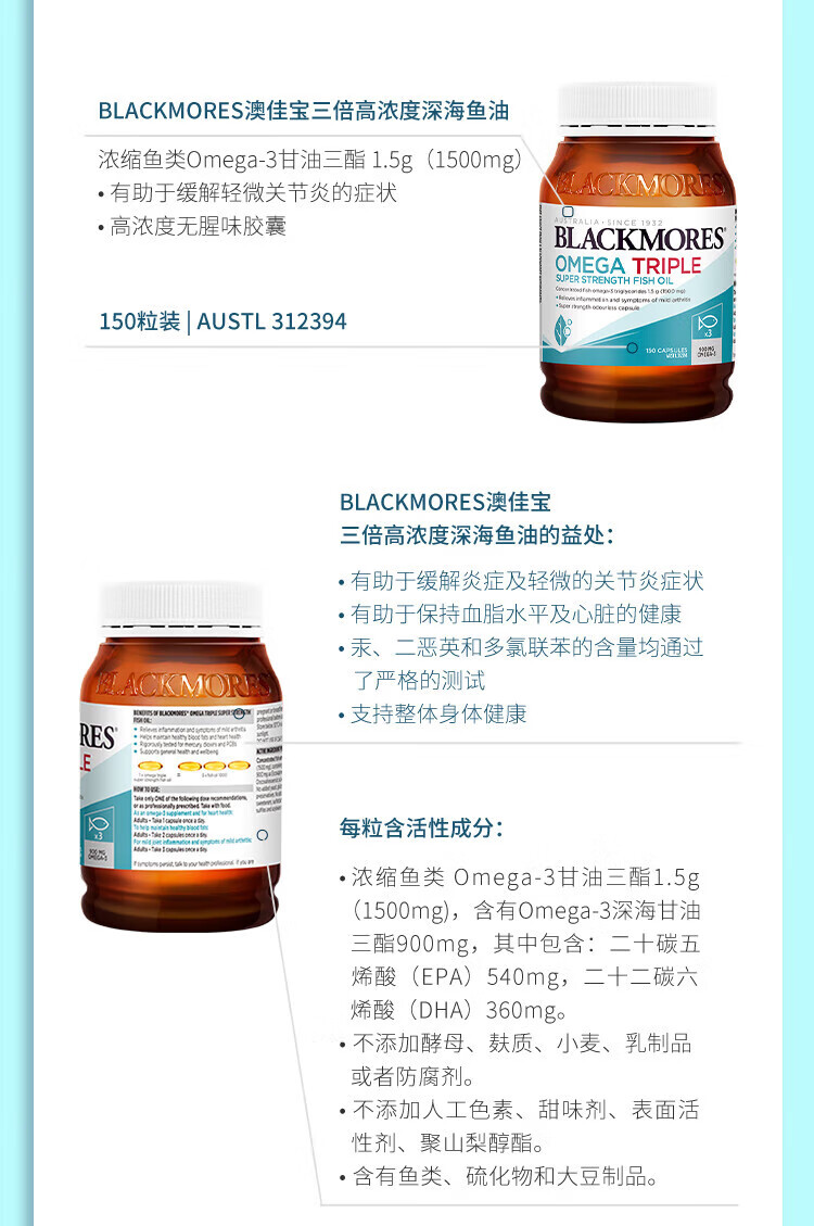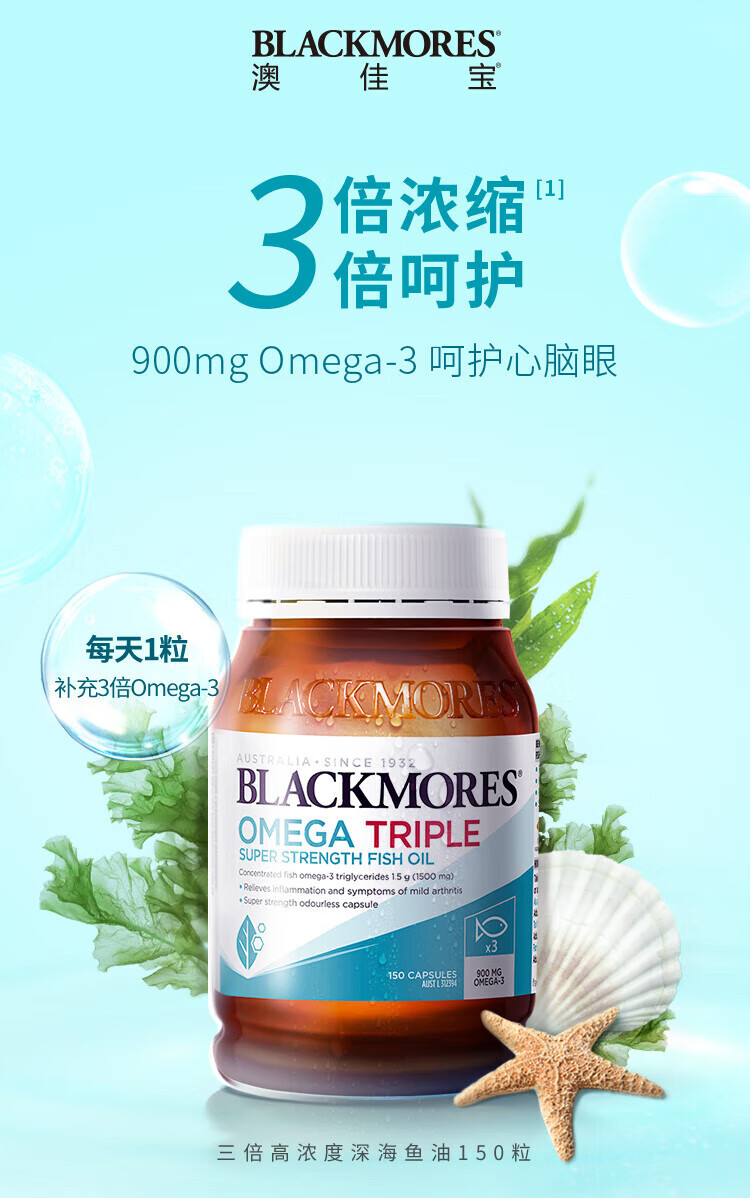 BLACKMORES三倍浓缩深海鱼油软胶囊护眼脑心脑血管 三倍浓缩鱼油150粒【2瓶装】