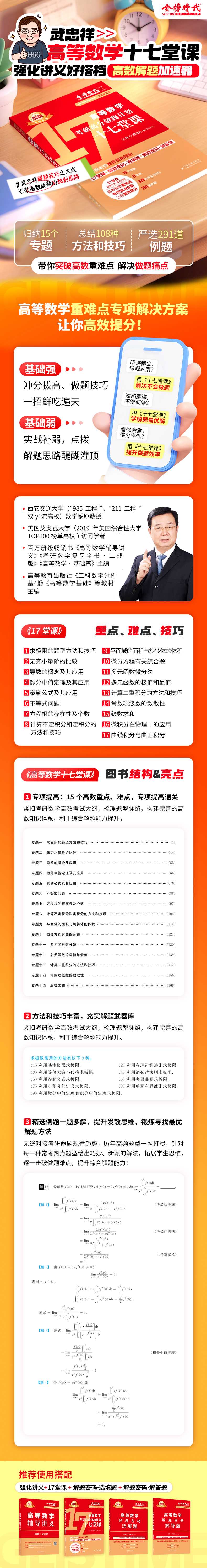【官方直营】2026考研数学武忠祥高等数学17堂课 考研高分计划十七堂课 解题密码选填题 2026武忠祥高等数学基础篇 考研数学一数学二数学三自选 2026武忠祥解题密码选填题