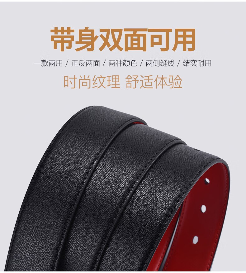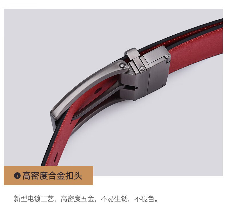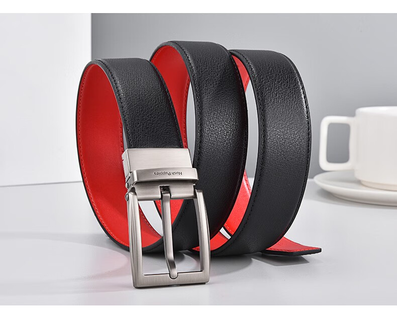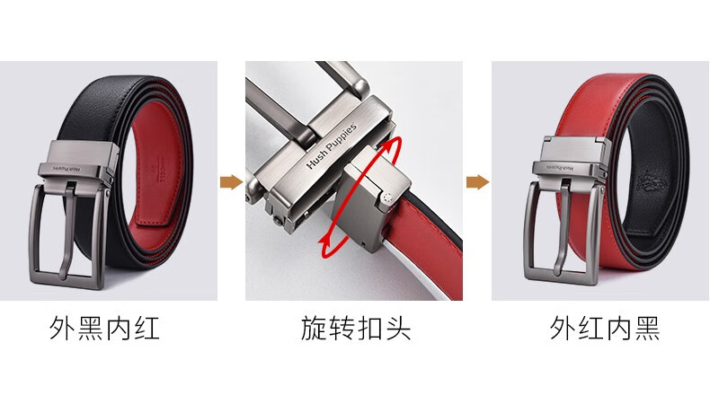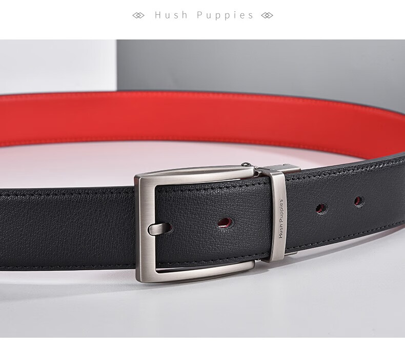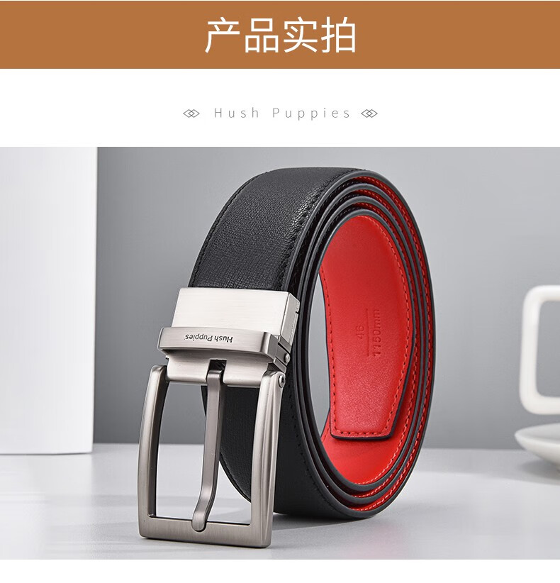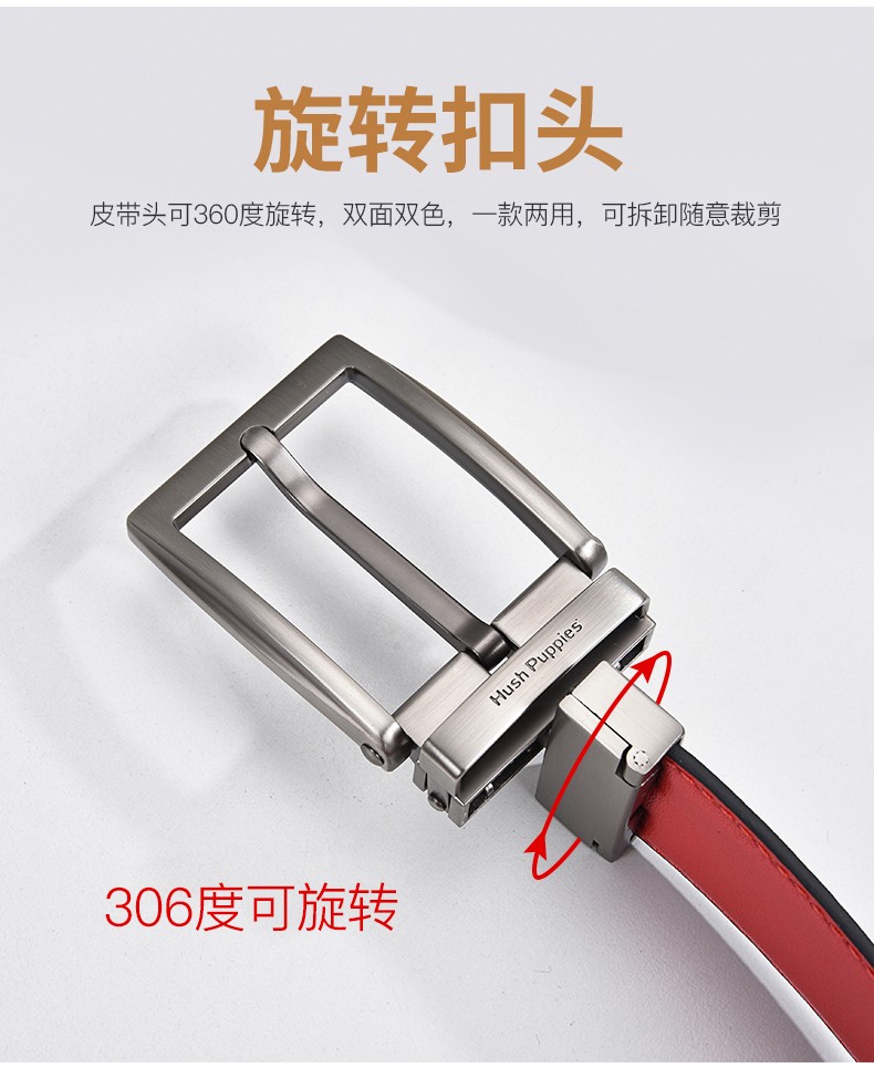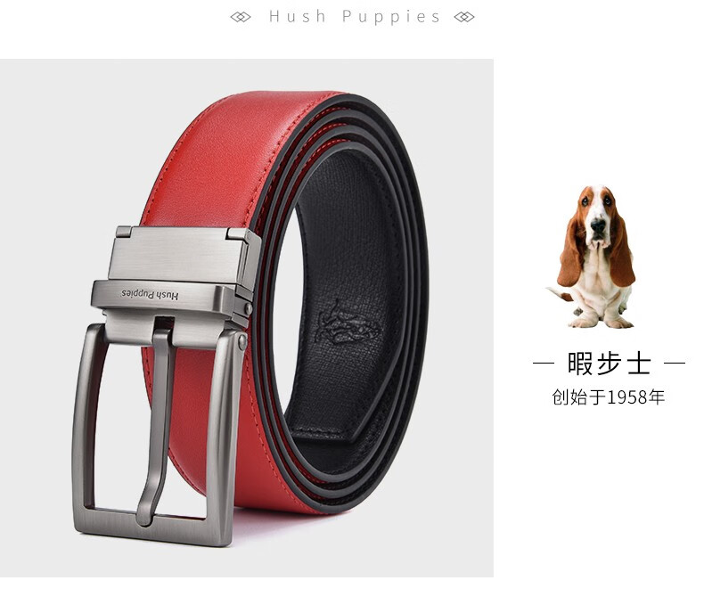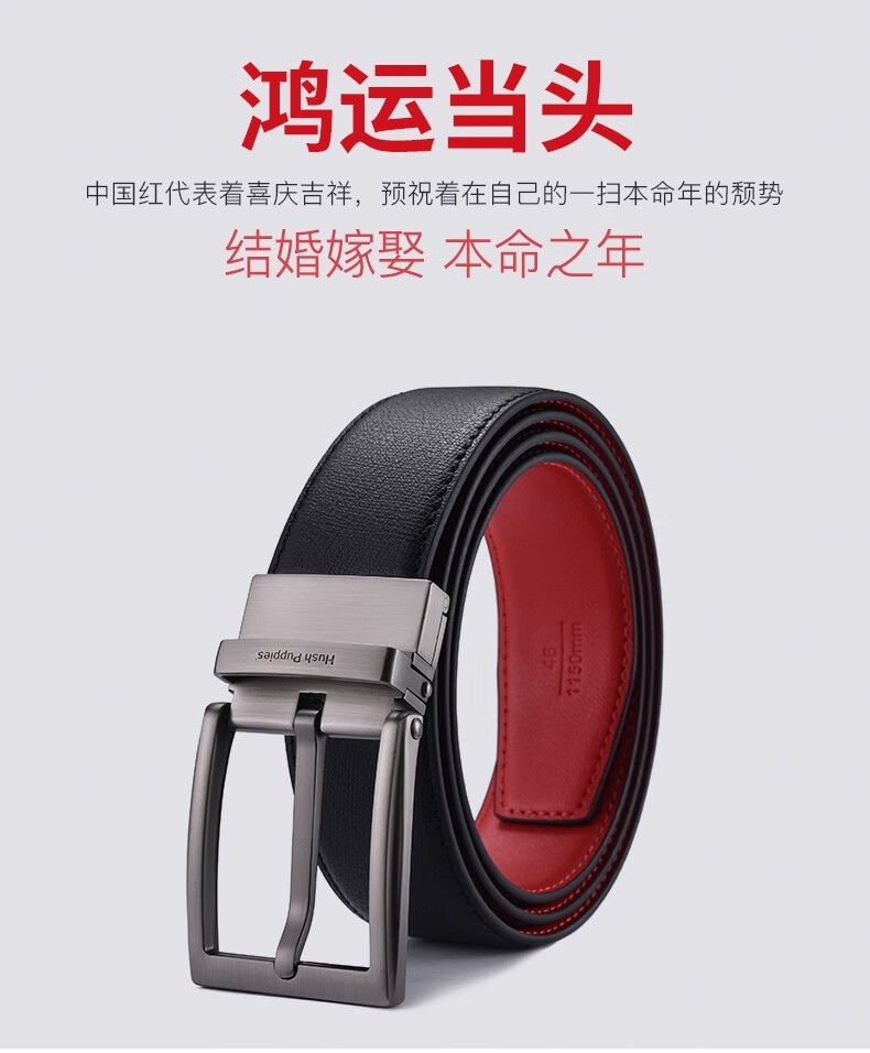 暇步士(Hush Puppies)红腰带本命年马年针扣式男士皮带可旋转扣头两用礼物裤带高端商务 旋转扣头一款两用 110cm