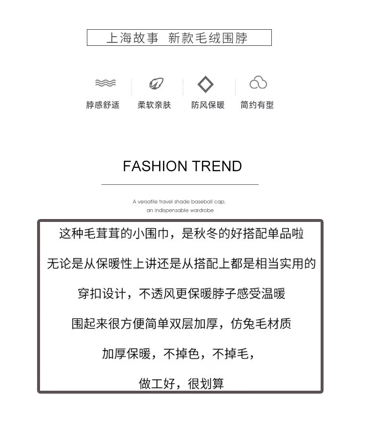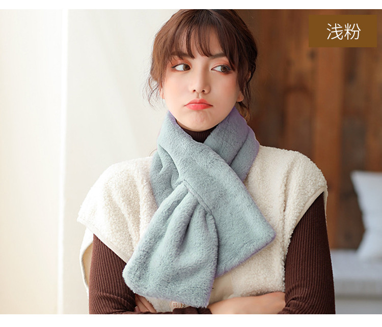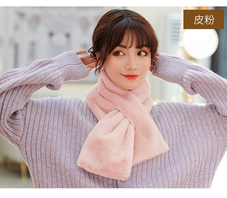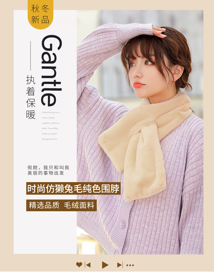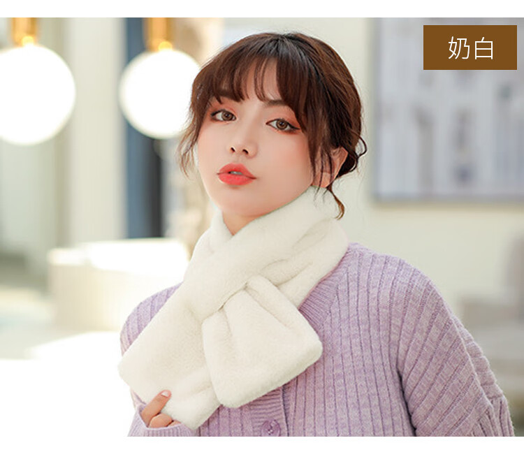 达芬奇密码 冬季流行时尚日系可爱仿獭兔毛纯色围脖 奶白